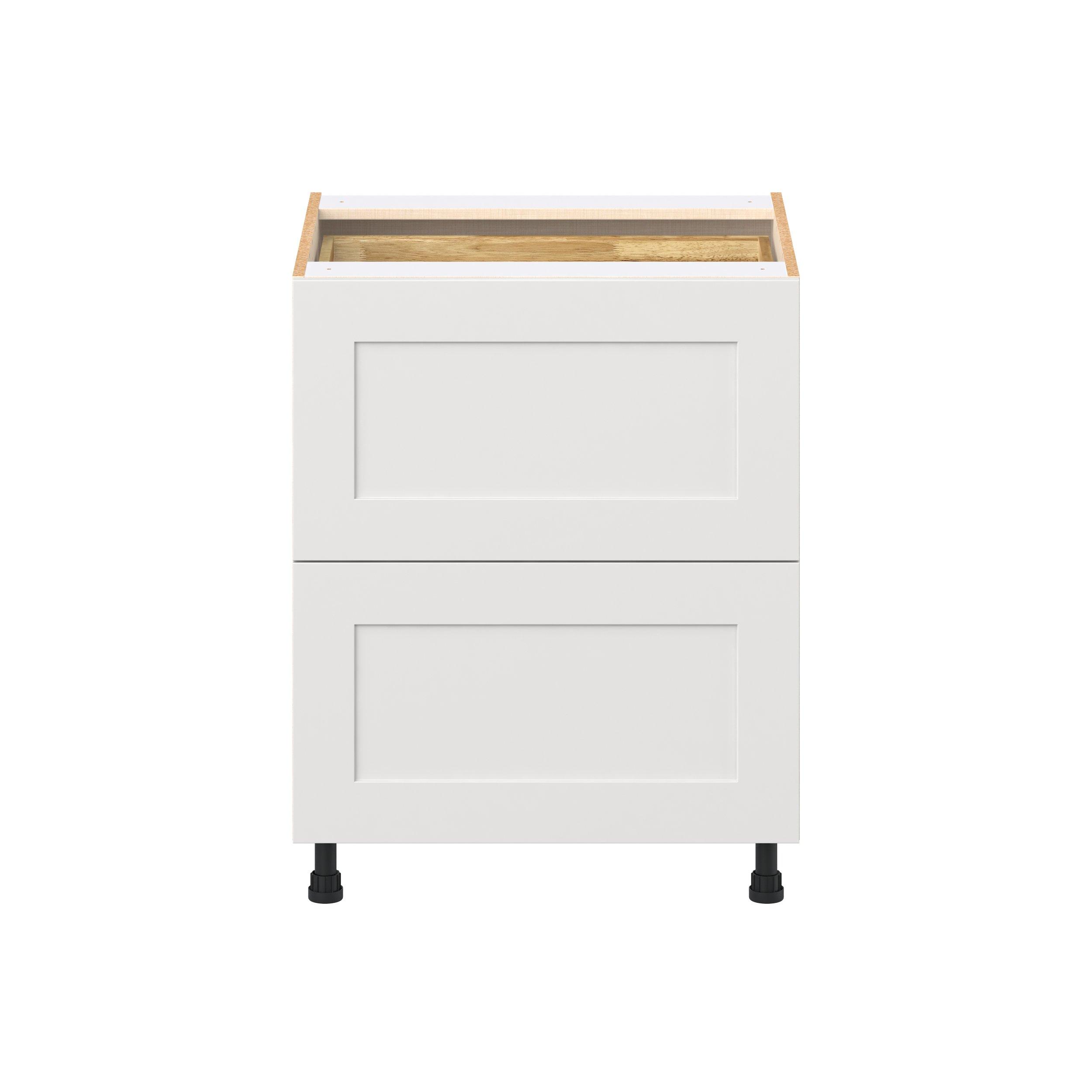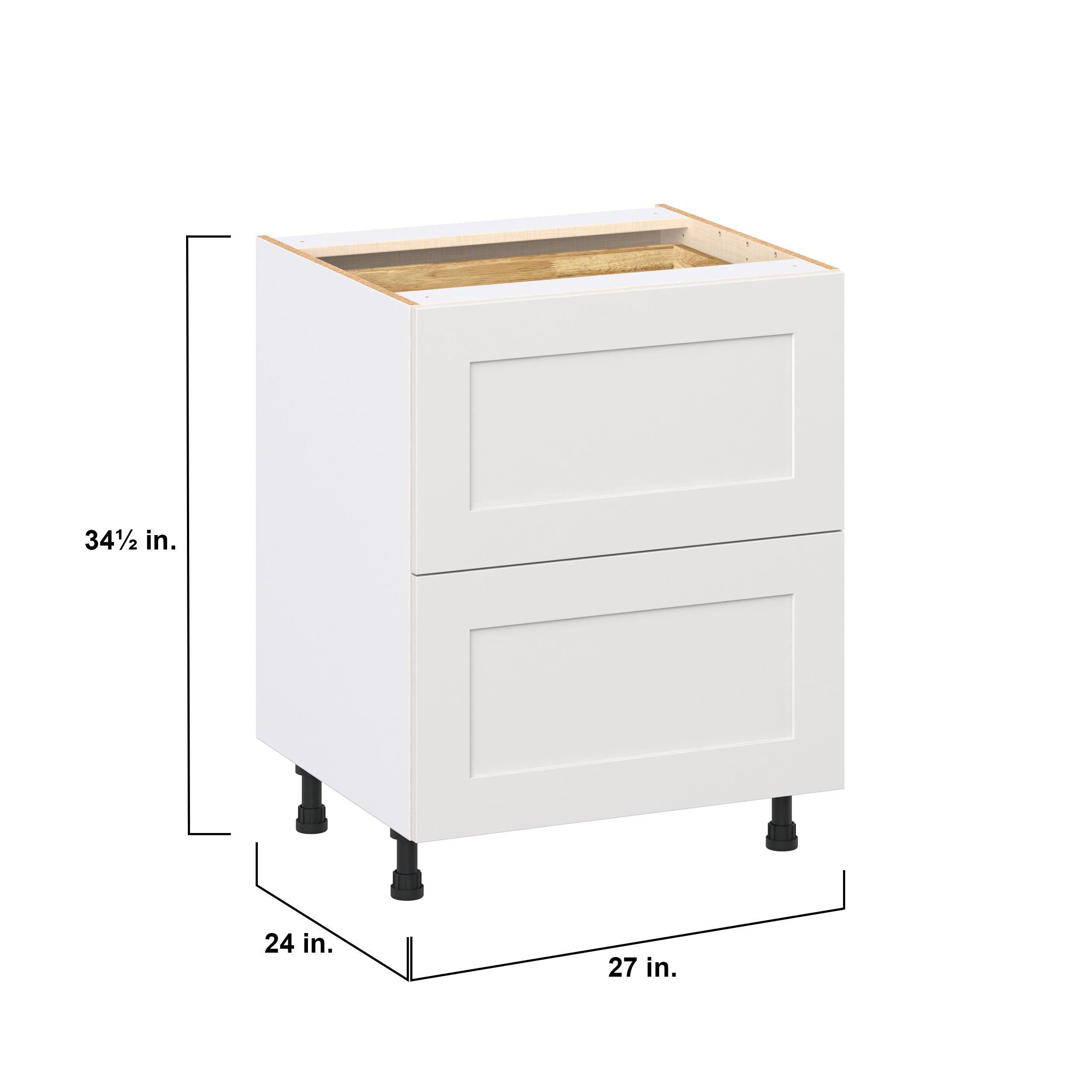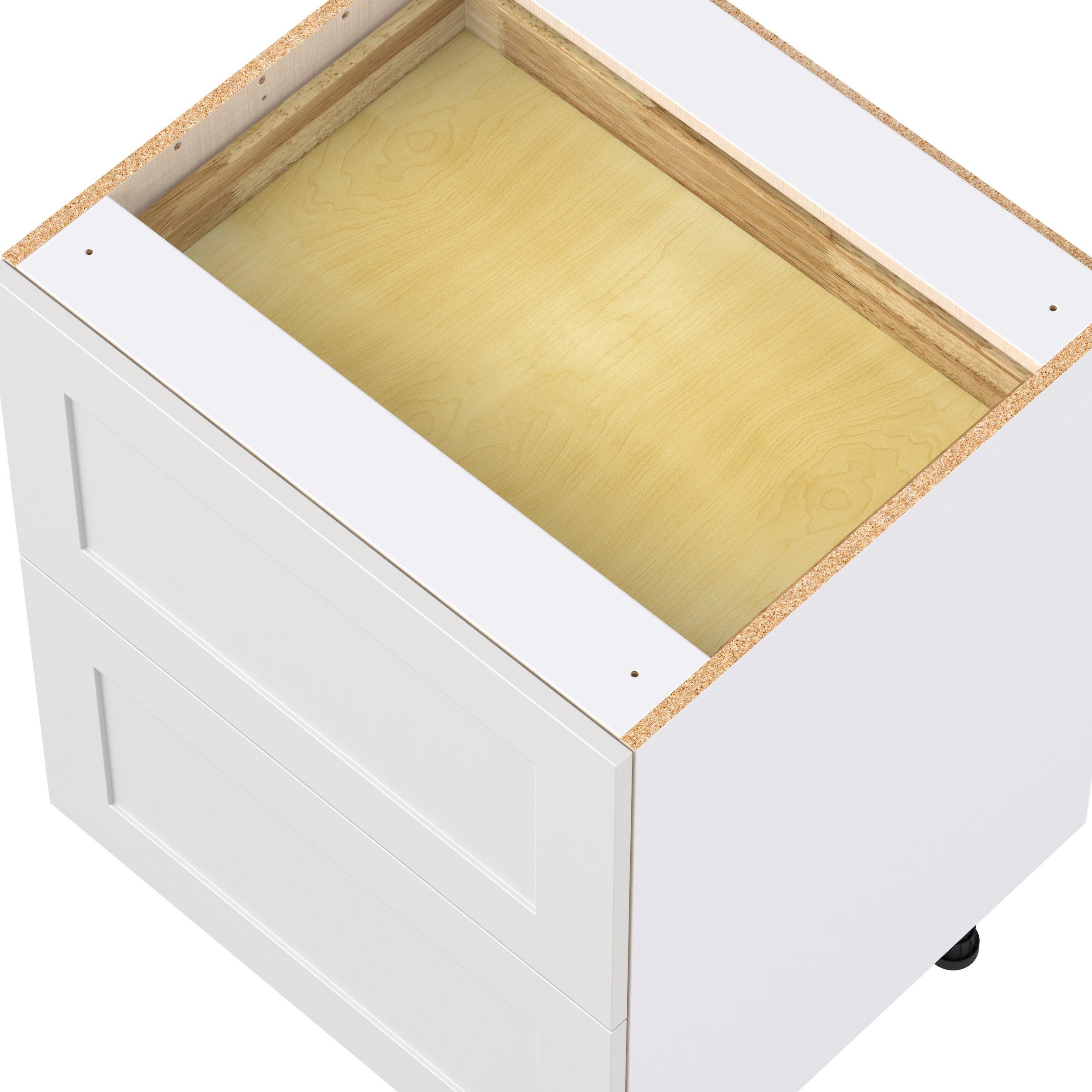 Transform your space with the elegance of Candler wide-rail shaker styles. Both the warm white and slate gray options create a rich transitional backdrop to complement any decor. Crafted from one-piece MDF Studio Design Collection Candler 27 in. Painted Warm White Base Cabinet with Inner Pull-Out Drawer is designed to resist hairline cracks while the easy-to-clean finish stands up to stains and moisture. Featuring 5-piece doors and dovetail drawer joints, these cabinets offer durability and elegance. This collection combines style with everyday storage solutions.
