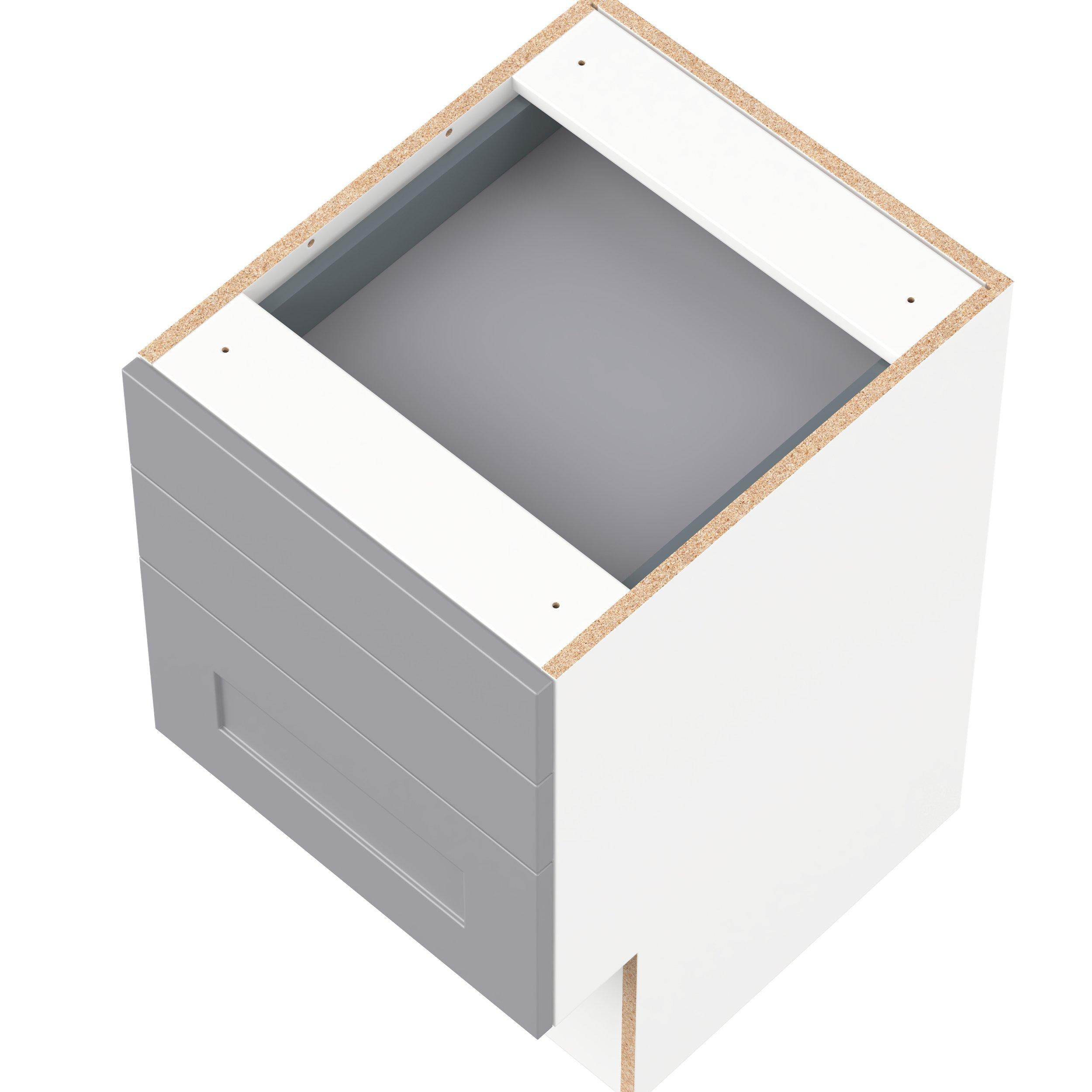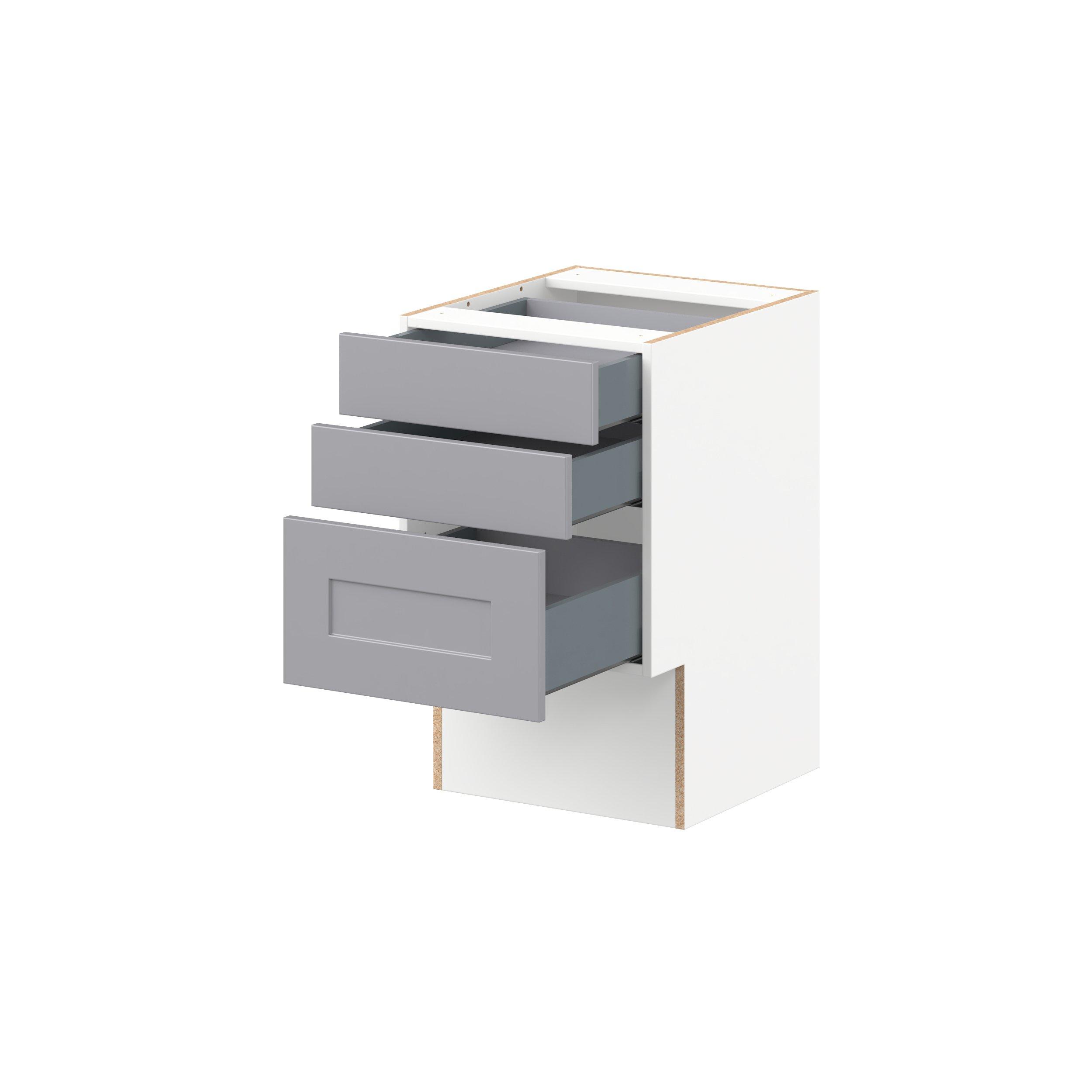 Transform your space with the elegance of Candler wide-rail shaker styles. Both the warm white and slate gray options create a rich transitional backdrop to complement any decor. Crafted from one-piece MDF Studio Design Collection Candler 18 in. Painted Slate Gray Vanity Drawer Base Cabinet - ADA is designed to resist hairline cracks while the easy-to-clean finish stands up to stains and moisture. Featuring 5-piece doors and dovetail drawer joints, these cabinets offer durability and elegance. This collection combines style with everyday storage solutions.