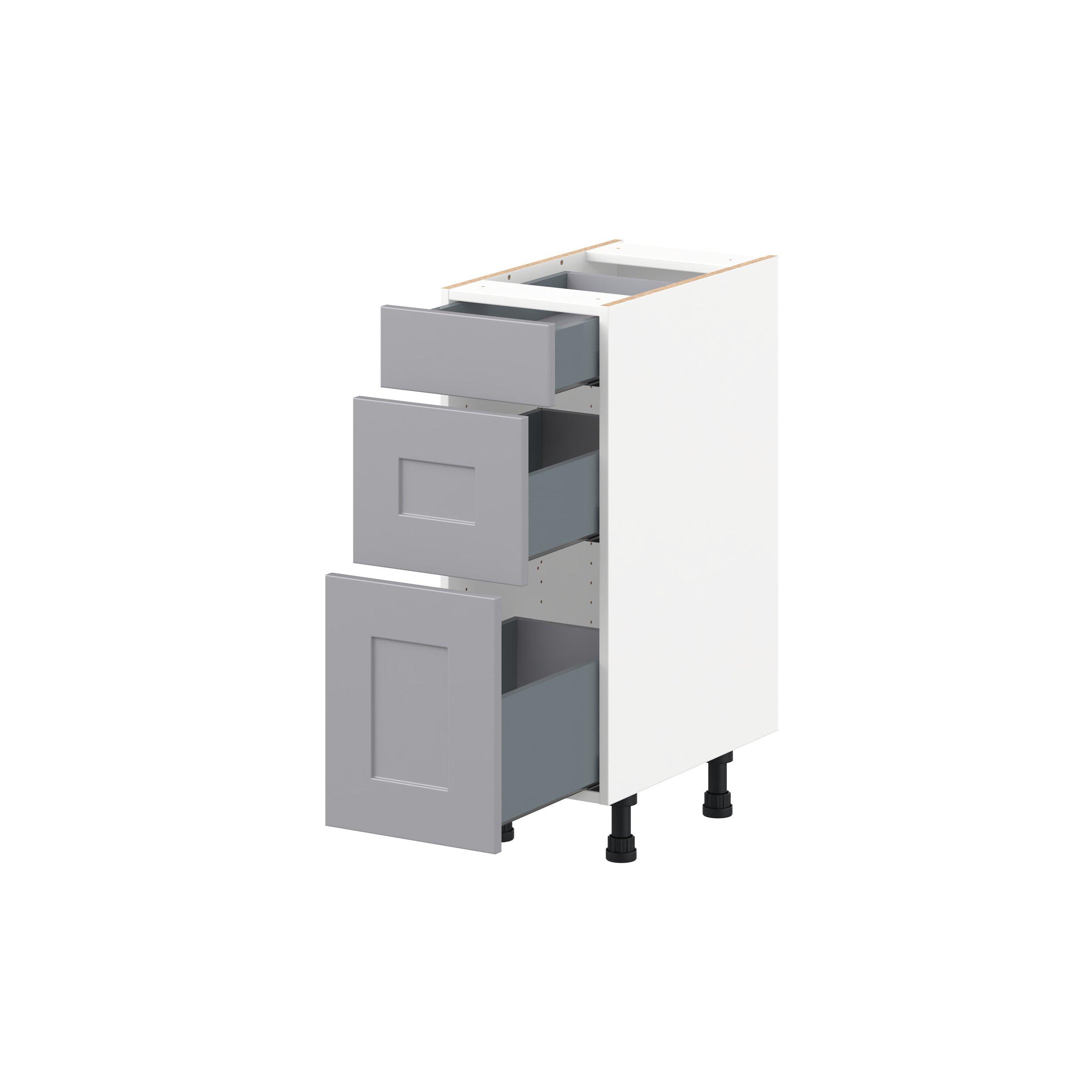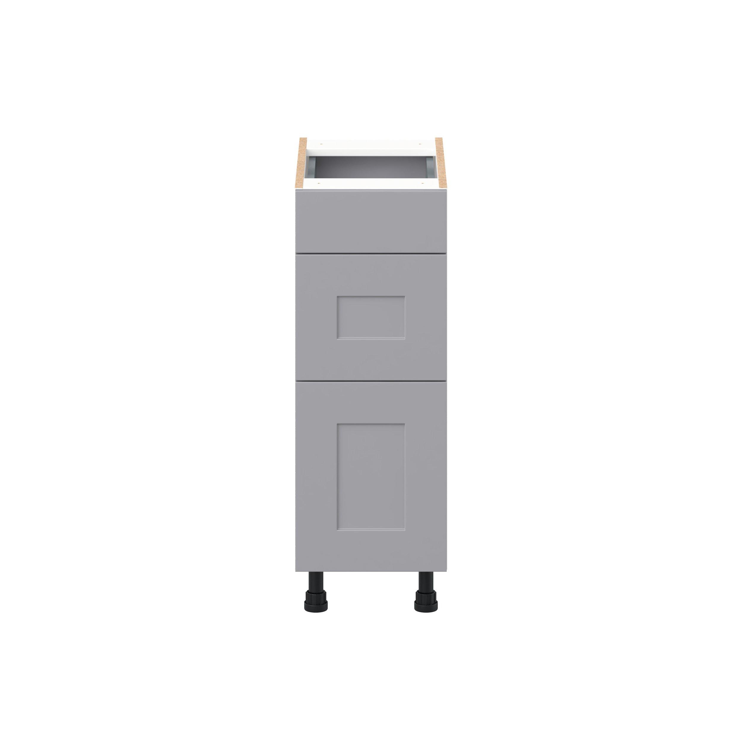 Transform your space with the elegance of Candler wide-rail shaker styles. Both the warm white and slate gray options create a rich transitional backdrop to complement any decor. Crafted from one-piece MDF Studio Design Collection Candler 12 in. Painted Slate Gray Vanity Drawer Base Cabinet - ADA is designed to resist hairline cracks while the easy-to-clean finish stands up to stains and moisture. Featuring 5-piece doors and dovetail drawer joints, these cabinets offer durability and elegance. This collection combines style with everyday storage solutions.