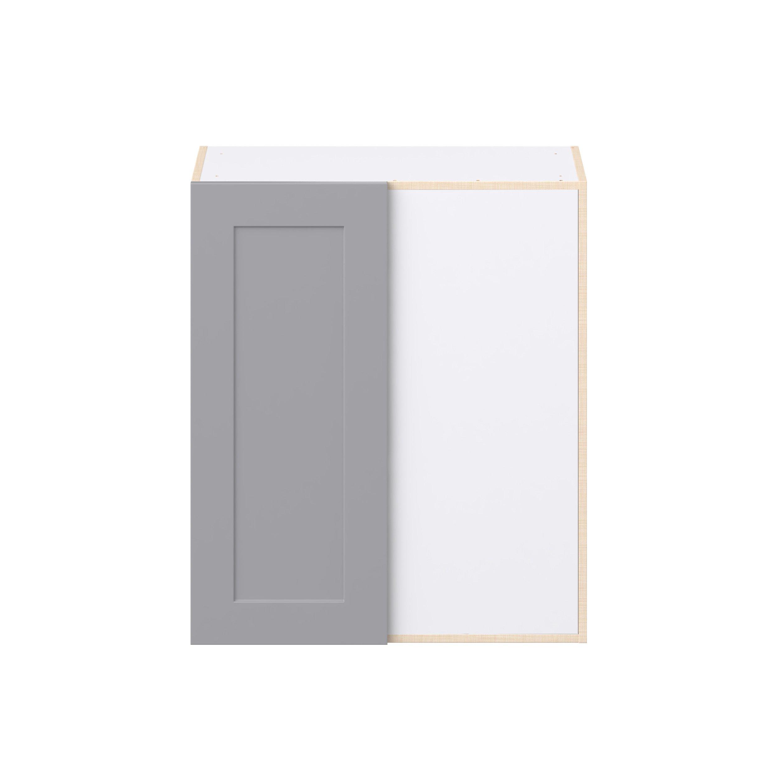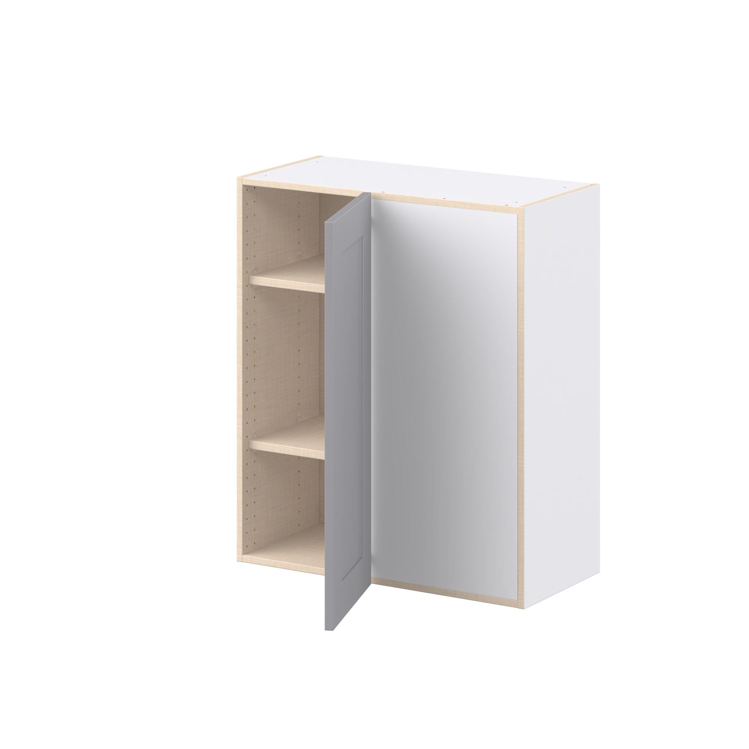 Transform your space with the elegance of Candler wide-rail shaker styles. Both the warm white and slate gray options create a rich transitional backdrop to complement any decor. Crafted from one-piece MDF Studio Design Collection Candler 30 in. Painted Slate Gray Right Blind Corner Wall Cabinet is designed to resist hairline cracks while the easy-to-clean finish stands up to stains and moisture. Featuring 5-piece doors and dovetail drawer joints, these cabinets offer durability and elegance. This collection combines style with everyday storage solutions.
