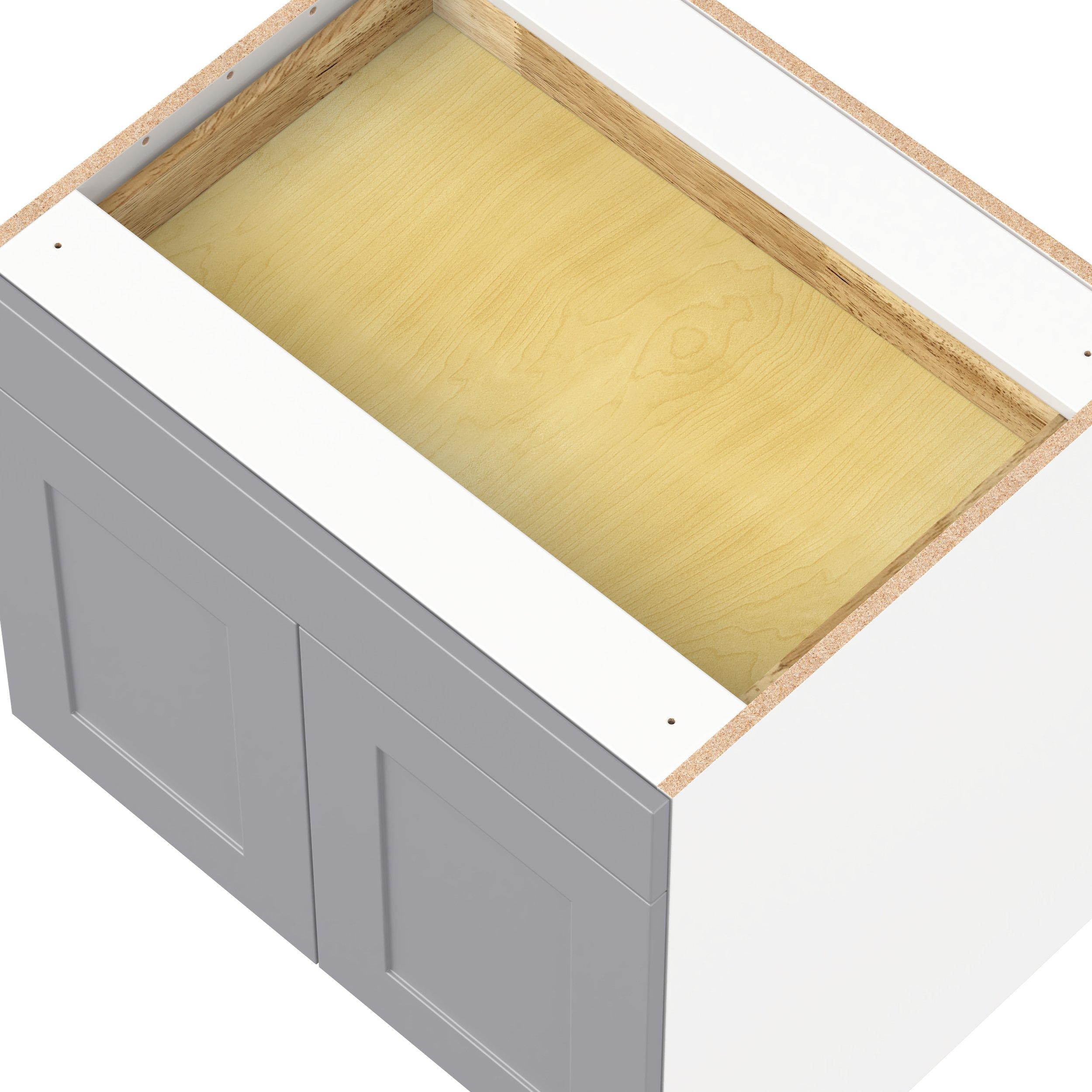 Transform your space with the elegance of Candler wide-rail shaker styles. Both the warm white and slate gray options create a rich transitional backdrop to complement any decor. Crafted from one-piece MDF Studio Design Collection Candler 30 in. Painted Slate Gray Door and Drawer Base Cabinet - ADA is designed to resist hairline cracks while the easy-to-clean finish stands up to stains and moisture. Featuring 5-piece doors and dovetail drawer joints, these cabinets offer durability and elegance. This collection combines style with everyday storage solutions.