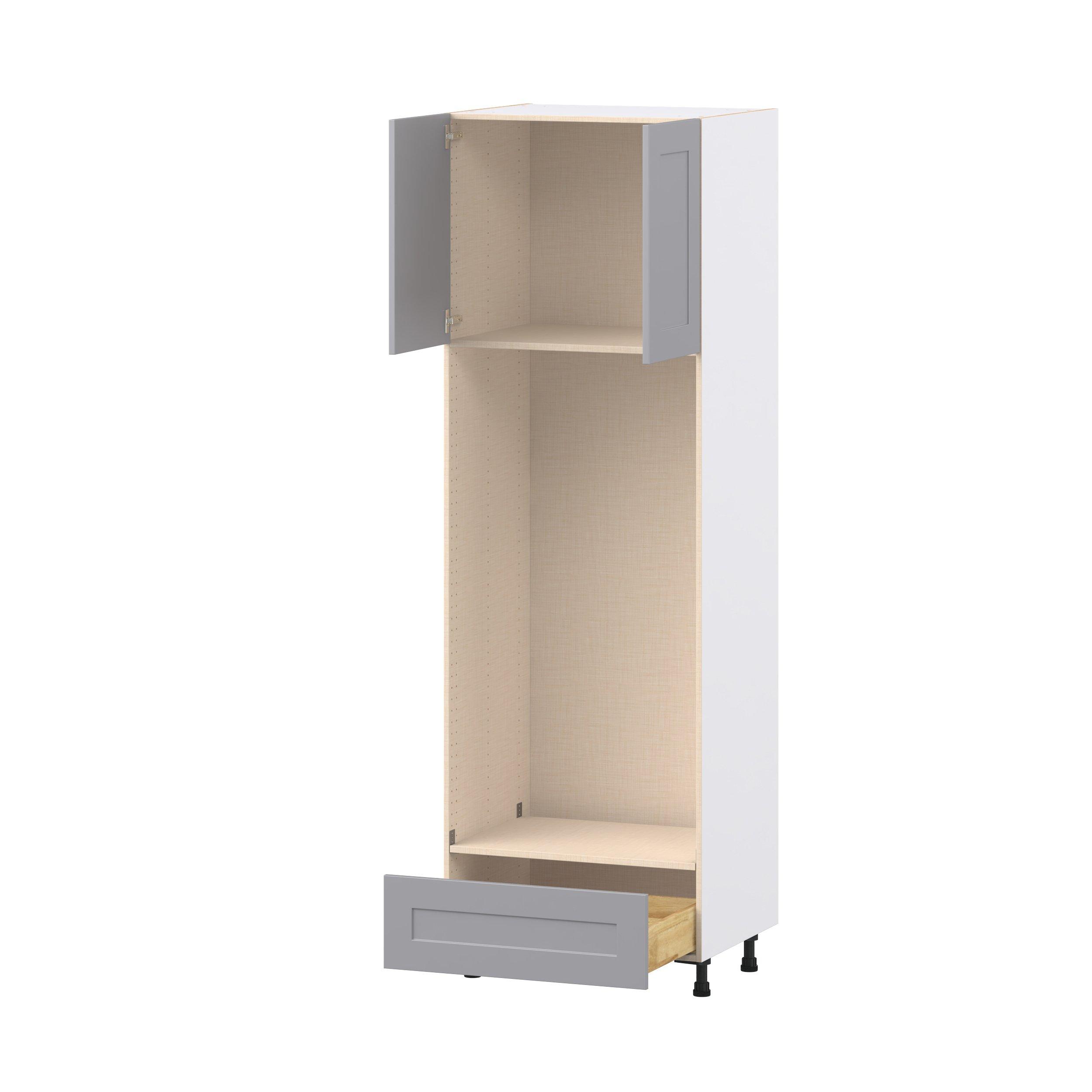Transform your space with the elegance of Candler wide-rail shaker styles. Both the warm white and slate gray options create a rich transitional backdrop to complement any decor. Crafted from one-piece MDF Studio Design Collection Candler 30 in. Painted Slate Gray Door and Drawer Double Oven Pantry Cabinet is designed to resist hairline cracks while the easy-to-clean finish stands up to stains and moisture. Featuring 5-piece doors and dovetail drawer joints, these cabinets offer durability and elegance. This collection combines style with everyday storage solutions.