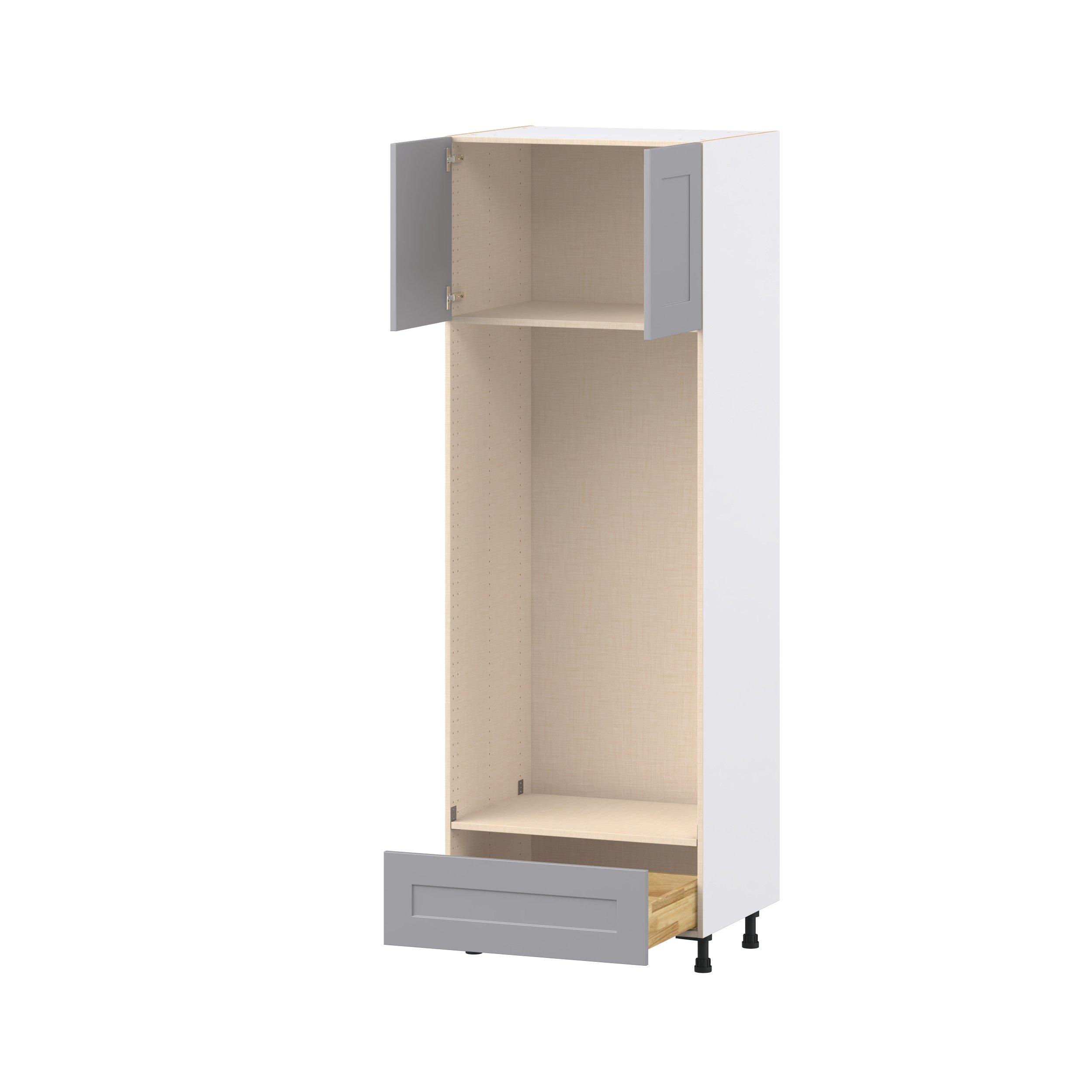 Transform your space with the elegance of Candler wide-rail shaker styles. Both the warm white and slate gray options create a rich transitional backdrop to complement any decor. Crafted from one-piece MDF Studio Design Collection Candler 30 in. Painted Slate Gray Door and Drawer Double Oven Pantry Cabinet is designed to resist hairline cracks while the easy-to-clean finish stands up to stains and moisture. Featuring 5-piece doors and dovetail drawer joints, these cabinets offer durability and elegance. This collection combines style with everyday storage solutions.