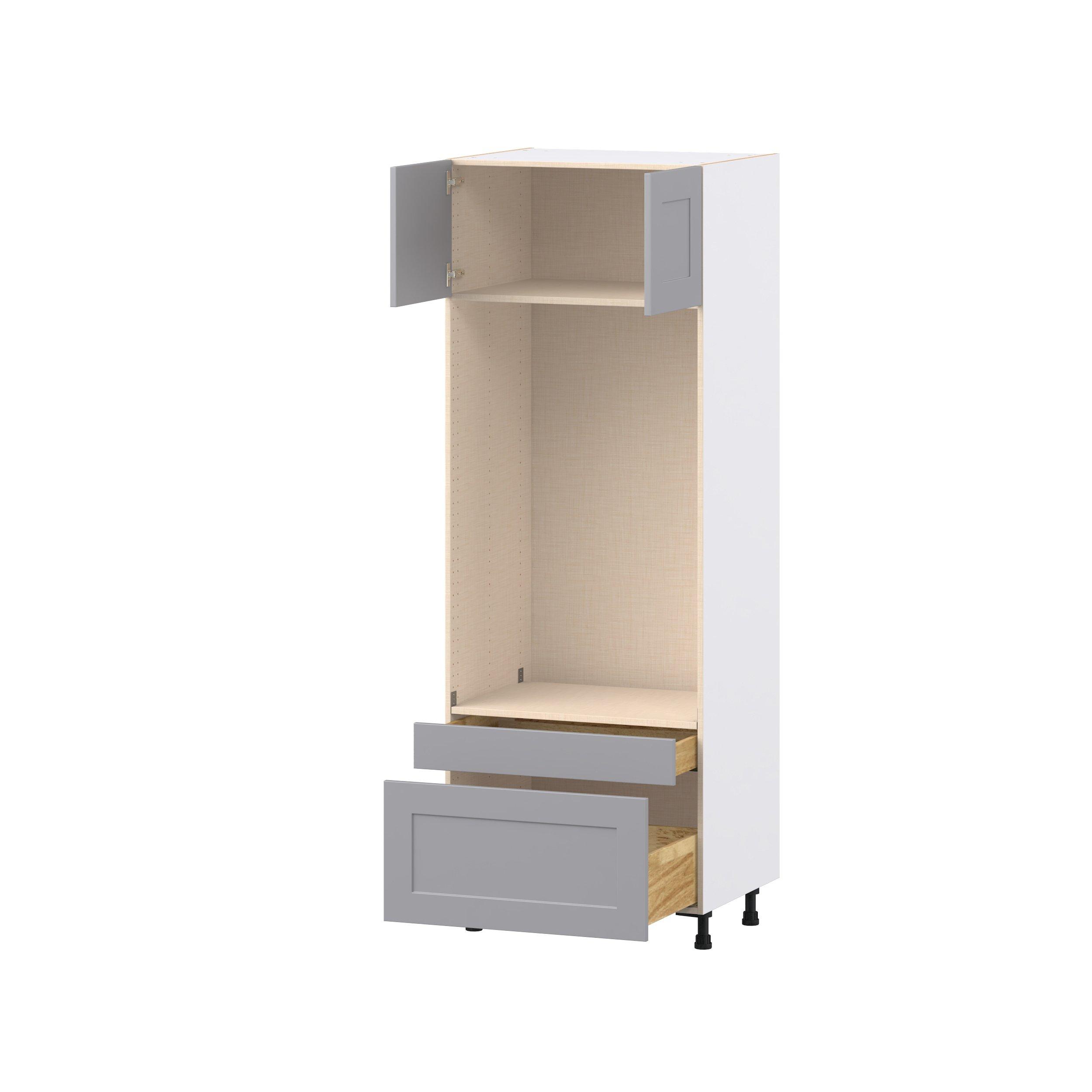 Transform your space with the elegance of Candler wide-rail shaker styles. Both the warm white and slate gray options create a rich transitional backdrop to complement any decor. Crafted from one-piece MDF Studio Design Collection Candler 30 in. Painted Slate Gray Door and Drawer Microwave/Oven Pantry Cabinet is designed to resist hairline cracks while the easy-to-clean finish stands up to stains and moisture. Featuring 5-piece doors and dovetail drawer joints, these cabinets offer durability and elegance. This collection combines style with everyday storage solutions.