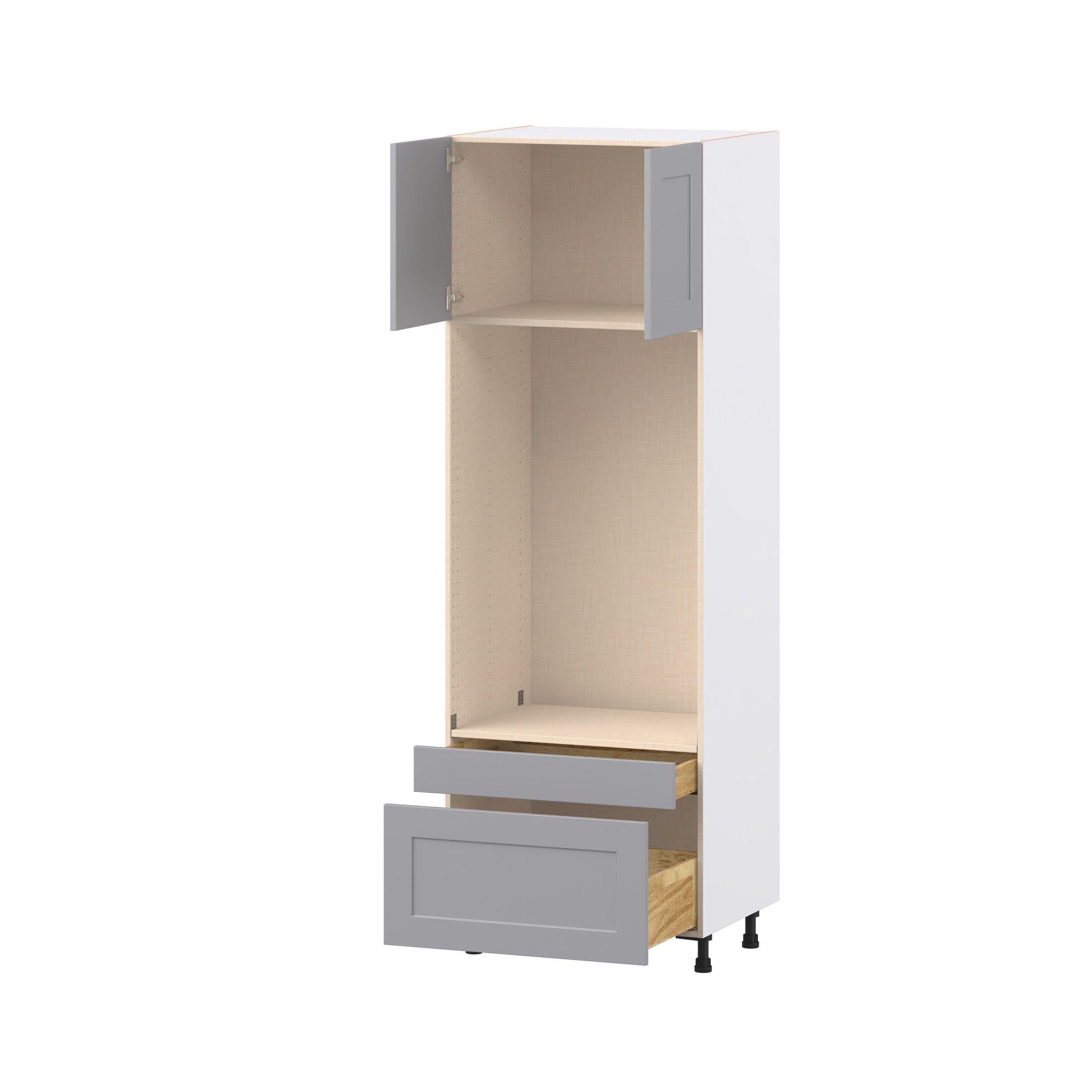 Transform your space with the elegance of Candler wide-rail shaker styles. Both the warm white and slate gray options create a rich transitional backdrop to complement any decor. Crafted from one-piece MDF Studio Design Collection Candler 30 in. Painted Slate Gray Door and Drawer Microwave/Oven Pantry Cabinet is designed to resist hairline cracks while the easy-to-clean finish stands up to stains and moisture. Featuring 5-piece doors and dovetail drawer joints, these cabinets offer durability and elegance. This collection combines style with everyday storage solutions.