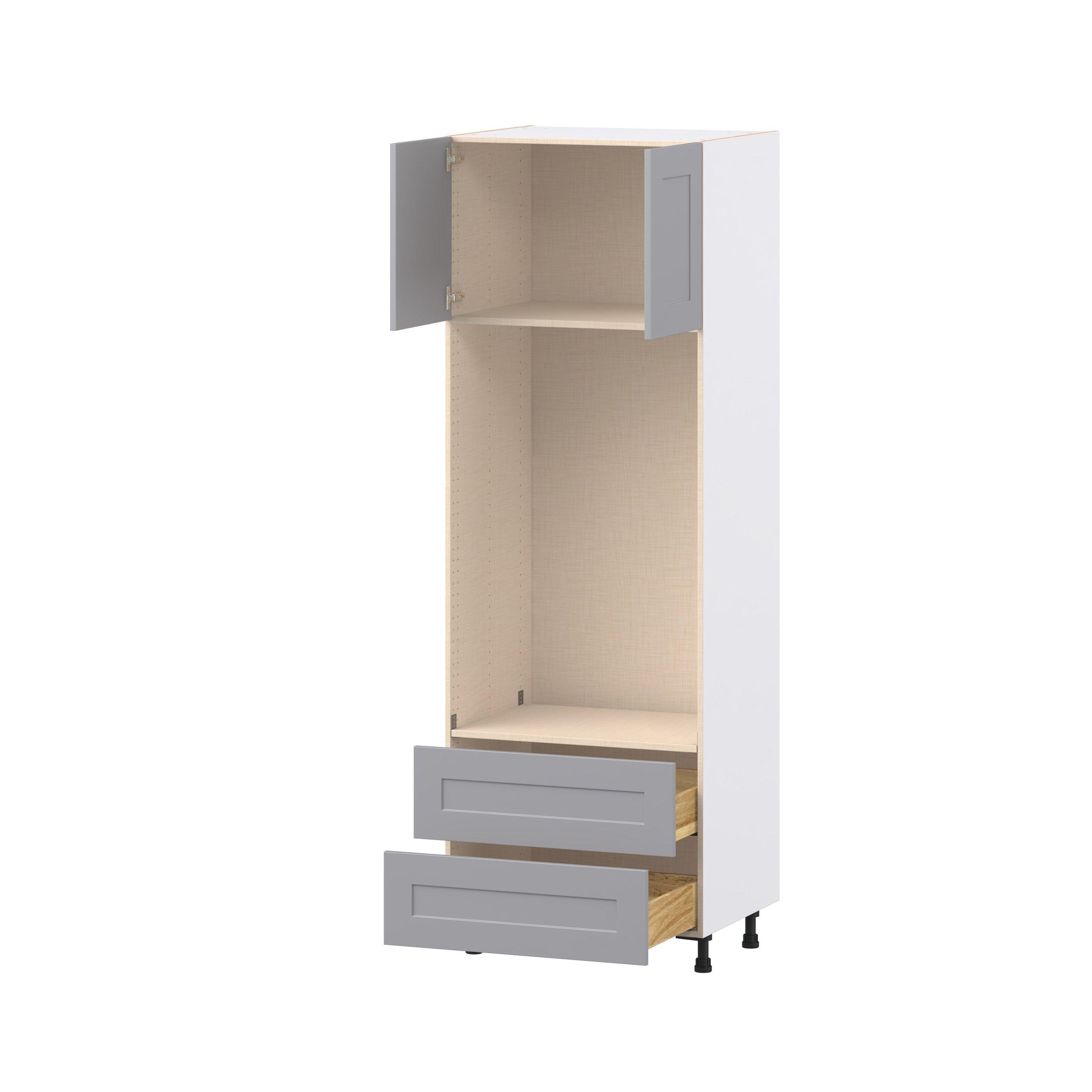 Transform your space with the elegance of Candler wide-rail shaker styles. Both the warm white and slate gray options create a rich transitional backdrop to complement any decor. Crafted from one-piece MDF Studio Design Collection Candler 30 in. Painted Slate Gray Door and Drawer Microwave/Oven Pantry Cabinet is designed to resist hairline cracks while the easy-to-clean finish stands up to stains and moisture. Featuring 5-piece doors and dovetail drawer joints, these cabinets offer durability and elegance. This collection combines style with everyday storage solutions.