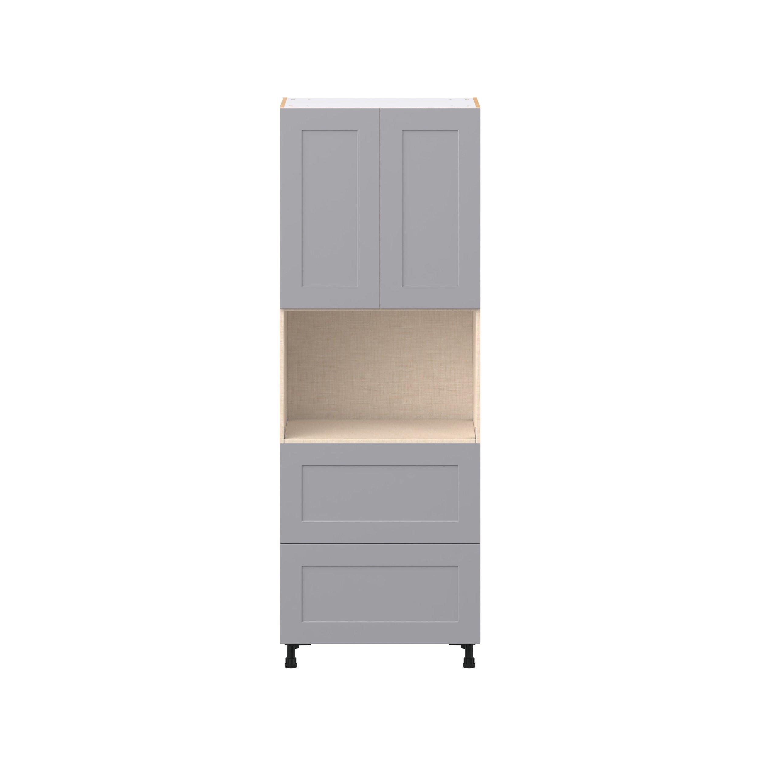 Transform your space with the elegance of Candler wide-rail shaker styles. Both the warm white and slate gray options create a rich transitional backdrop to complement any decor. Crafted from one-piece MDF Studio Design Collection Candler 30 in. Painted Slate Gray Door and Drawer Microwave Pantry Cabinet is designed to resist hairline cracks while the easy-to-clean finish stands up to stains and moisture. Featuring 5-piece doors and dovetail drawer joints, these cabinets offer durability and elegance. This collection combines style with everyday storage solutions.