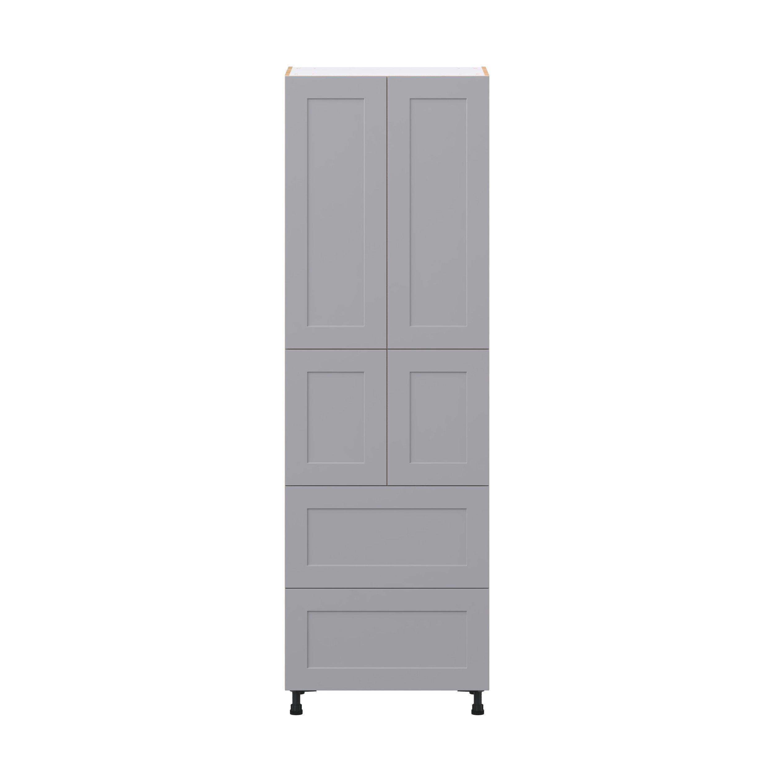 Transform your space with the elegance of Candler wide-rail shaker styles. Both the warm white and slate gray options create a rich transitional backdrop to complement any decor. Crafted from one-piece MDF Studio Design Collection Candler 30 in. Painted Slate Gray Door and Drawer Pantry Cabinet with Inner Pull-Out is designed to resist hairline cracks while the easy-to-clean finish stands up to stains and moisture. Featuring 5-piece doors and dovetail drawer joints, these cabinets offer durability and elegance. This collection combines style with everyday storage solutions.