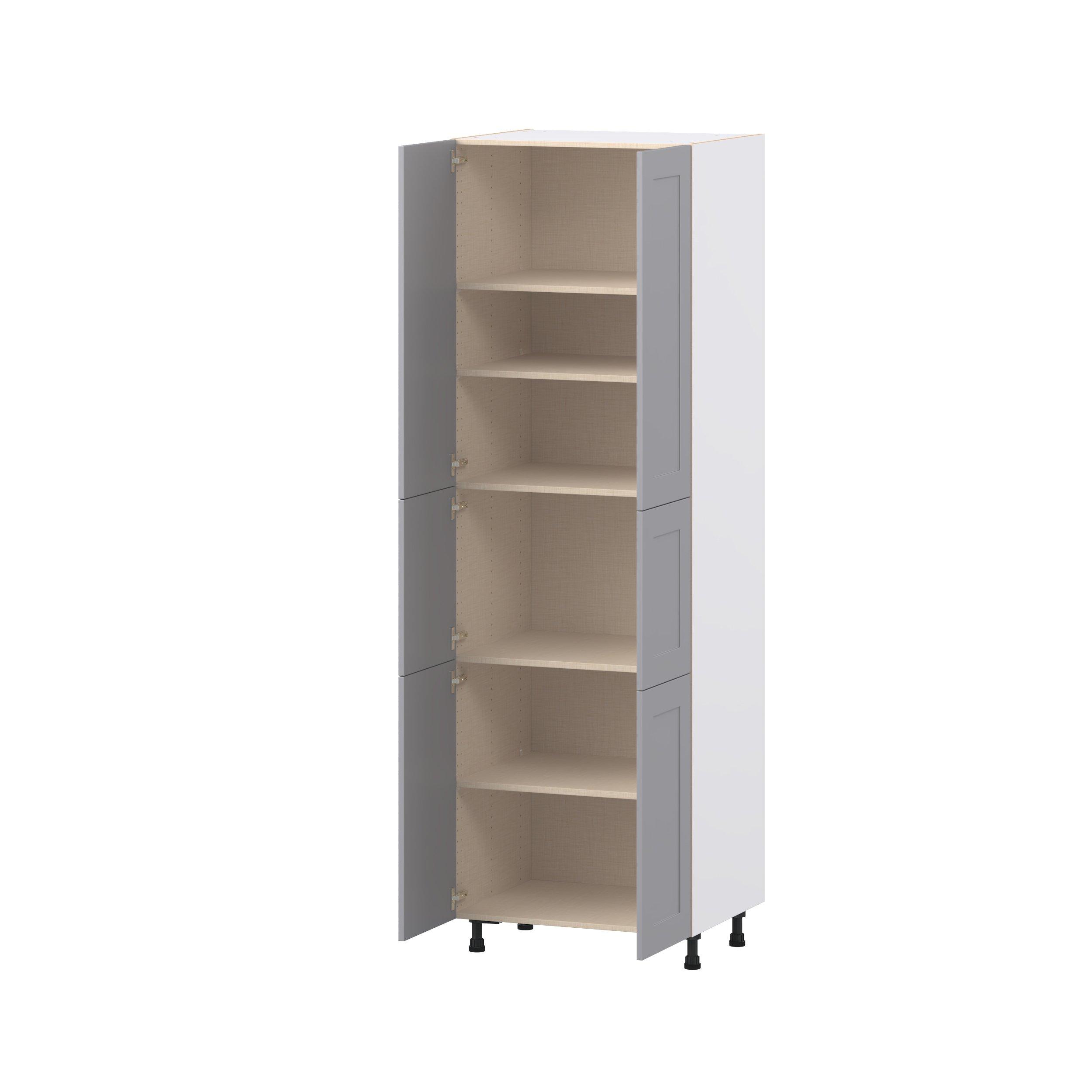 Transform your space with the elegance of Candler wide-rail shaker styles. Both the warm white and slate gray options create a rich transitional backdrop to complement any decor. Crafted from one-piece MDF Studio Design Collection Candler 30 in. Painted Slate Gray Door Pantry Cabinet is designed to resist hairline cracks while the easy-to-clean finish stands up to stains and moisture. Featuring 5-piece doors and dovetail drawer joints, these cabinets offer durability and elegance. This collection combines style with everyday storage solutions.