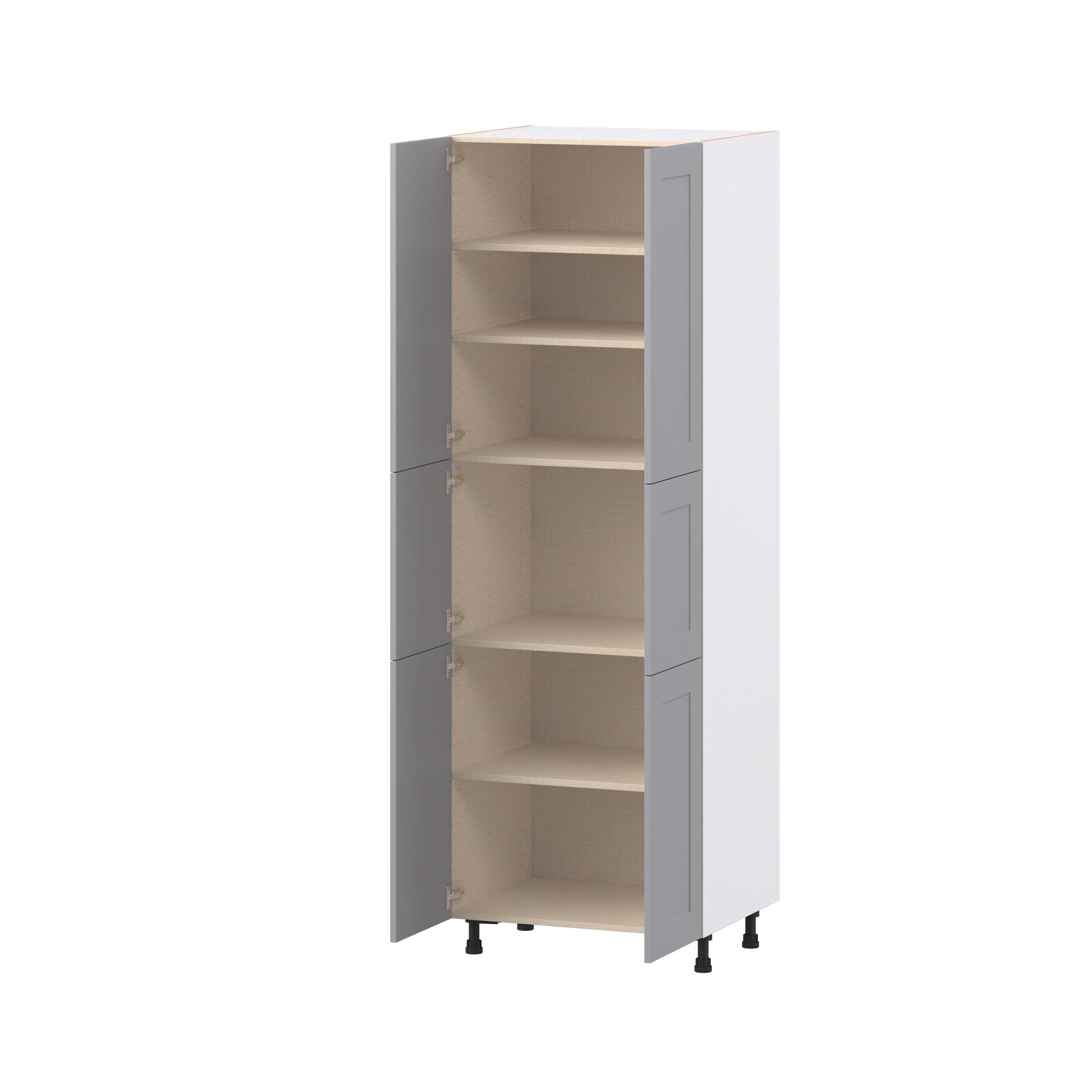 Transform your space with the elegance of Candler wide-rail shaker styles. Both the warm white and slate gray options create a rich transitional backdrop to complement any decor. Crafted from one-piece MDF Studio Design Collection Candler 30 in. Painted Slate Gray Door Pantry Cabinet is designed to resist hairline cracks while the easy-to-clean finish stands up to stains and moisture. Featuring 5-piece doors and dovetail drawer joints, these cabinets offer durability and elegance. This collection combines style with everyday storage solutions.