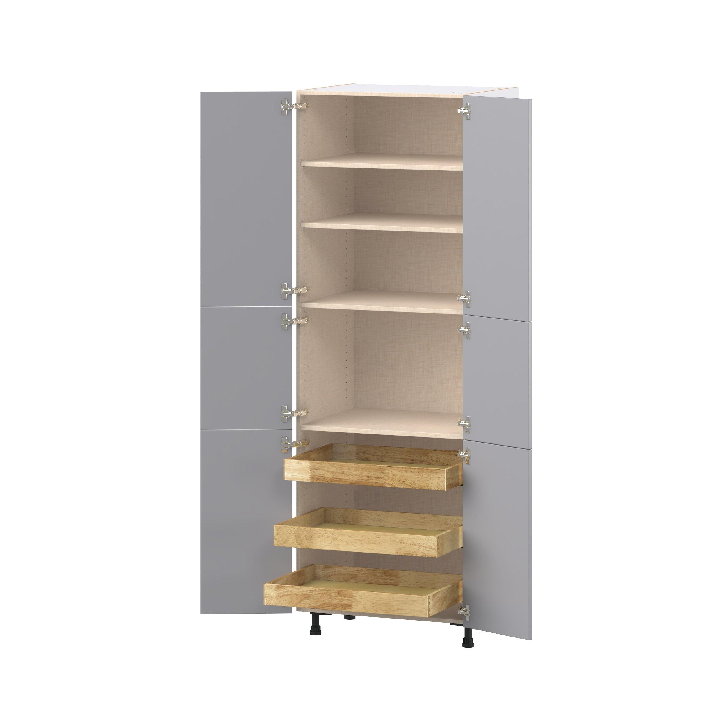 Transform your space with the elegance of Candler wide-rail shaker styles. Both the warm white and slate gray options create a rich transitional backdrop to complement any decor. Crafted from one-piece MDF Studio Design Collection Candler 30 in. Painted Slate Gray Pantry Cabinet with Inner Pull-Out Drawer is designed to resist hairline cracks while the easy-to-clean finish stands up to stains and moisture. Featuring 5-piece doors and dovetail drawer joints, these cabinets offer durability and elegance. This collection combines style with everyday storage solutions.