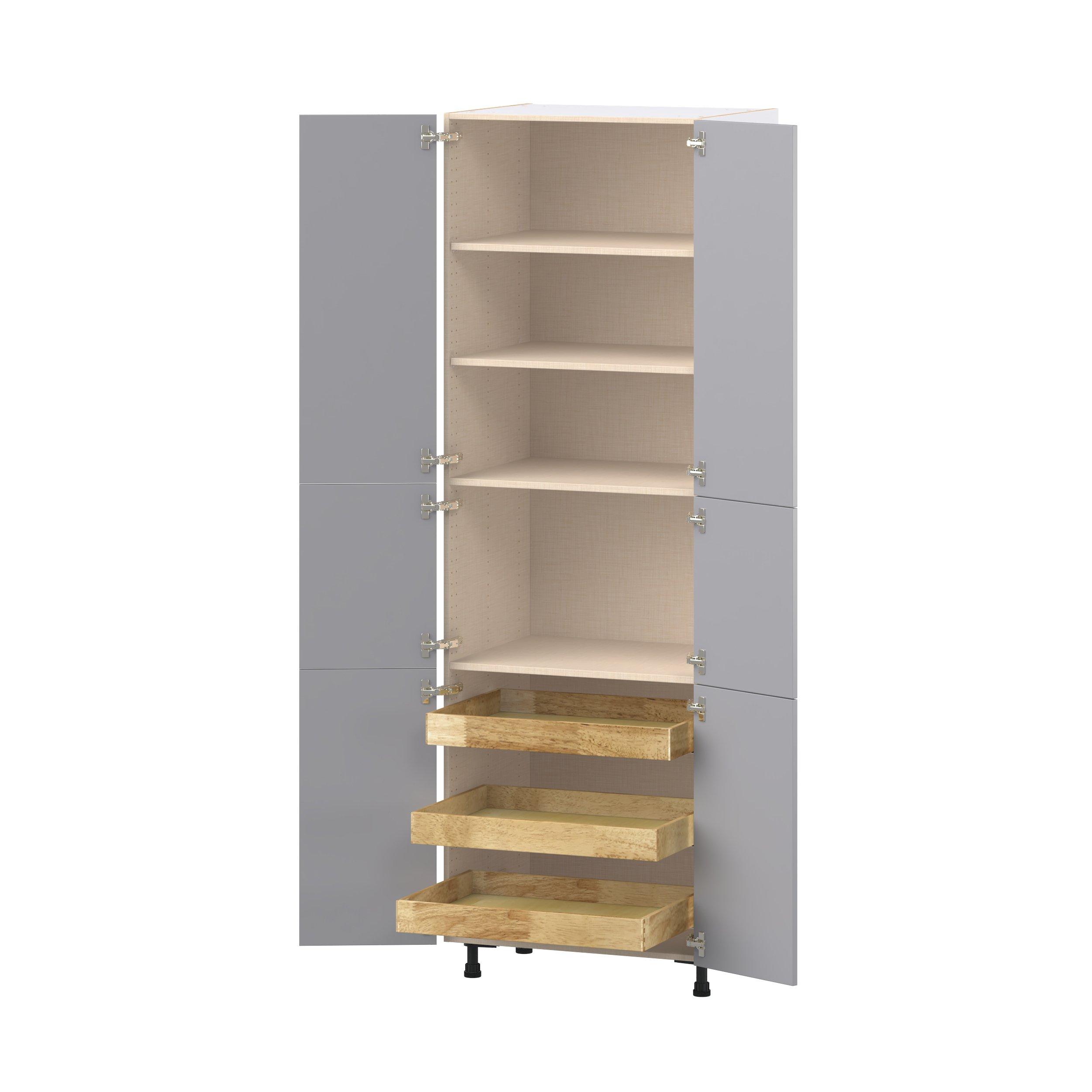 Transform your space with the elegance of Candler wide-rail shaker styles. Both the warm white and slate gray options create a rich transitional backdrop to complement any decor. Crafted from one-piece MDF Studio Design Collection Candler 30 in. Painted Slate Gray Pantry Cabinet with Inner Pull-Out Drawer is designed to resist hairline cracks while the easy-to-clean finish stands up to stains and moisture. Featuring 5-piece doors and dovetail drawer joints, these cabinets offer durability and elegance. This collection combines style with everyday storage solutions.