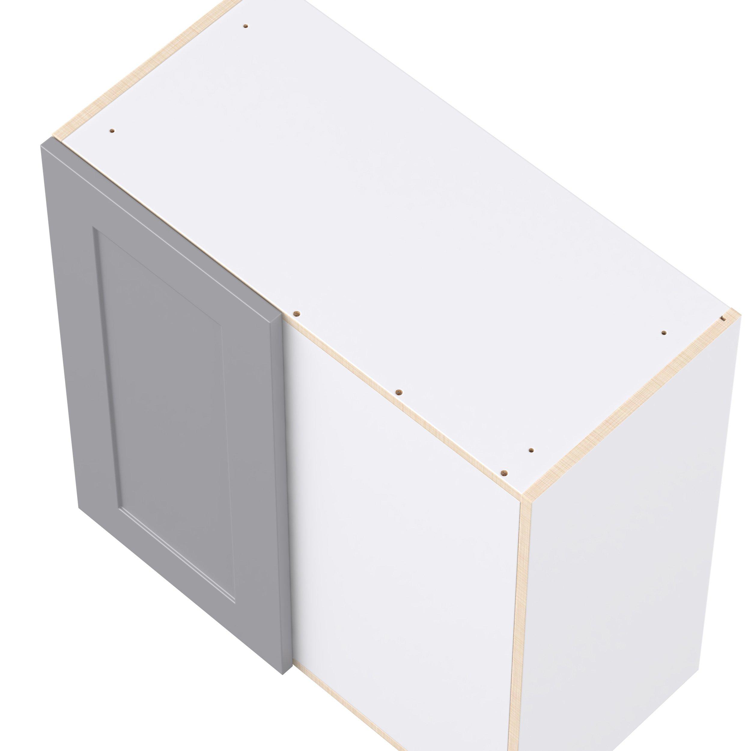 Transform your space with the elegance of Candler wide-rail shaker styles. Both the warm white and slate gray options create a rich transitional backdrop to complement any decor. Crafted from one-piece MDF Studio Design Collection Candler 30 in. Painted Slate Gray Right Blind Corner Wall Cabinet is designed to resist hairline cracks while the easy-to-clean finish stands up to stains and moisture. Featuring 5-piece doors and dovetail drawer joints, these cabinets offer durability and elegance. This collection combines style with everyday storage solutions.