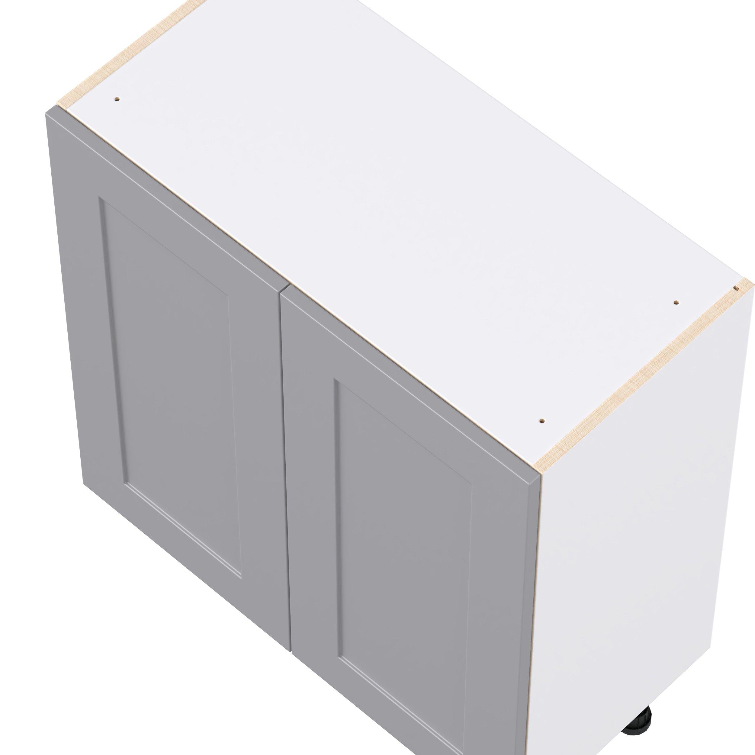 Transform your space with the elegance of Candler wide-rail shaker styles. Both the warm white and slate gray options create a rich transitional backdrop to complement any decor. Crafted from one-piece MDF Studio Design Collection Candler 30 in. Painted Slate Gray Shallow Base Cabinet is designed to resist hairline cracks while the easy-to-clean finish stands up to stains and moisture. Featuring 5-piece doors and dovetail drawer joints, these cabinets offer durability and elegance. This collection combines style with everyday storage solutions.