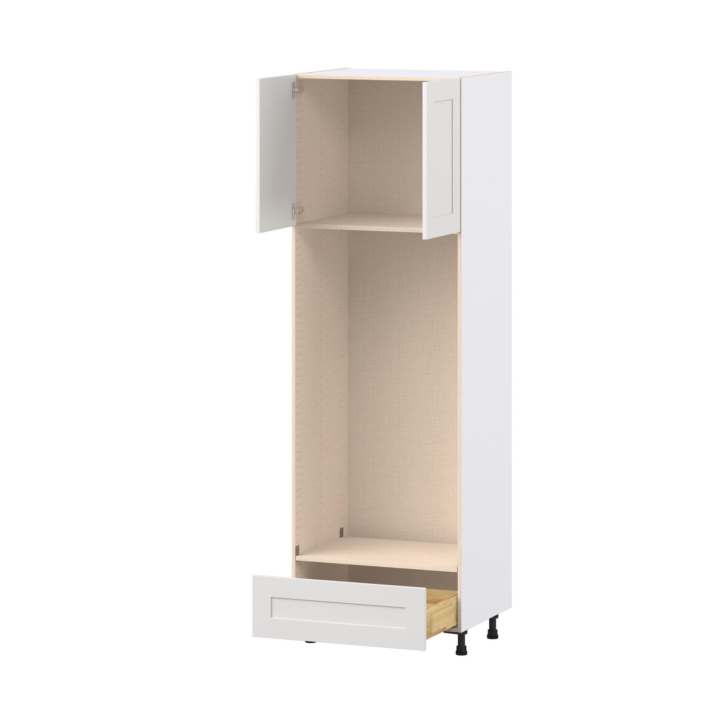 Transform your space with the elegance of Candler wide-rail shaker styles. Both the warm white and slate gray options create a rich transitional backdrop to complement any decor. Crafted from one-piece MDF Studio Design Collection Candler 30 in. Painted Warm White Door and Drawer Double Oven Pantry Cabinet is designed to resist hairline cracks while the easy-to-clean finish stands up to stains and moisture. Featuring 5-piece doors and dovetail drawer joints, these cabinets offer durability and elegance. This collection combines style with everyday storage solutions.