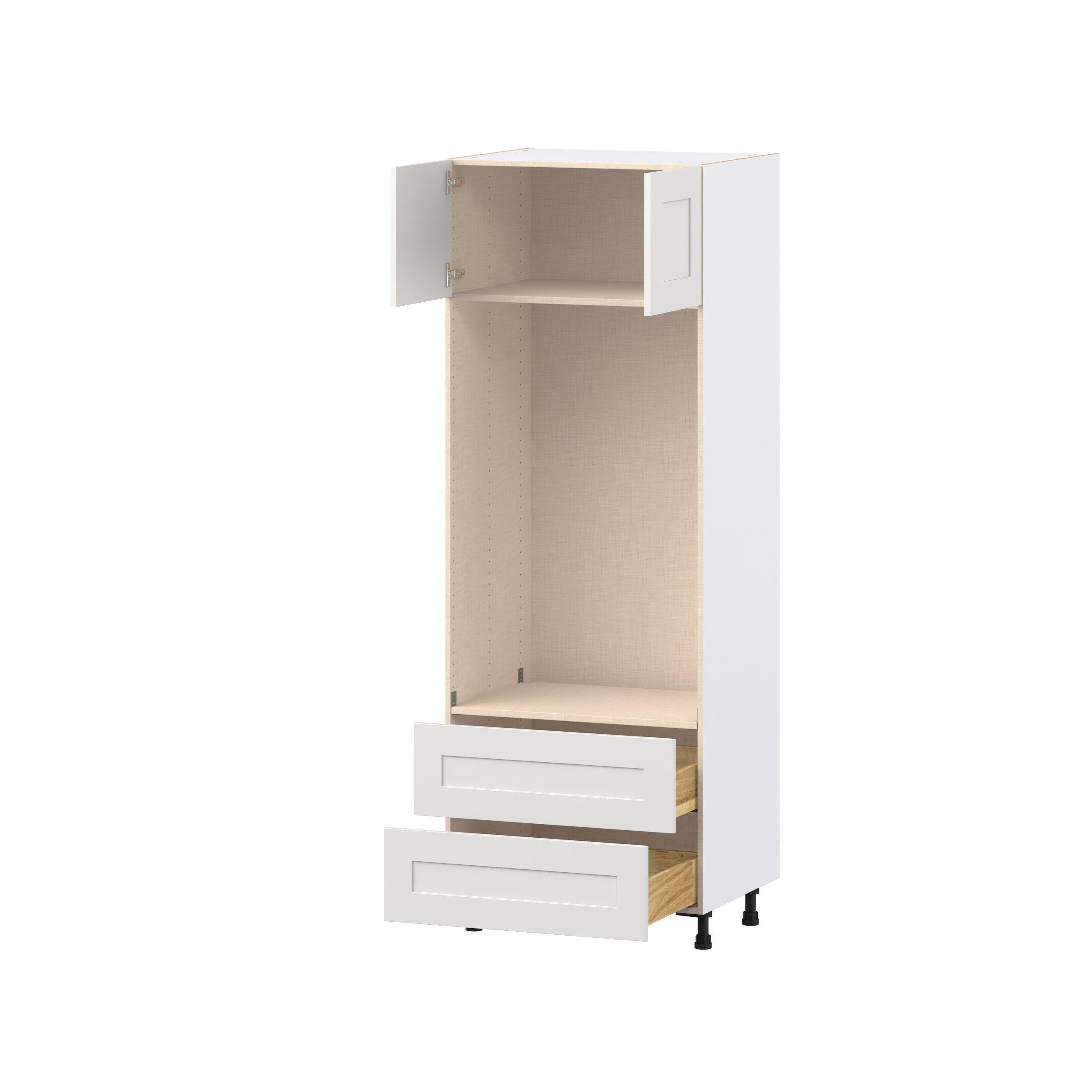 Transform your space with the elegance of Candler wide-rail shaker styles. Both the warm white and slate gray options create a rich transitional backdrop to complement any decor. Crafted from one-piece MDF Studio Design Collection Candler 30 in. Painted Warm White Door and Drawer Microwave/Oven Pantry Cabinet is designed to resist hairline cracks while the easy-to-clean finish stands up to stains and moisture. Featuring 5-piece doors and dovetail drawer joints, these cabinets offer durability and elegance. This collection combines style with everyday storage solutions.