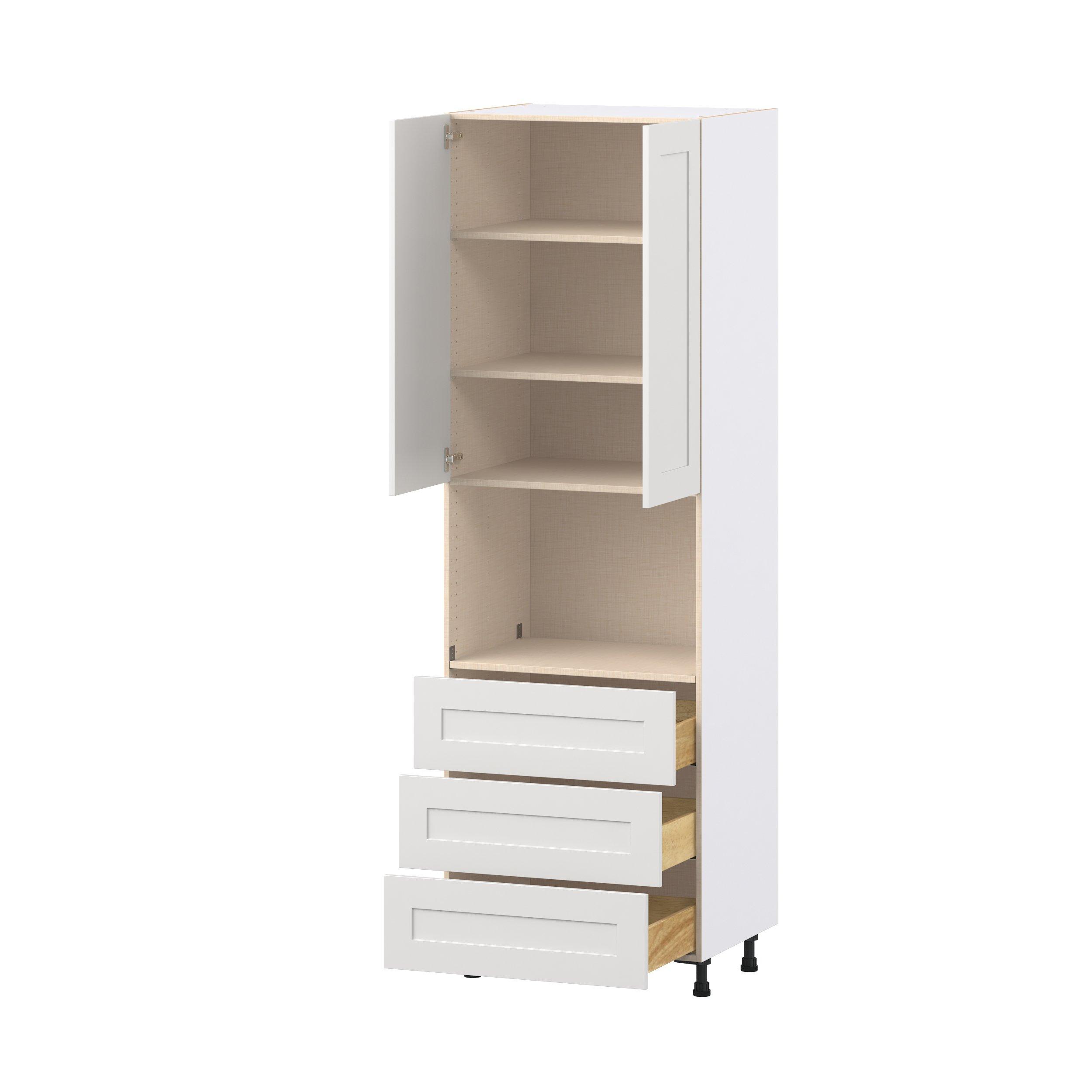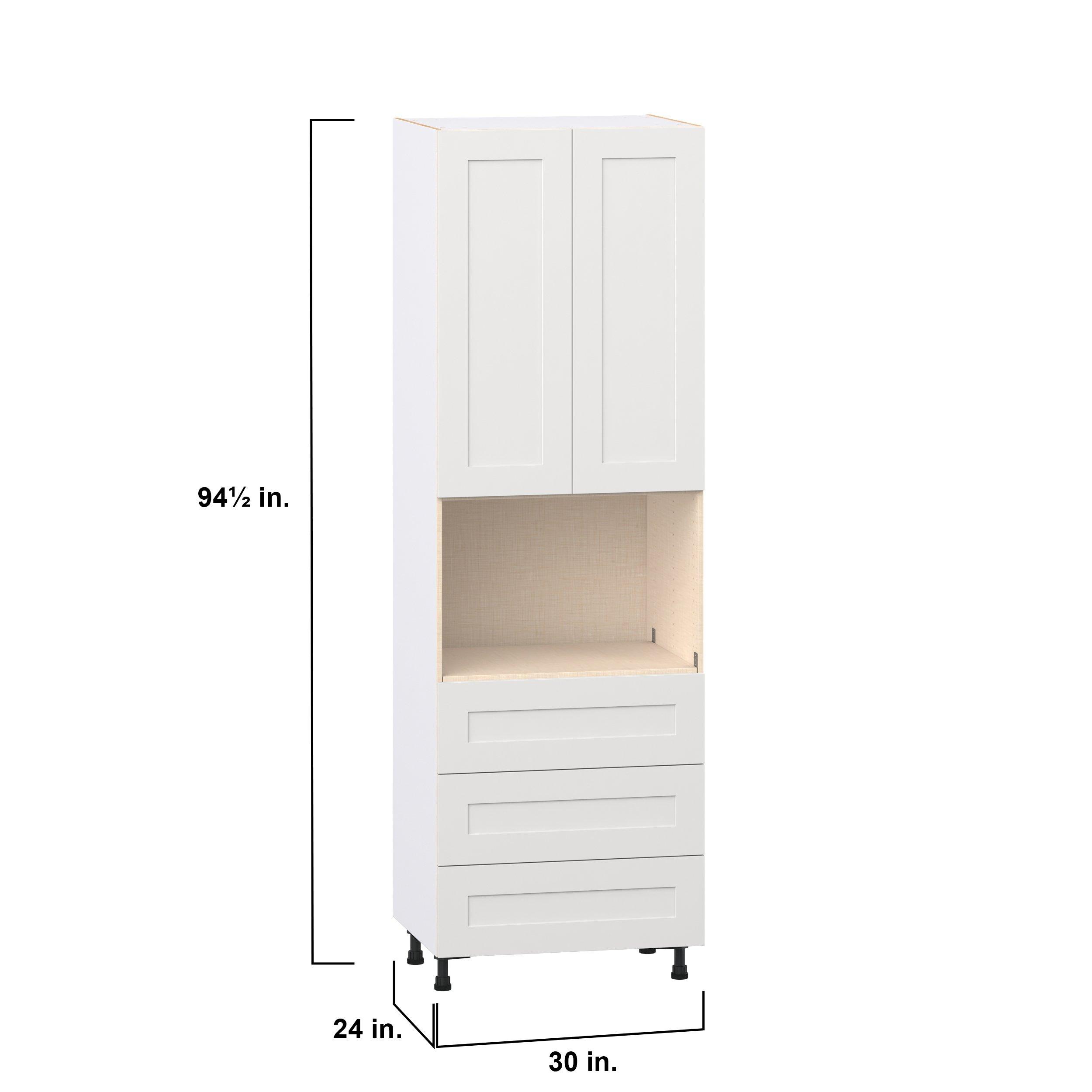 Transform your space with the elegance of Candler wide-rail shaker styles. Both the warm white and slate gray options create a rich transitional backdrop to complement any decor. Crafted from one-piece MDF Studio Design Collection Candler 30 in. Painted Warm White Door and Drawer Microwave Pantry Cabinet is designed to resist hairline cracks while the easy-to-clean finish stands up to stains and moisture. Featuring 5-piece doors and dovetail drawer joints, these cabinets offer durability and elegance. This collection combines style with everyday storage solutions.