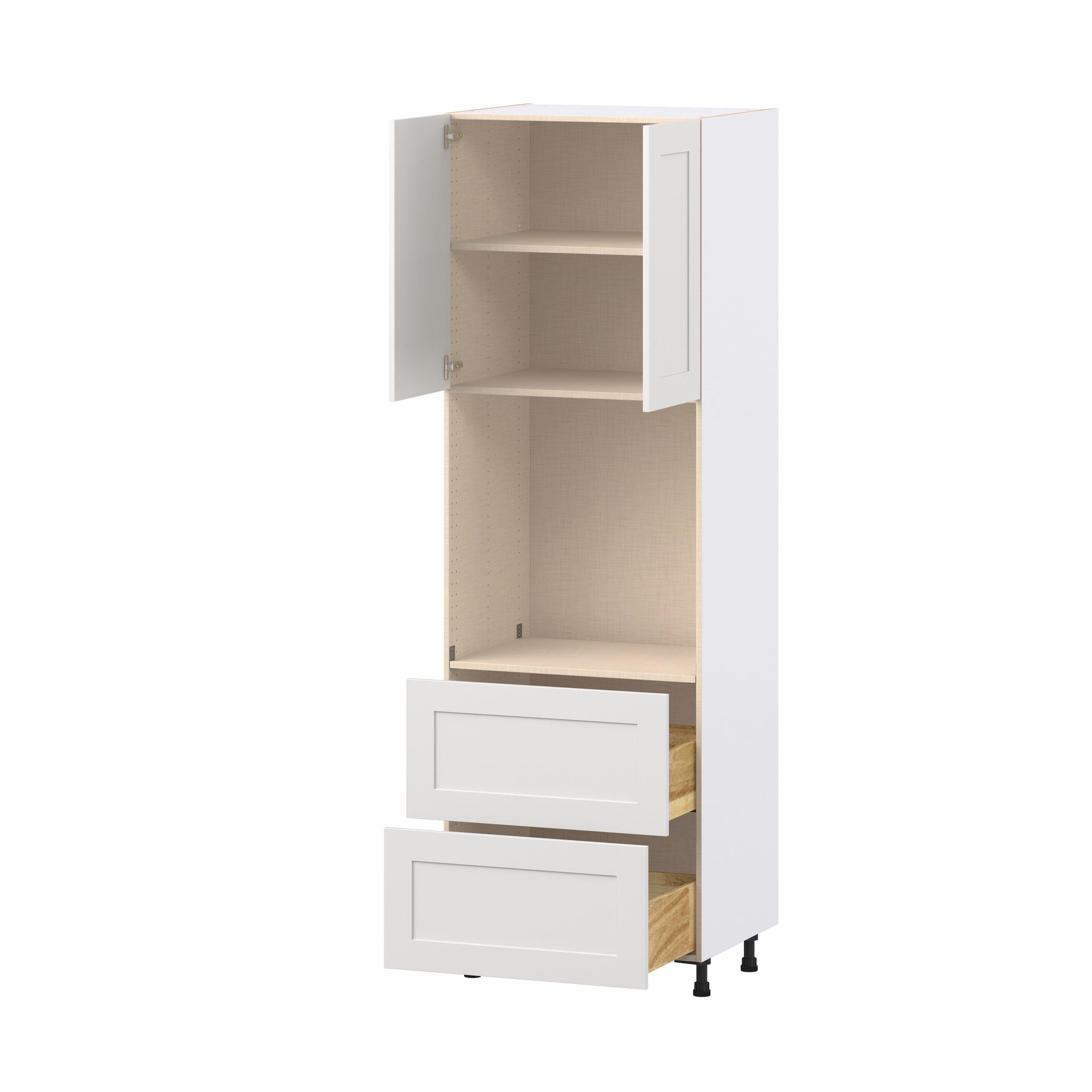 Transform your space with the elegance of Candler wide-rail shaker styles. Both the warm white and slate gray options create a rich transitional backdrop to complement any decor. Crafted from one-piece MDF Studio Design Collection Candler 30 in. Painted Warm White Door and Drawer Single Oven Pantry Cabinet is designed to resist hairline cracks while the easy-to-clean finish stands up to stains and moisture. Featuring 5-piece doors and dovetail drawer joints, these cabinets offer durability and elegance. This collection combines style with everyday storage solutions.