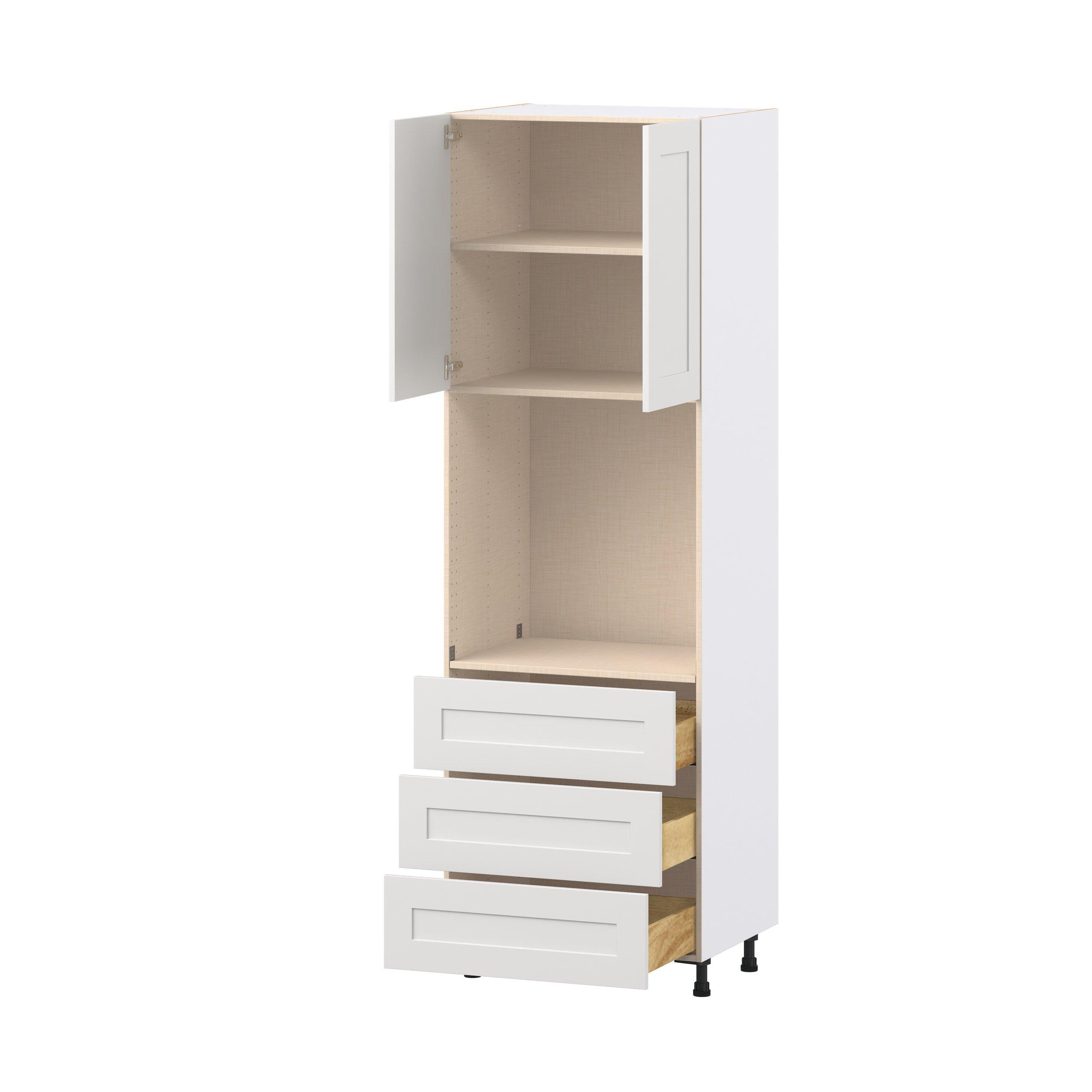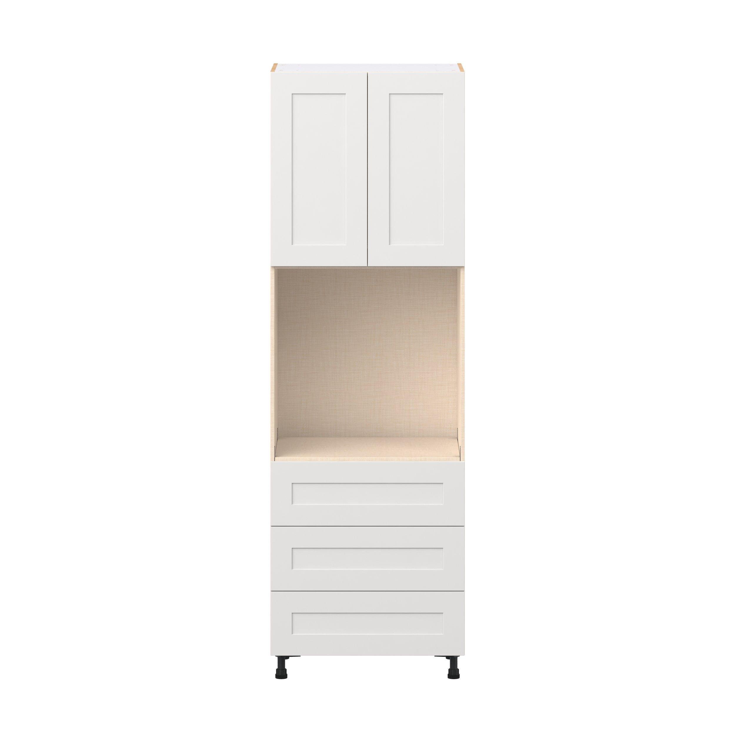 Transform your space with the elegance of Candler wide-rail shaker styles. Both the warm white and slate gray options create a rich transitional backdrop to complement any decor. Crafted from one-piece MDF Studio Design Collection Candler 30 in. Painted Warm White Door and Drawer Single Oven Pantry Cabinet is designed to resist hairline cracks while the easy-to-clean finish stands up to stains and moisture. Featuring 5-piece doors and dovetail drawer joints, these cabinets offer durability and elegance. This collection combines style with everyday storage solutions.