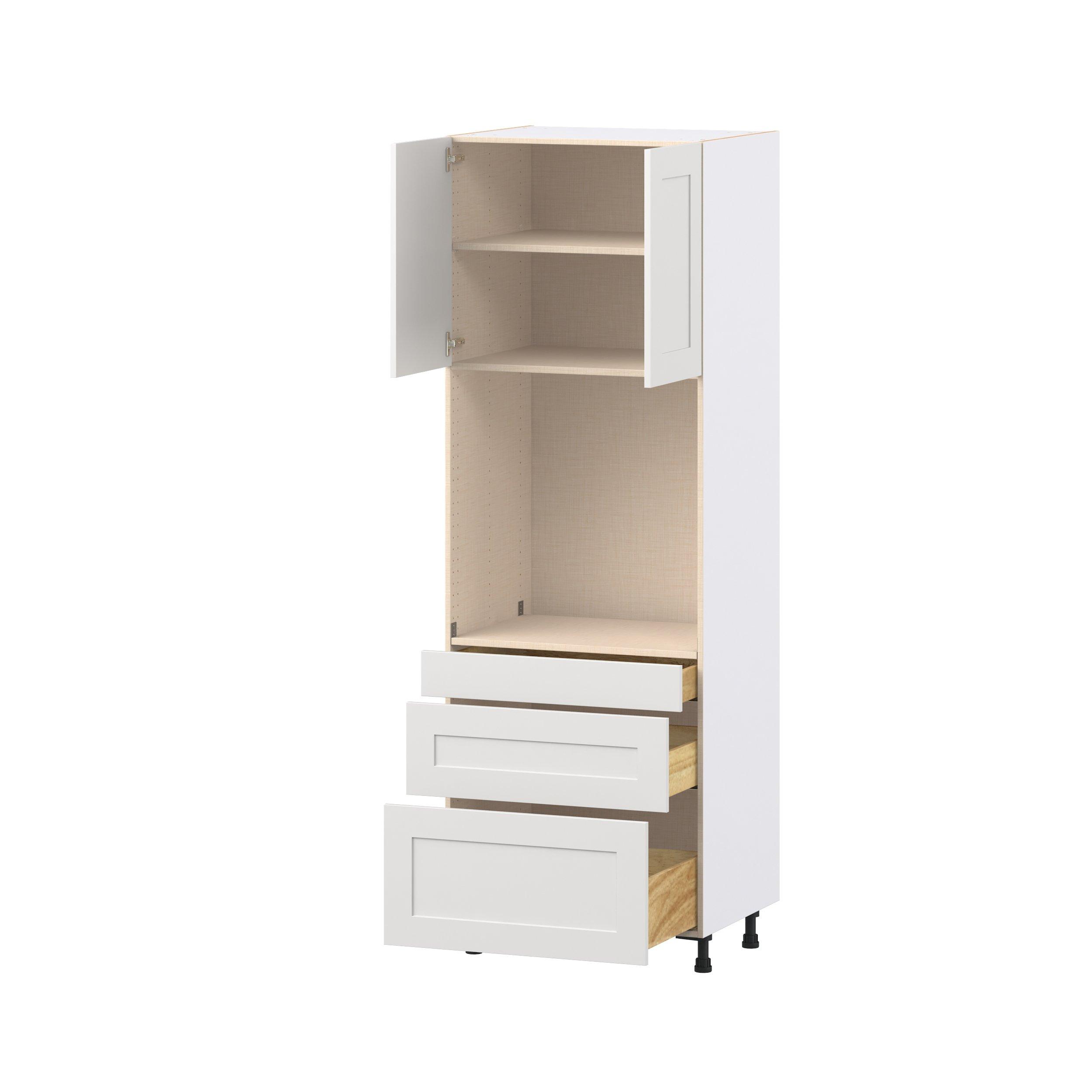 Transform your space with the elegance of Candler wide-rail shaker styles. Both the warm white and slate gray options create a rich transitional backdrop to complement any decor. Crafted from one-piece MDF Studio Design Collection Candler 30 in. Painted Warm White Door and Drawer Single Oven Pantry Cabinet is designed to resist hairline cracks while the easy-to-clean finish stands up to stains and moisture. Featuring 5-piece doors and dovetail drawer joints, these cabinets offer durability and elegance. This collection combines style with everyday storage solutions.