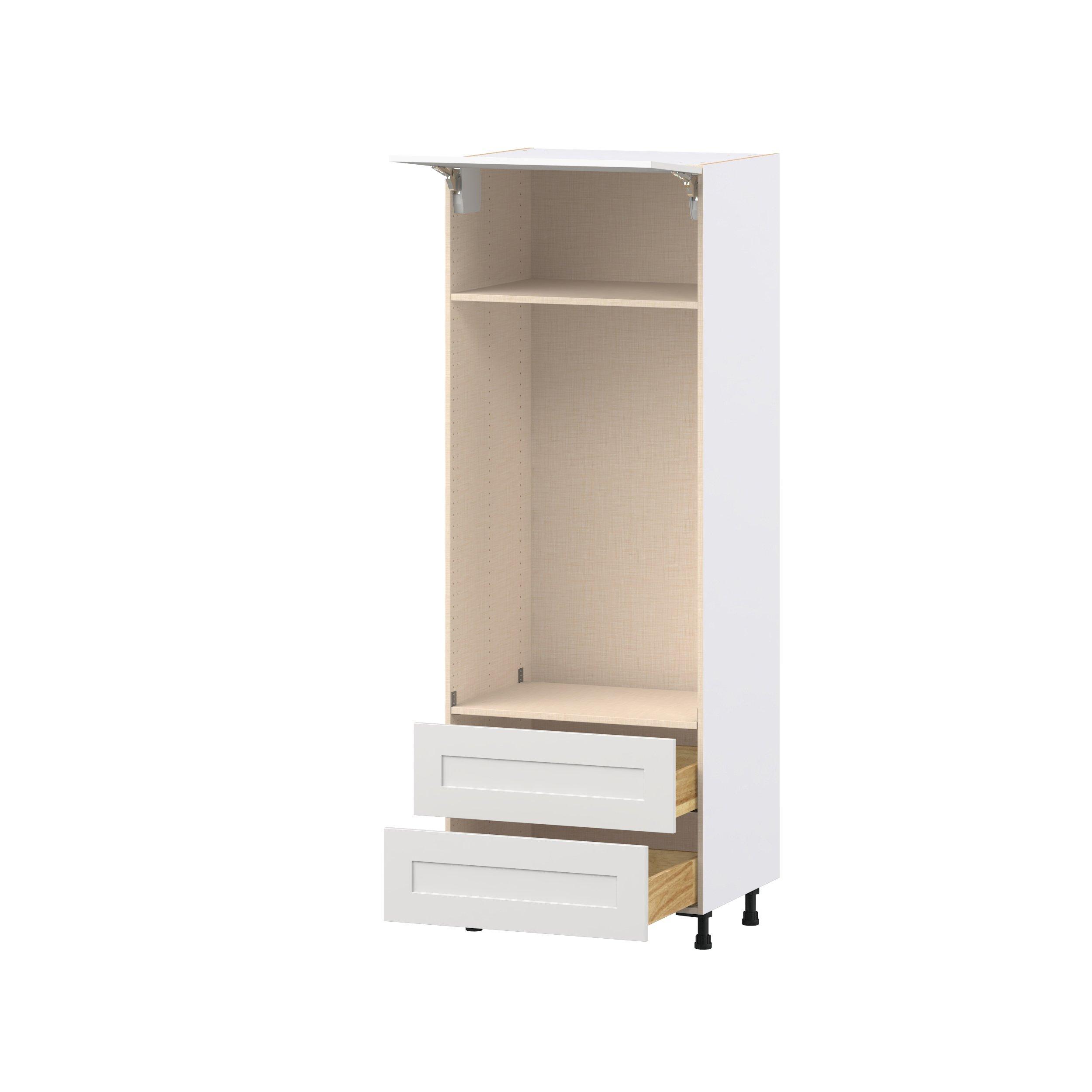 Transform your space with the elegance of Candler wide-rail shaker styles. Both the warm white and slate gray options create a rich transitional backdrop to complement any decor. Crafted from one-piece MDF Studio Design Collection Candler 30 in. Painted Warm White Lift Up Door and Drawer Microwave/Oven Pantry Cabinet is designed to resist hairline cracks while the easy-to-clean finish stands up to stains and moisture. Featuring 5-piece doors and dovetail drawer joints, these cabinets offer durability and elegance. This collection combines style with everyday storage solutions.