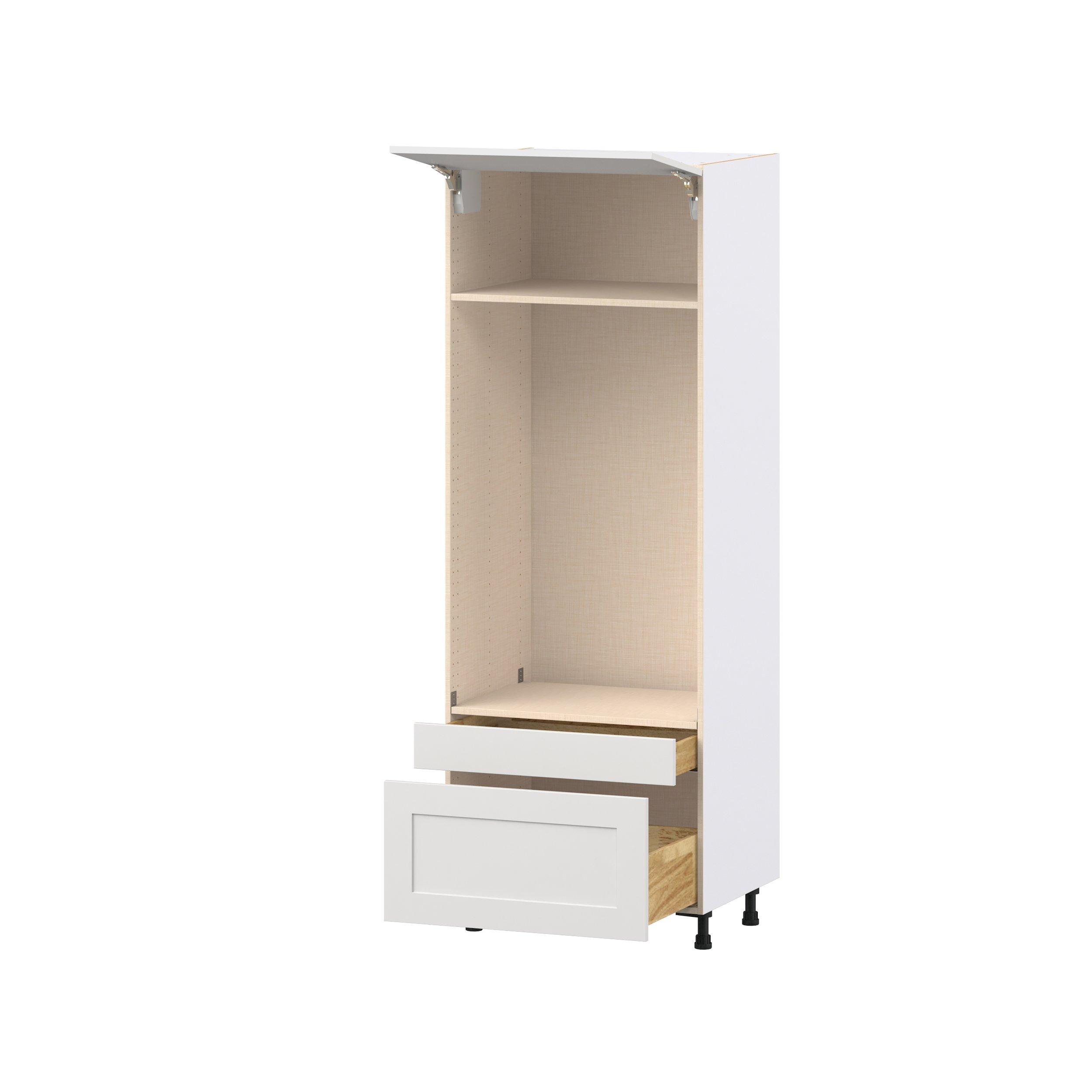 Transform your space with the elegance of Candler wide-rail shaker styles. Both the warm white and slate gray options create a rich transitional backdrop to complement any decor. Crafted from one-piece MDF Studio Design Collection Candler 30 in. Painted Warm White Lift Up Door and Drawer Microwave/Oven Pantry Cabinet is designed to resist hairline cracks while the easy-to-clean finish stands up to stains and moisture. Featuring 5-piece doors and dovetail drawer joints, these cabinets offer durability and elegance. This collection combines style with everyday storage solutions.