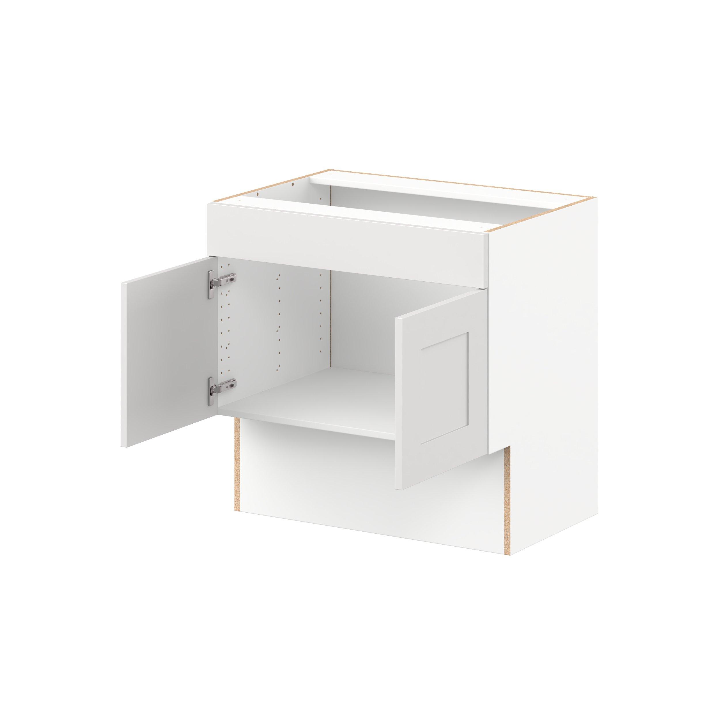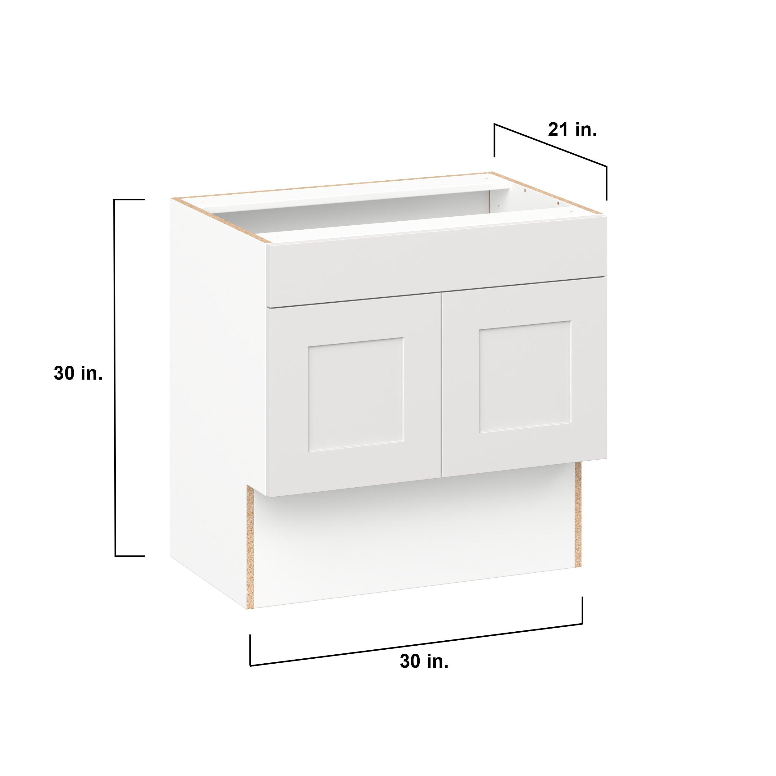 Transform your space with the elegance of Candler wide-rail shaker styles. Both the warm white and slate gray options create a rich transitional backdrop to complement any decor. Crafted from one-piece MDF Studio Design Collection Candler 30 in. Painted Warm White Vanity Sink Base Cabinet with Removable Front - ADA is designed to resist hairline cracks while the easy-to-clean finish stands up to stains and moisture. Featuring 5-piece doors and dovetail drawer joints, these cabinets offer durability and elegance. This collection combines style with everyday storage solutions.