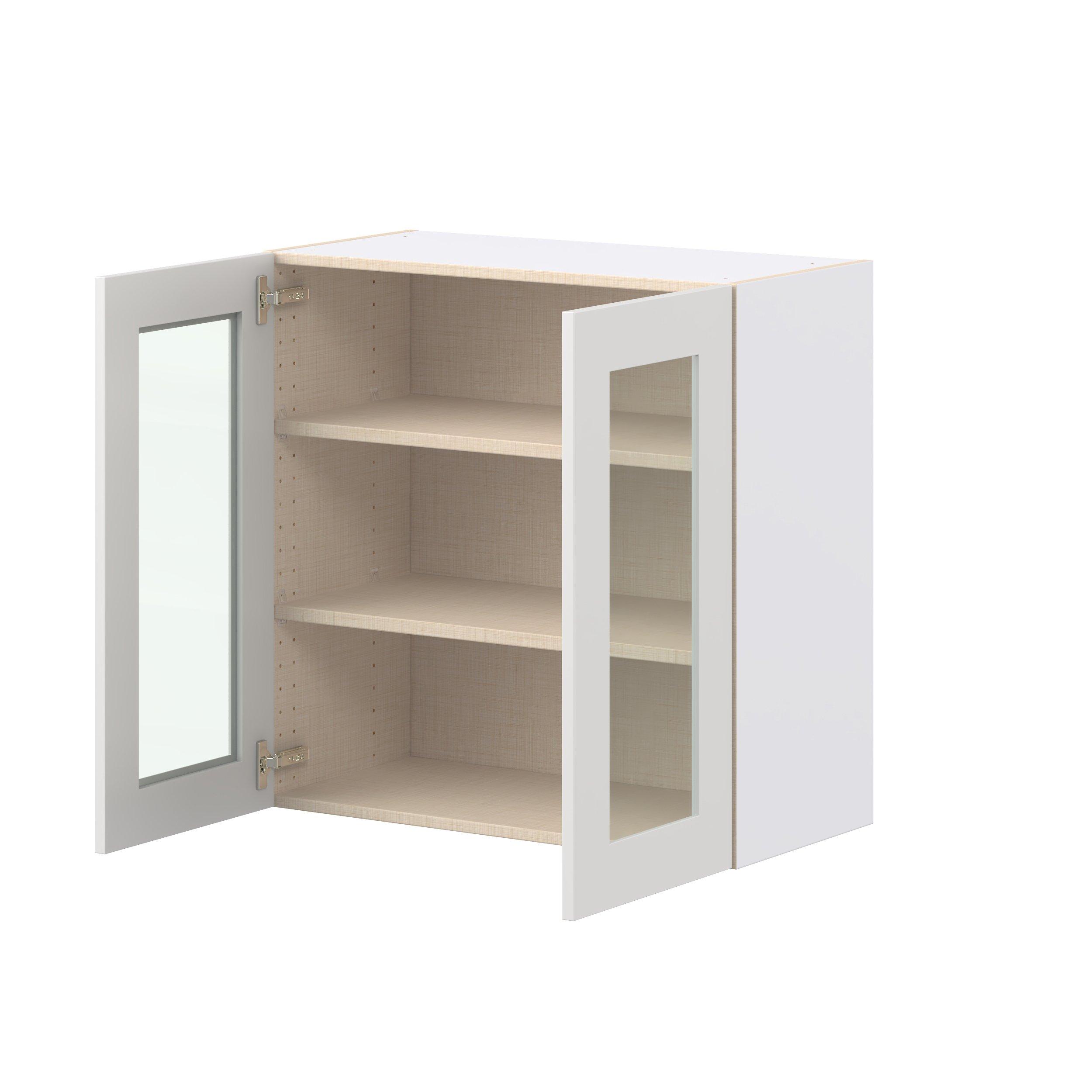 Transform your space with the elegance of Candler wide-rail shaker styles. Both the warm white and slate gray options create a rich transitional backdrop to complement any decor. Crafted from one-piece MDF Studio Design Collection Candler 30 in. Painted Warm White Wall Cabinet with Glass Door is designed to resist hairline cracks while the easy-to-clean finish stands up to stains and moisture. Featuring 5-piece doors and dovetail drawer joints, these cabinets offer durability and elegance. This collection combines style with everyday storage solutions.