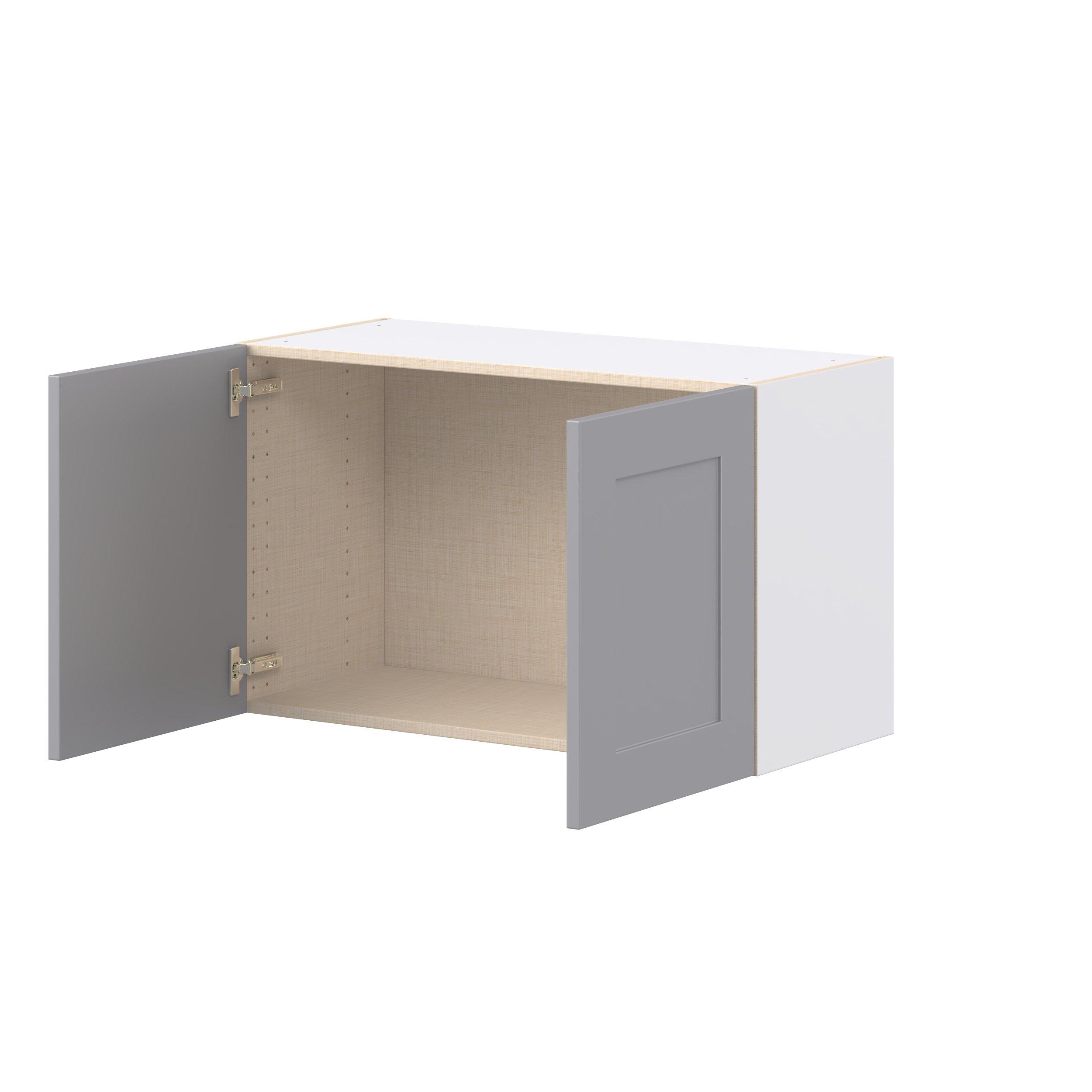 Transform your space with the elegance of Candler wide-rail shaker styles. Both the warm white and slate gray options create a rich transitional backdrop to complement any decor. Crafted from one-piece MDF Studio Design Collection Candler 33 in. Painted Slate Gray Bridge Wall Cabinet is designed to resist hairline cracks while the easy-to-clean finish stands up to stains and moisture. Featuring 5-piece doors and dovetail drawer joints, these cabinets offer durability and elegance. This collection combines style with everyday storage solutions.