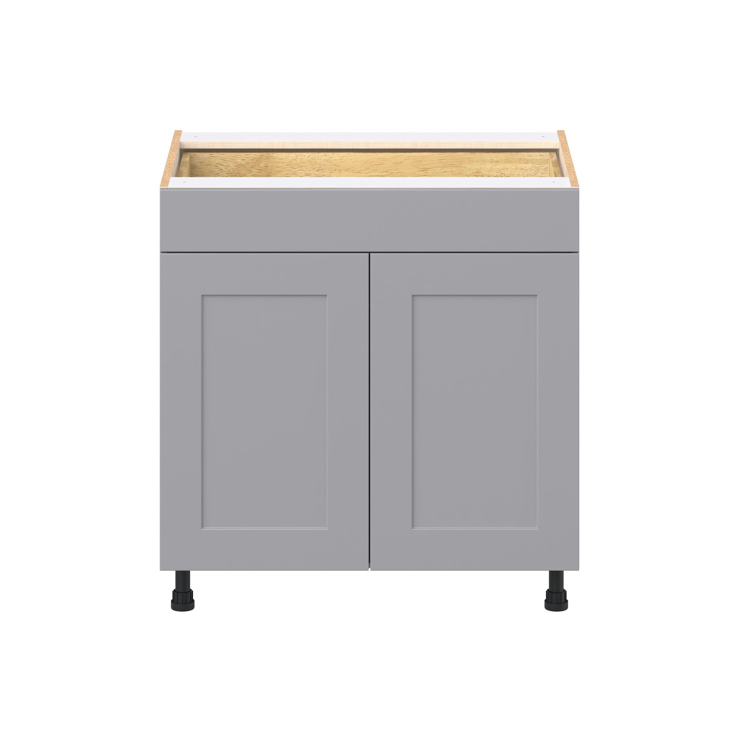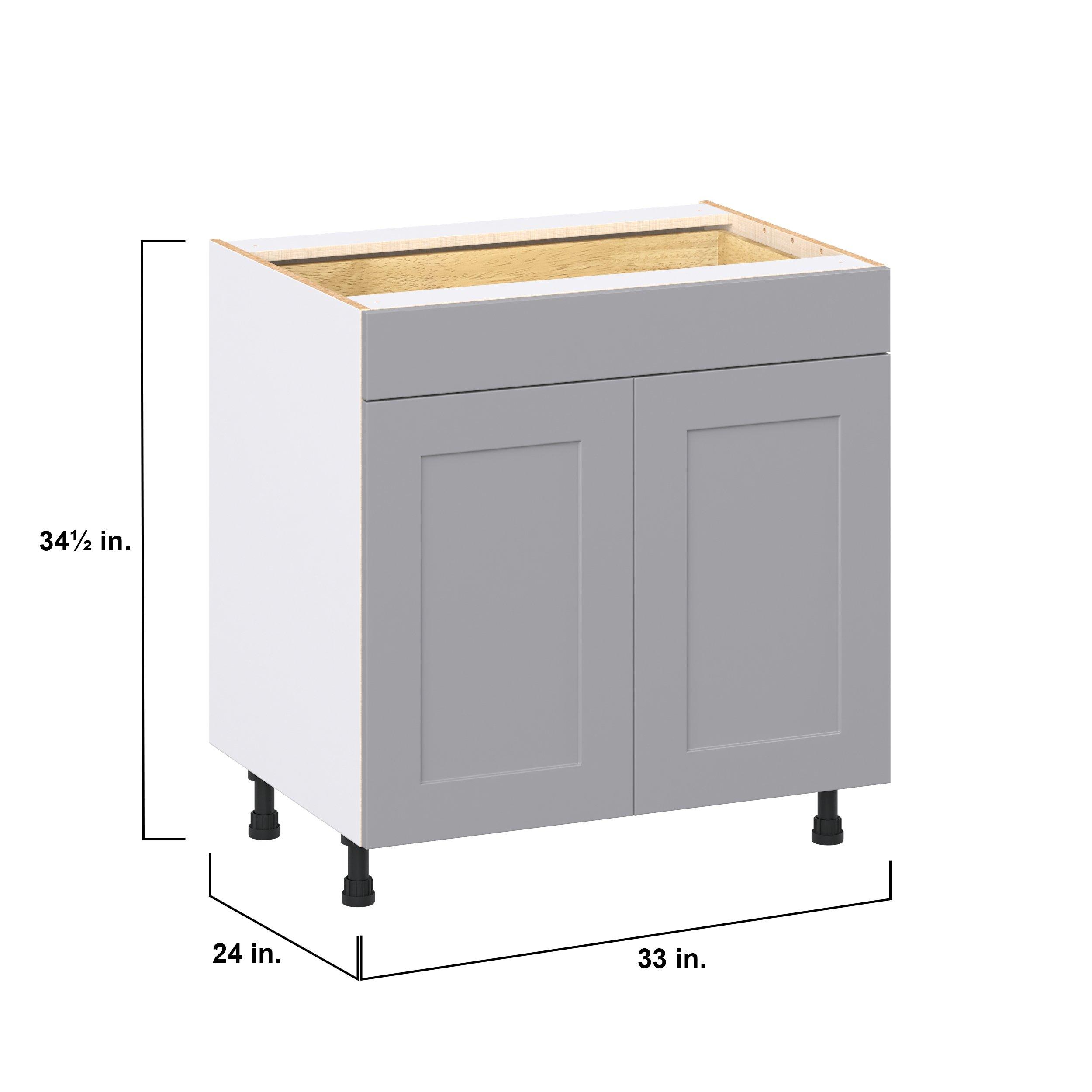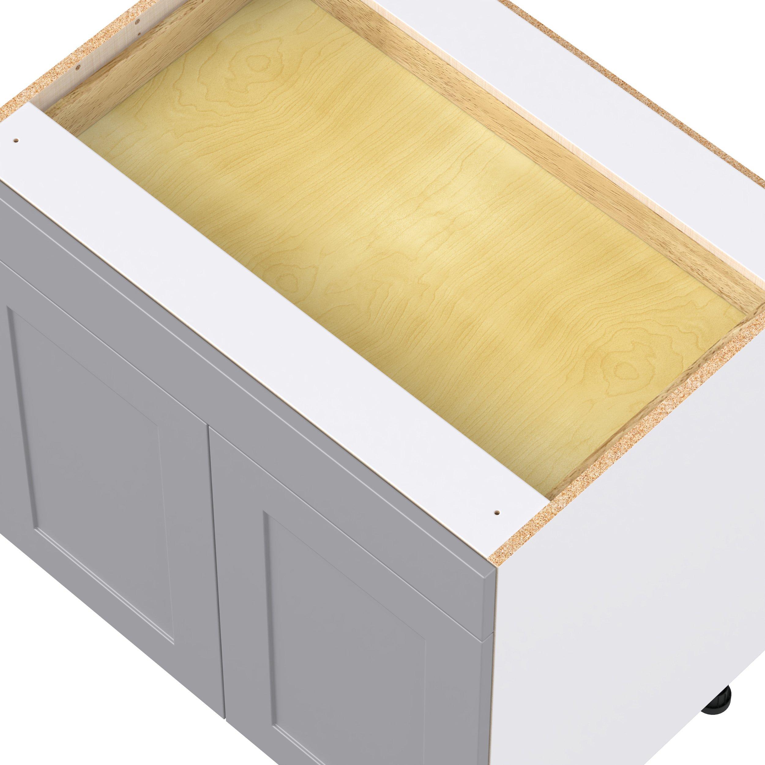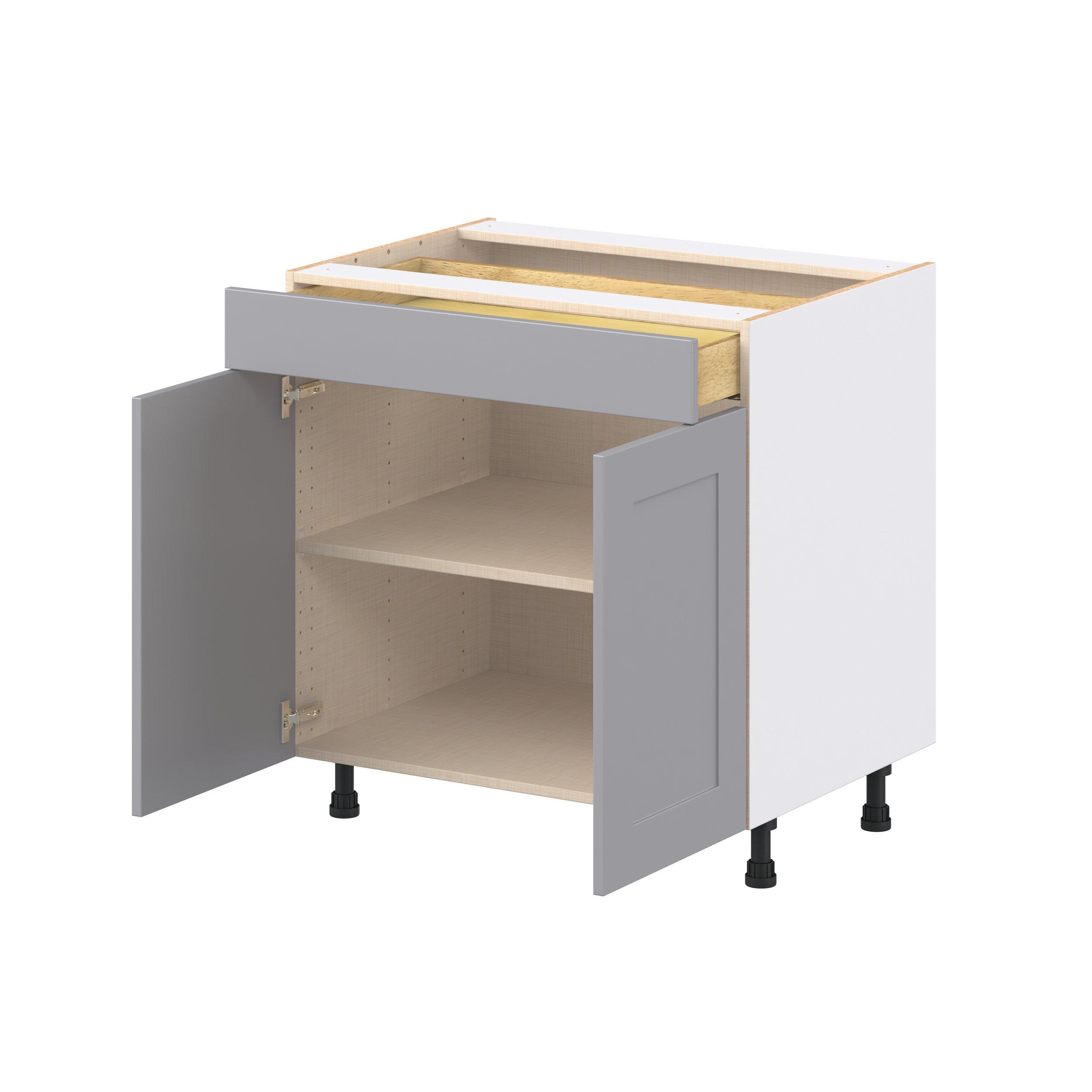 Transform your space with the elegance of Candler wide-rail shaker styles. Both the warm white and slate gray options create a rich transitional backdrop to complement any decor. Crafted from one-piece MDF Studio Design Collection Candler 33 in. Painted Slate Gray Door and Drawer Base Cabinet is designed to resist hairline cracks while the easy-to-clean finish stands up to stains and moisture. Featuring 5-piece doors and dovetail drawer joints, these cabinets offer durability and elegance. This collection combines style with everyday storage solutions.