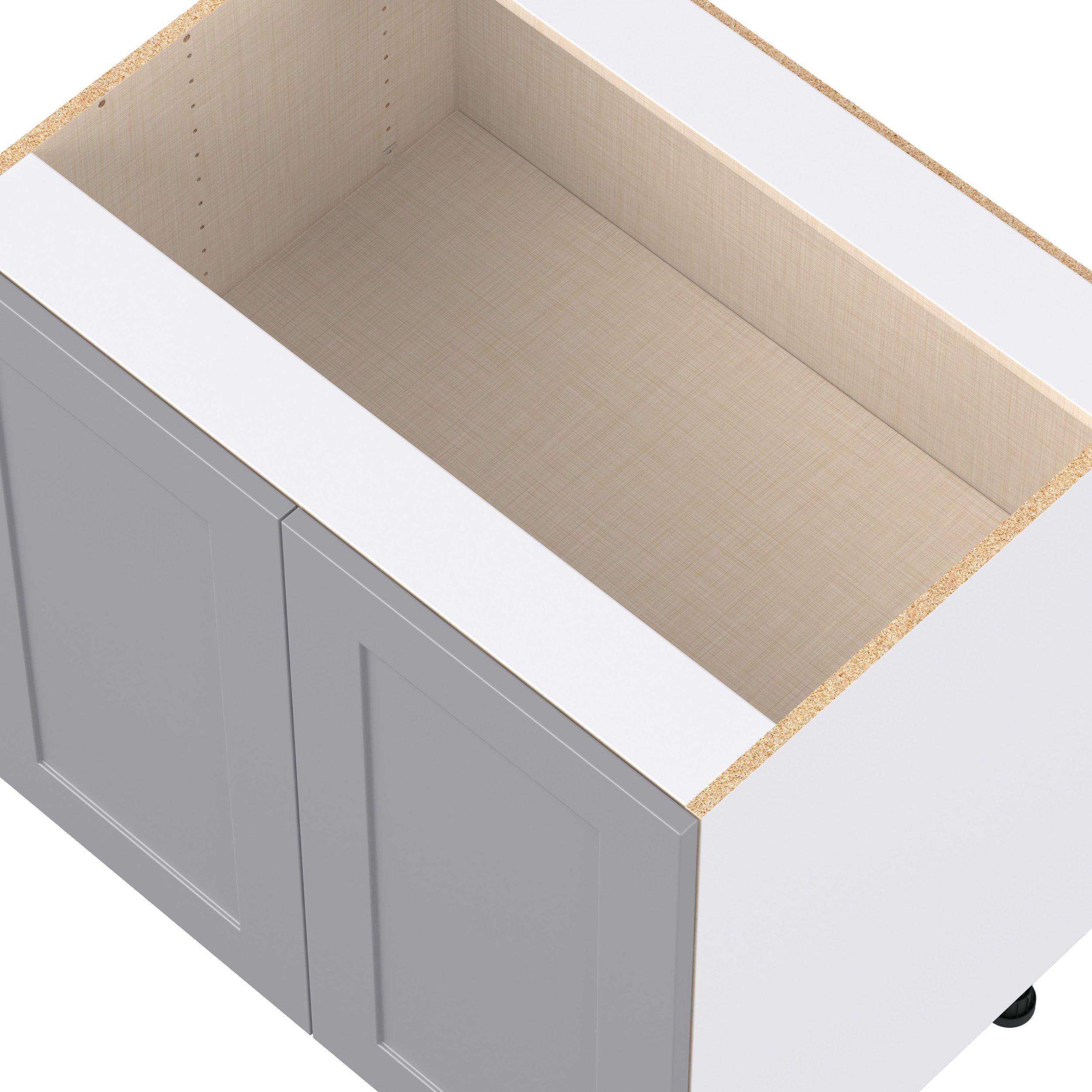 Transform your space with the elegance of Candler wide-rail shaker styles. Both the warm white and slate gray options create a rich transitional backdrop to complement any decor. Crafted from one-piece MDF Studio Design Collection Candler 33 in. Painted Slate Gray Door Base Cabinet is designed to resist hairline cracks while the easy-to-clean finish stands up to stains and moisture. Featuring 5-piece doors and dovetail drawer joints, these cabinets offer durability and elegance. This collection combines style with everyday storage solutions.
