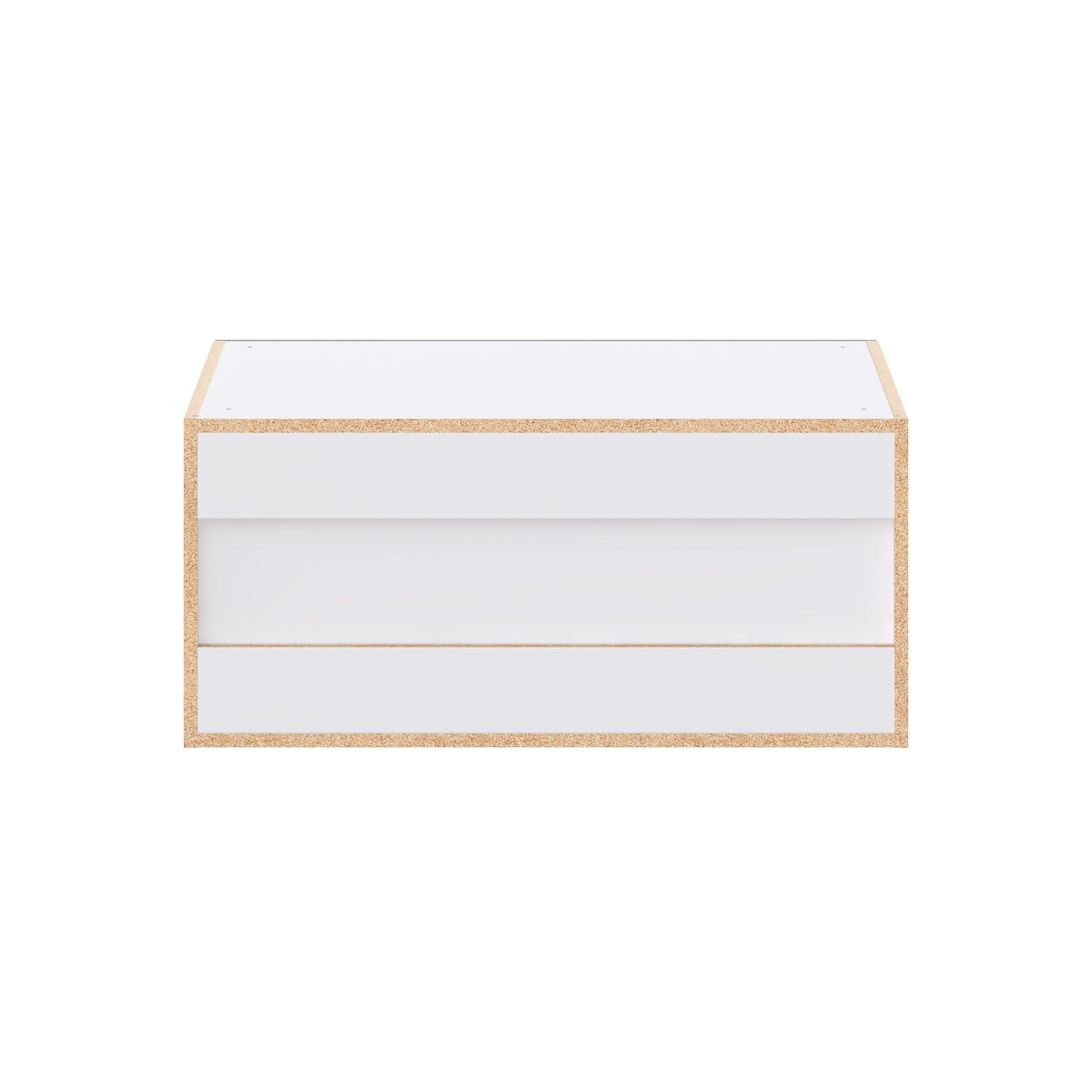 - Frameless cabinet with full-access construction to provide a wider opening.