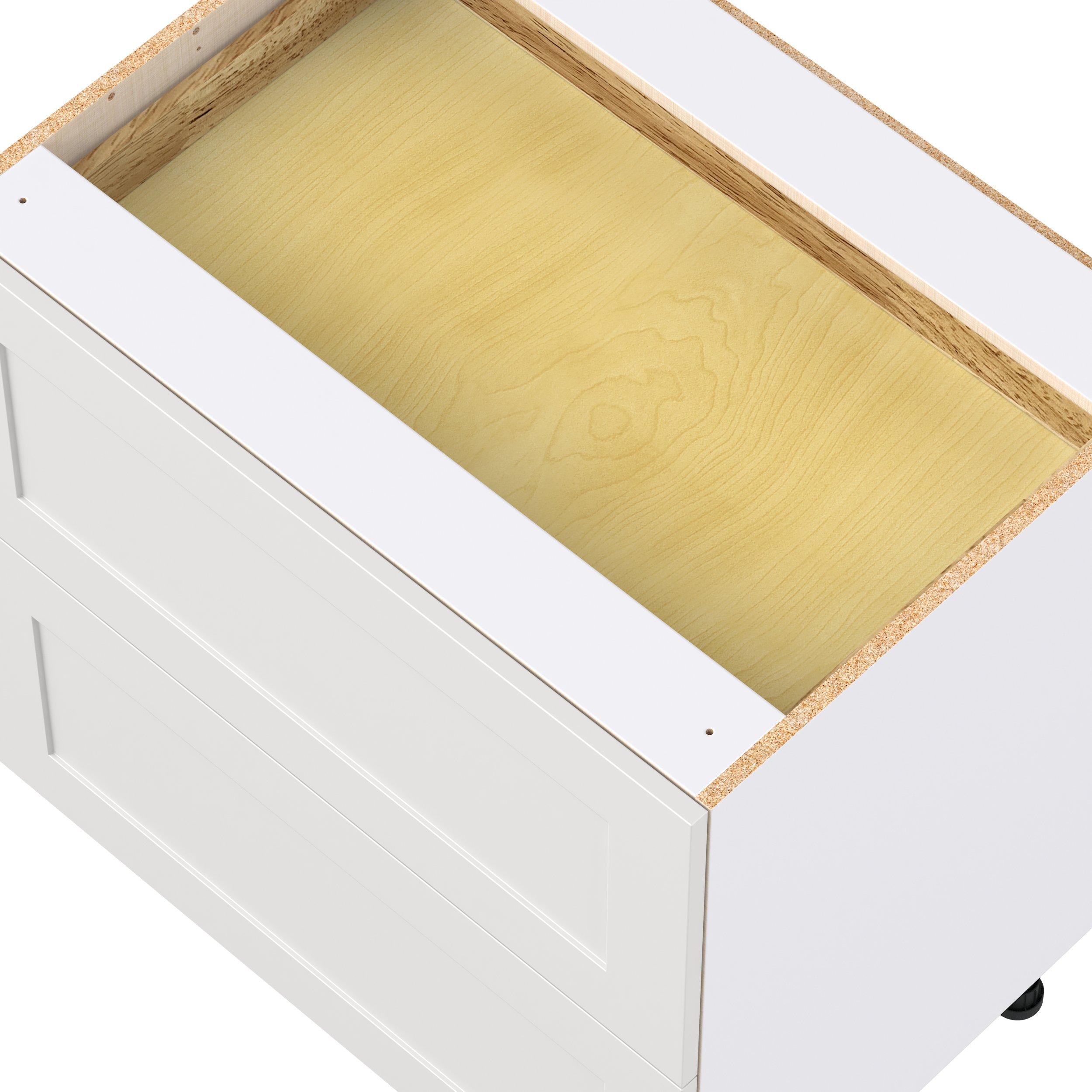 Transform your space with the elegance of Candler wide-rail shaker styles. Both the warm white and slate gray options create a rich transitional backdrop to complement any decor. Crafted from one-piece MDF Studio Design Collection Candler 33 in. Painted Warm White Base Cabinet with Inner Pull-Out Drawer is designed to resist hairline cracks while the easy-to-clean finish stands up to stains and moisture. Featuring 5-piece doors and dovetail drawer joints, these cabinets offer durability and elegance. This collection combines style with everyday storage solutions.