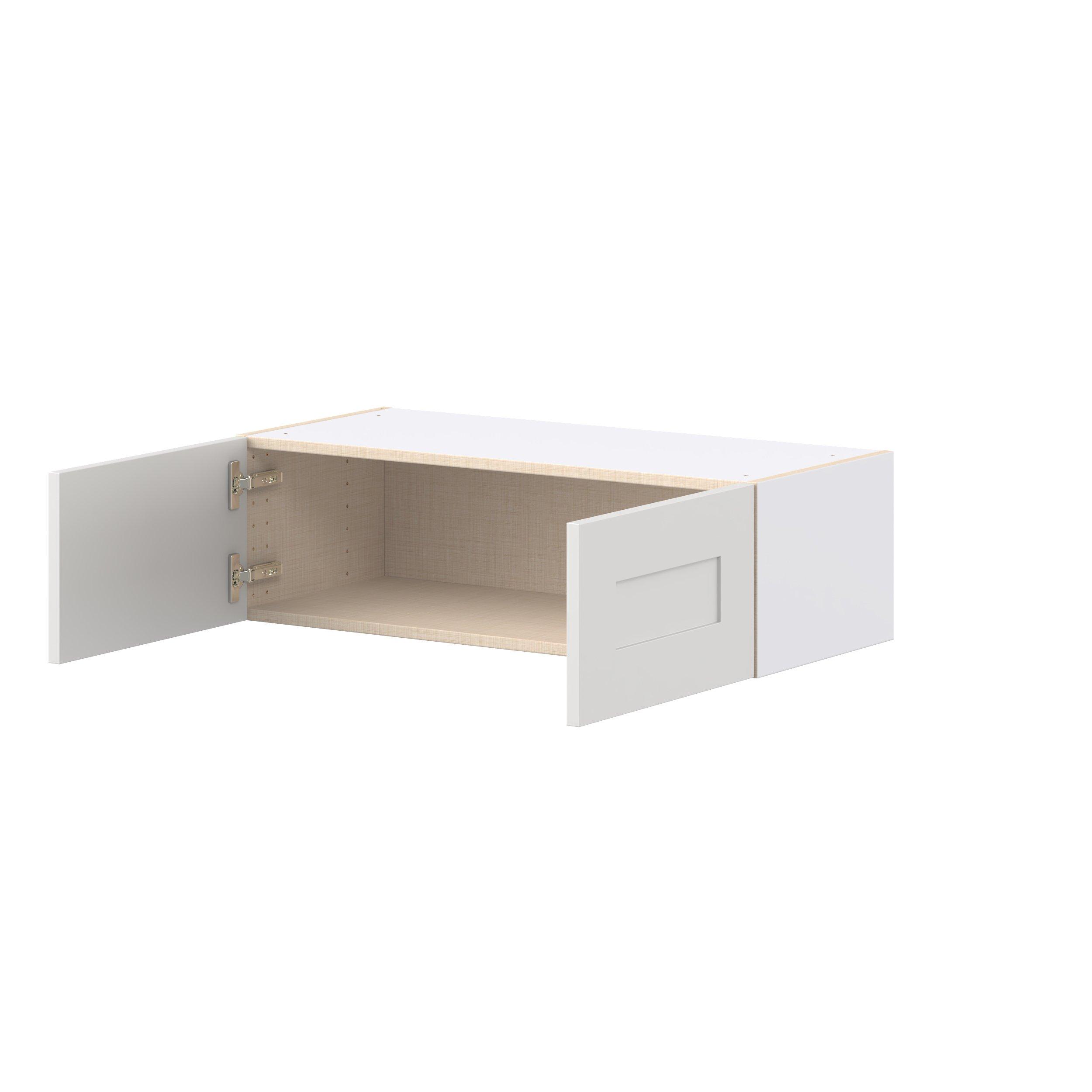 Transform your space with the elegance of Candler wide-rail shaker styles. Both the warm white and slate gray options create a rich transitional backdrop to complement any decor. Crafted from one-piece MDF Studio Design Collection Candler 33 in. Painted Warm White Bridge Wall Cabinet is designed to resist hairline cracks while the easy-to-clean finish stands up to stains and moisture. Featuring 5-piece doors and dovetail drawer joints, these cabinets offer durability and elegance. This collection combines style with everyday storage solutions.