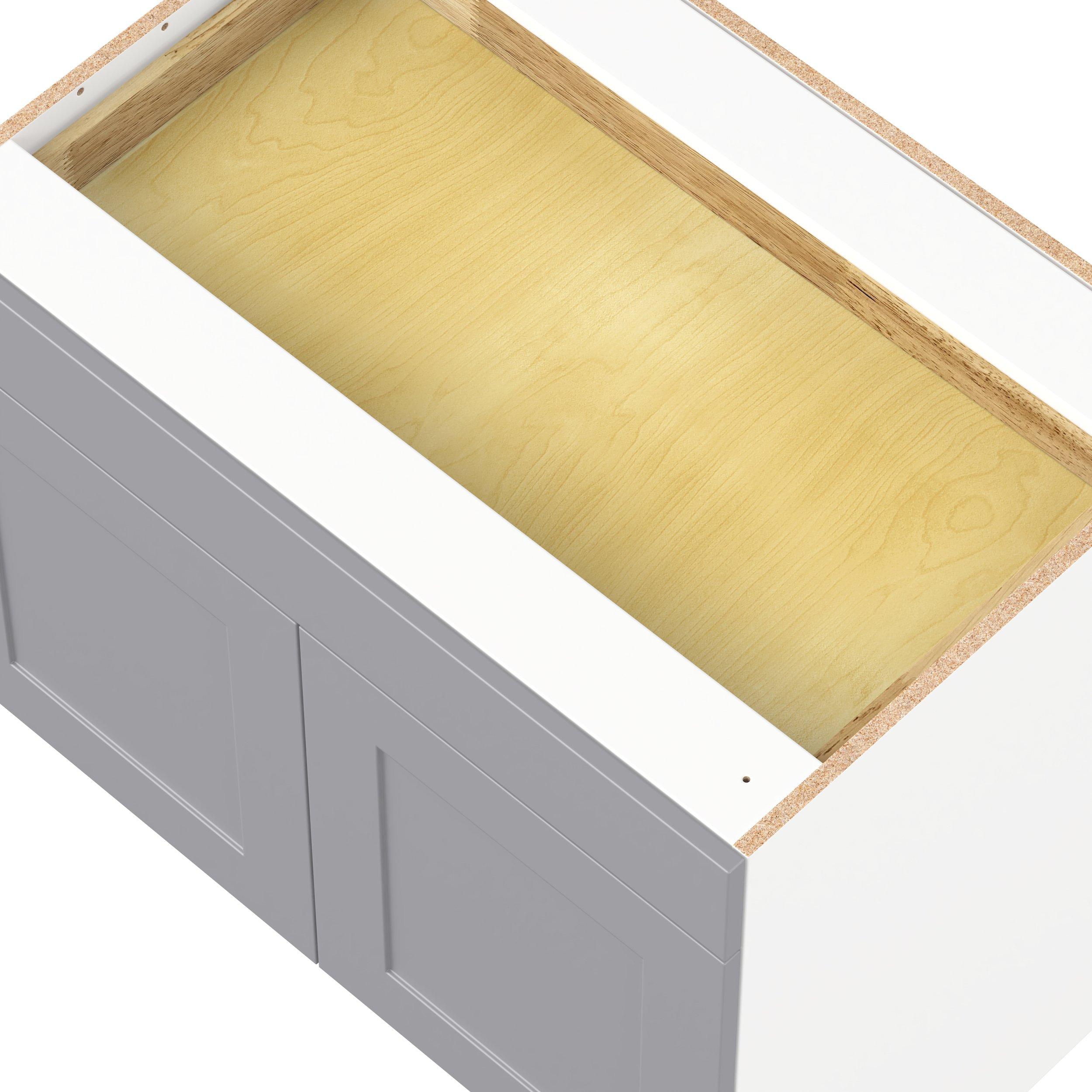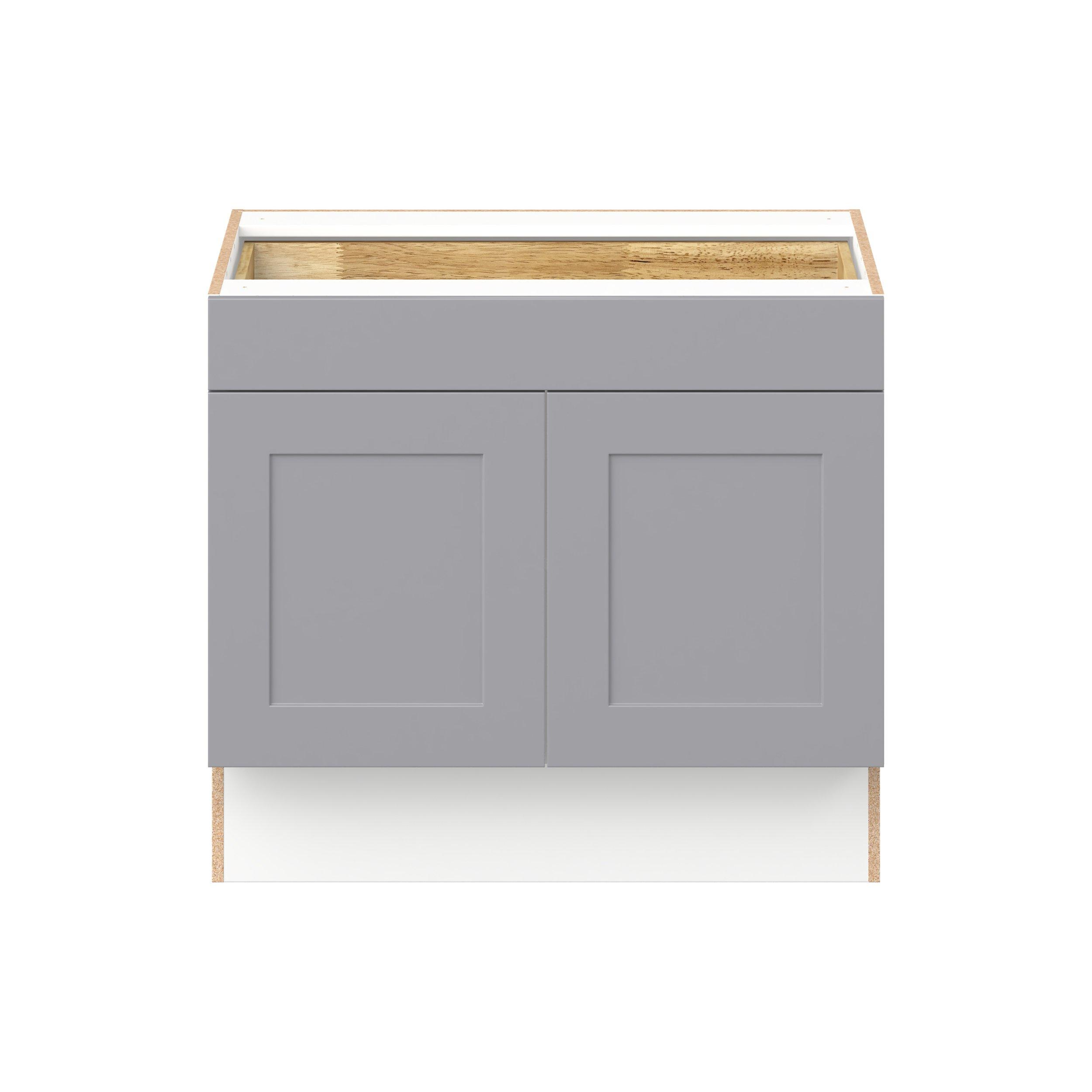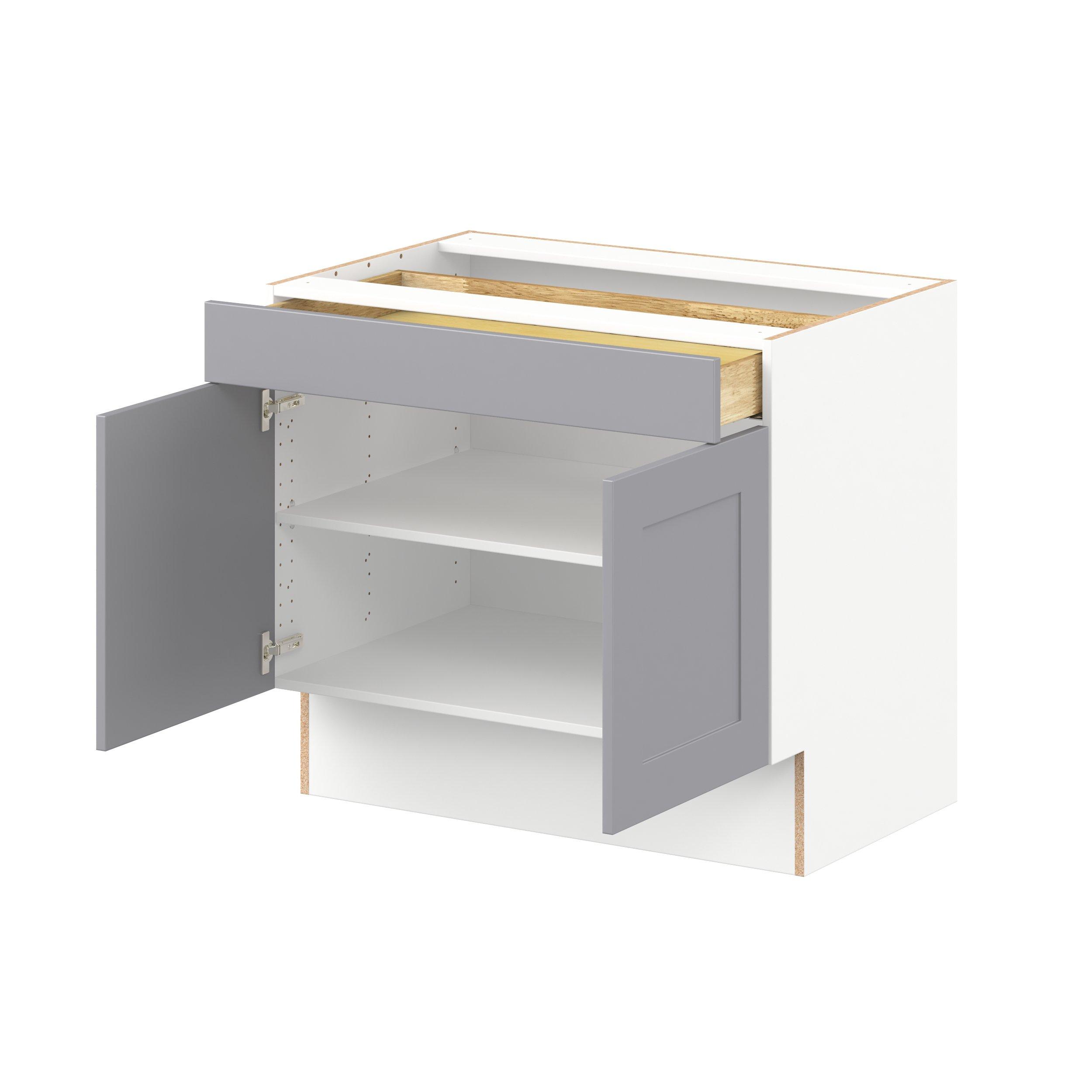 Transform your space with the elegance of Candler wide-rail shaker styles. Both the warm white and slate gray options create a rich transitional backdrop to complement any decor. Crafted from one-piece MDF Studio Design Collection Candler 36 in. Painted Slate Gray Door and Drawer Base Cabinet - ADA is designed to resist hairline cracks while the easy-to-clean finish stands up to stains and moisture. Featuring 5-piece doors and dovetail drawer joints, these cabinets offer durability and elegance. This collection combines style with everyday storage solutions.