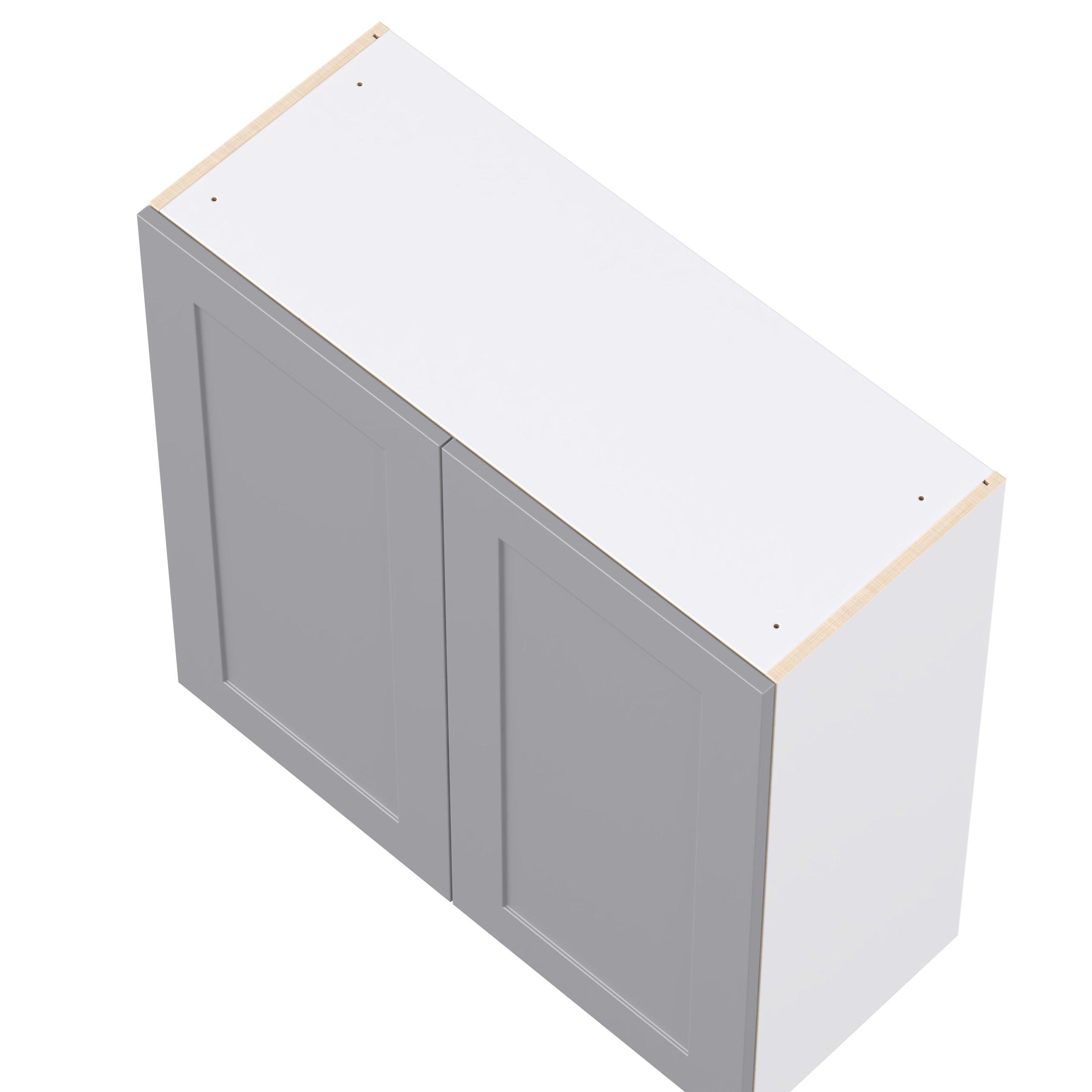 Transform your space with the elegance of Candler wide-rail shaker styles. Both the warm white and slate gray options create a rich transitional backdrop to complement any decor. Crafted from one-piece MDF Studio Design Collection Candler 36 in. Painted Slate Gray Door Wall Cabinet is designed to resist hairline cracks while the easy-to-clean finish stands up to stains and moisture. Featuring 5-piece doors and dovetail drawer joints, these cabinets offer durability and elegance. This collection combines style with everyday storage solutions.