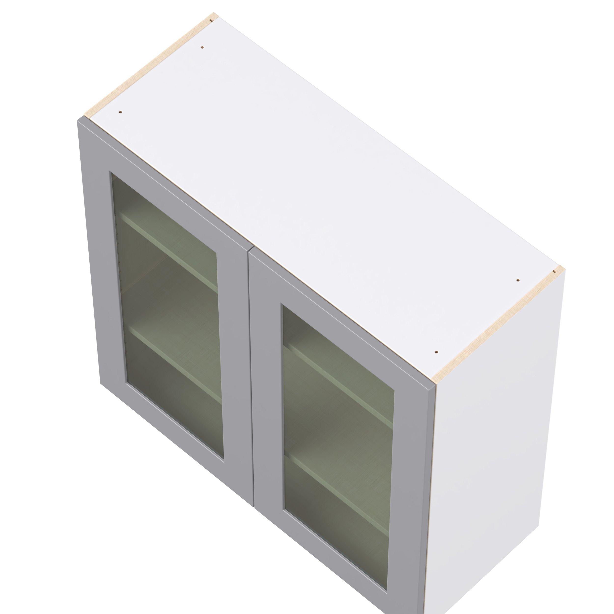 Transform your space with the elegance of Candler wide-rail shaker styles. Both the warm white and slate gray options create a rich transitional backdrop to complement any decor. Crafted from one-piece MDF Studio Design Collection Candler 36 in. Painted Slate Gray Wall Cabinet with Glass Door is designed to resist hairline cracks while the easy-to-clean finish stands up to stains and moisture. Featuring 5-piece doors and dovetail drawer joints, these cabinets offer durability and elegance. This collection combines style with everyday storage solutions.