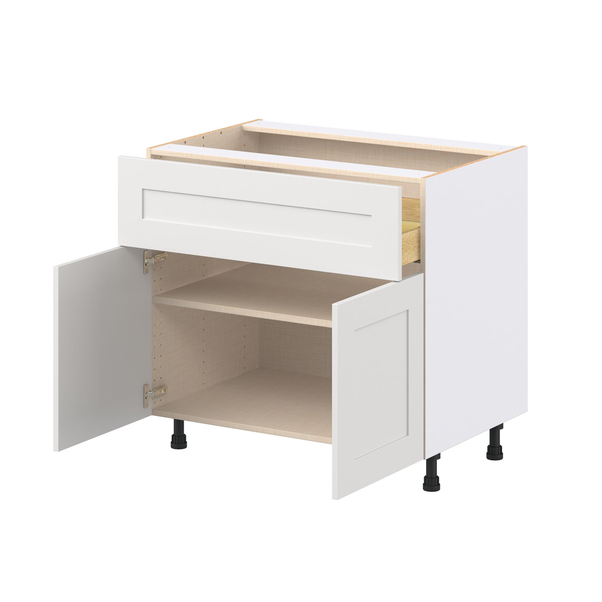 Transform your space with the elegance of Candler wide-rail shaker styles. Both the warm white and slate gray options create a rich transitional backdrop to complement any decor. Crafted from one-piece MDF Studio Design Collection Candler 36 in. Painted Warm White Cooktop Base Cabinet is designed to resist hairline cracks while the easy-to-clean finish stands up to stains and moisture. Featuring 5-piece doors and dovetail drawer joints, these cabinets offer durability and elegance. This collection combines style with everyday storage solutions.