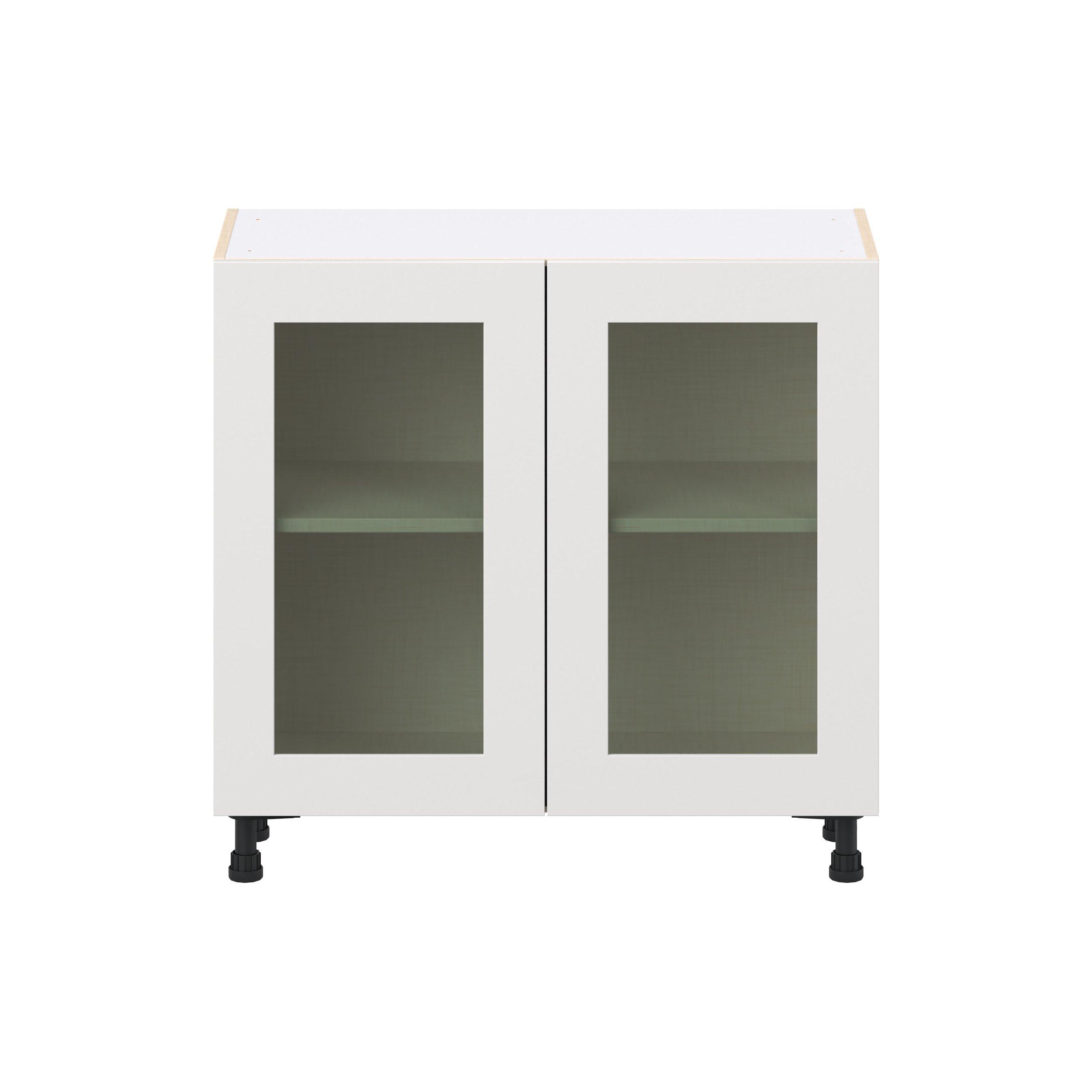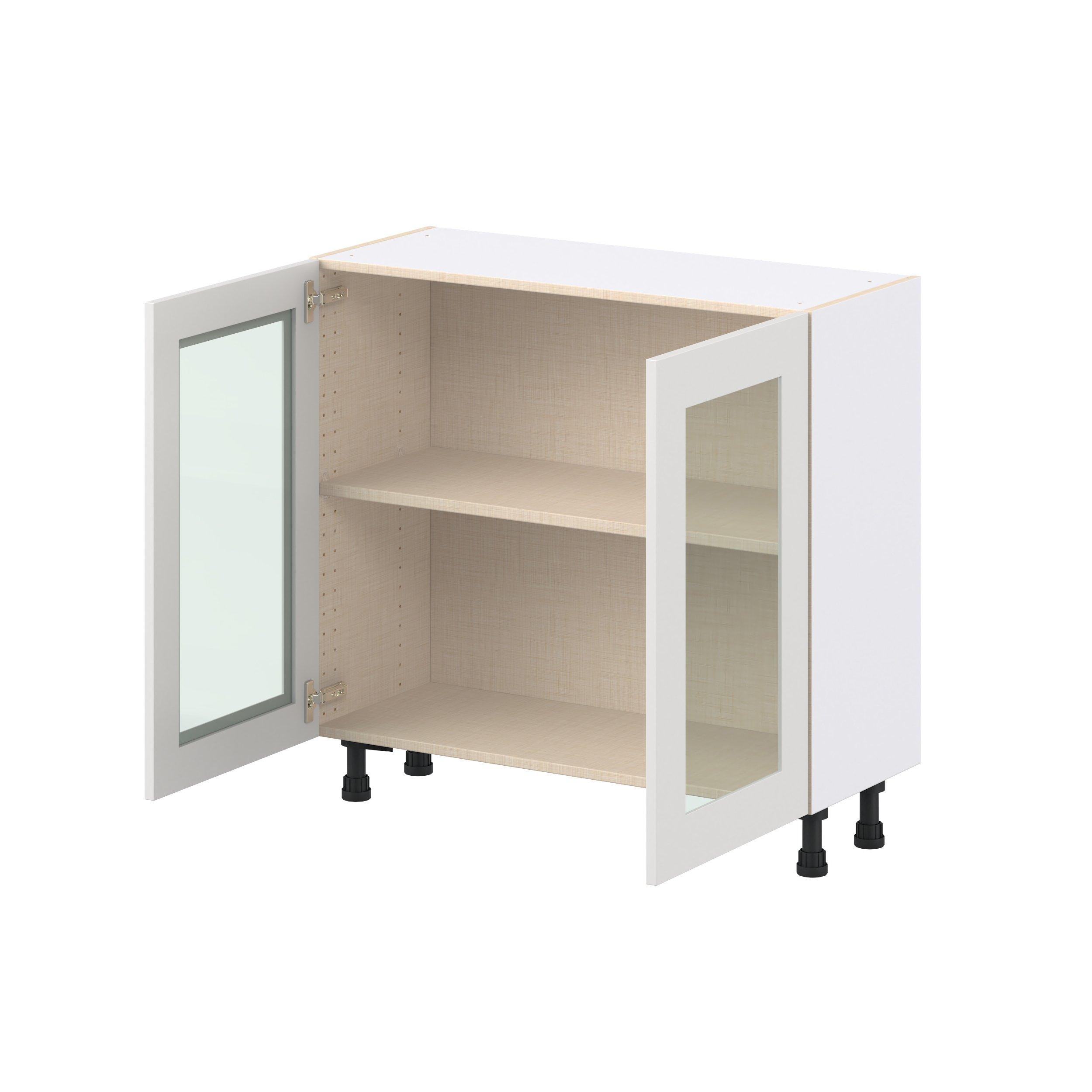 Candler 36 in. Painted Warm White Shallow Base Cabinet with Glass Door