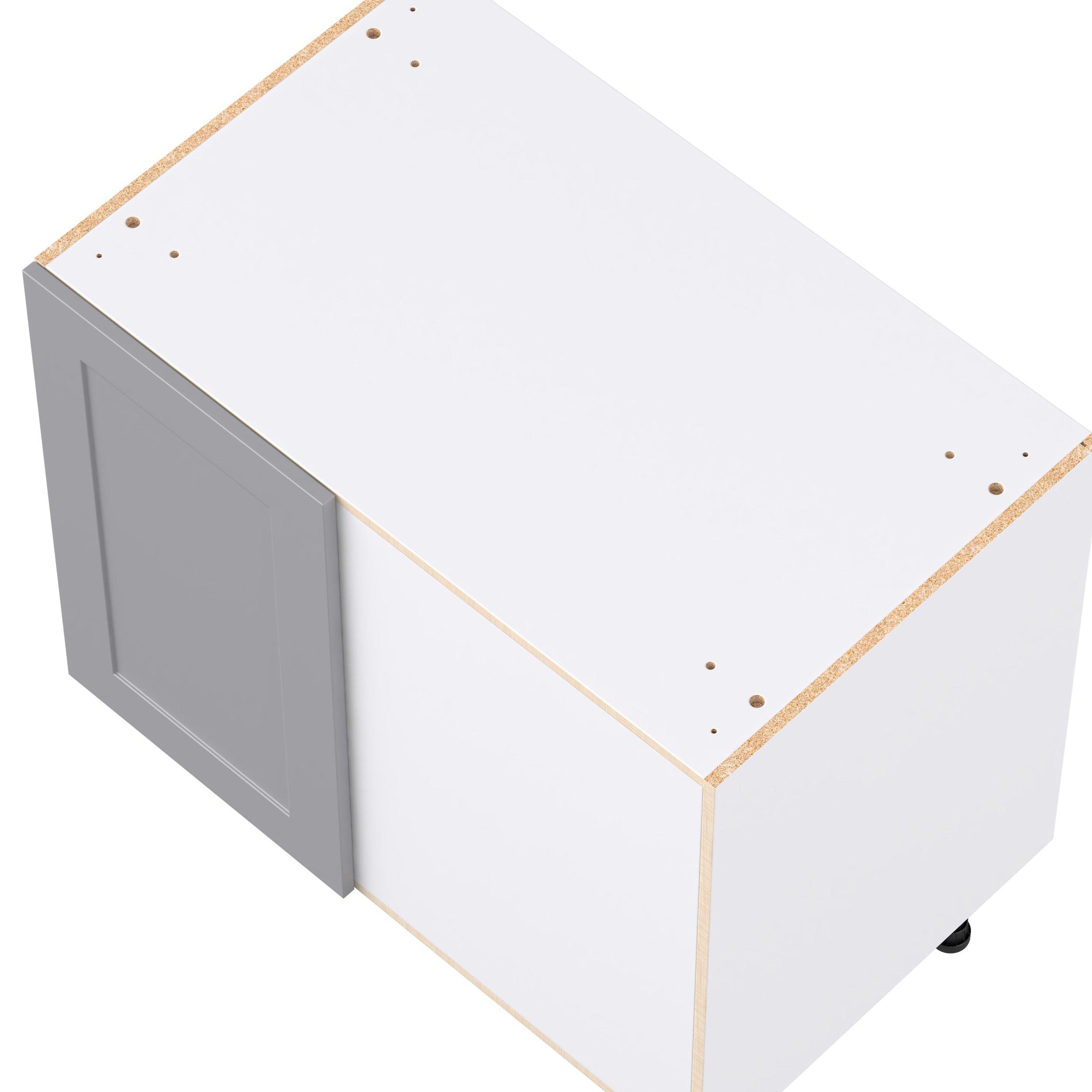 Transform your space with the elegance of Candler wide-rail shaker styles. Both the warm white and slate gray options create a rich transitional backdrop to complement any decor. Crafted from one-piece MDF Studio Design Collection Candler 39 in. Painted Slate Gray Swing Out Blind Corner Base Cabinet is designed to resist hairline cracks while the easy-to-clean finish stands up to stains and moisture. Featuring 5-piece doors and dovetail drawer joints, these cabinets offer durability and elegance. This collection combines style with everyday storage solutions.