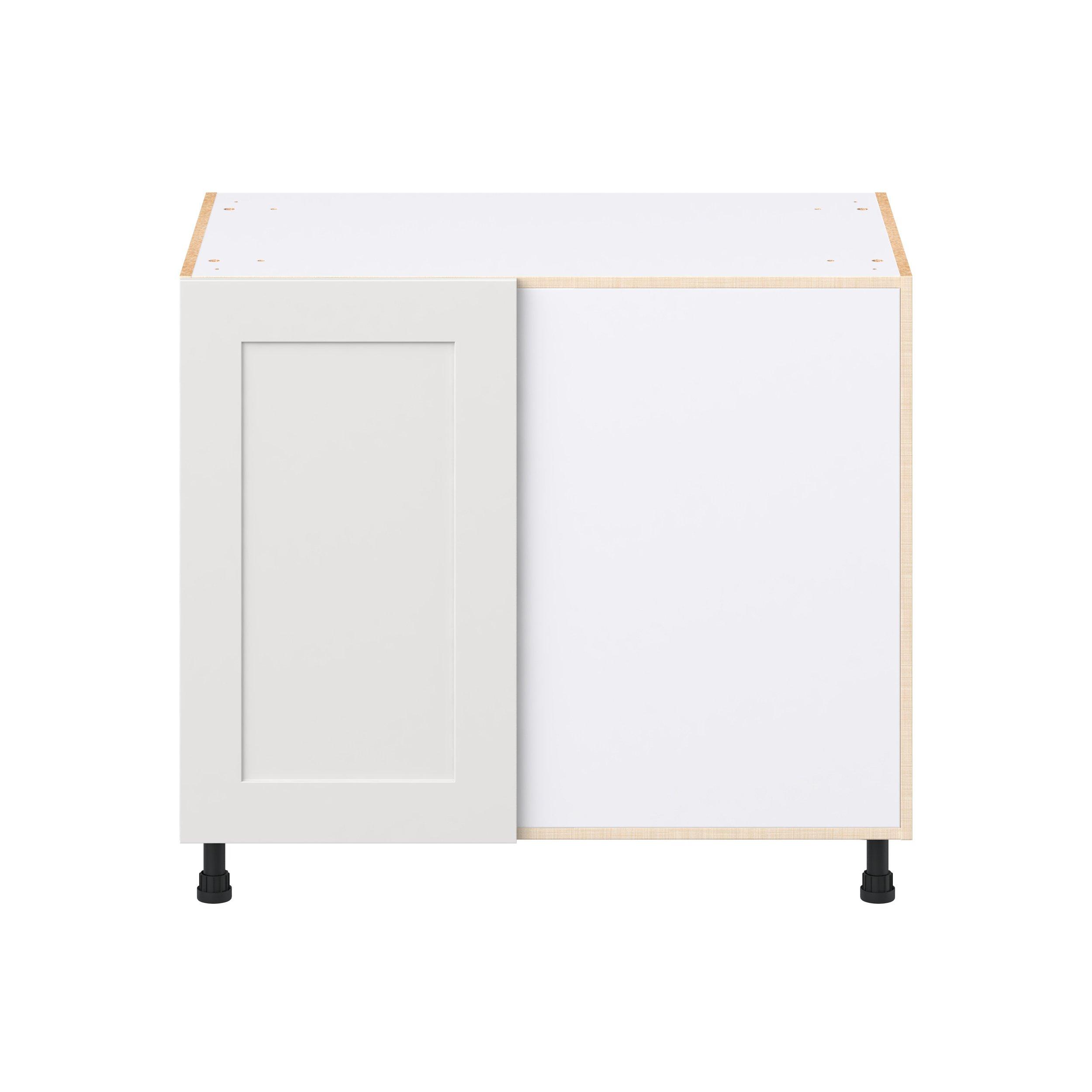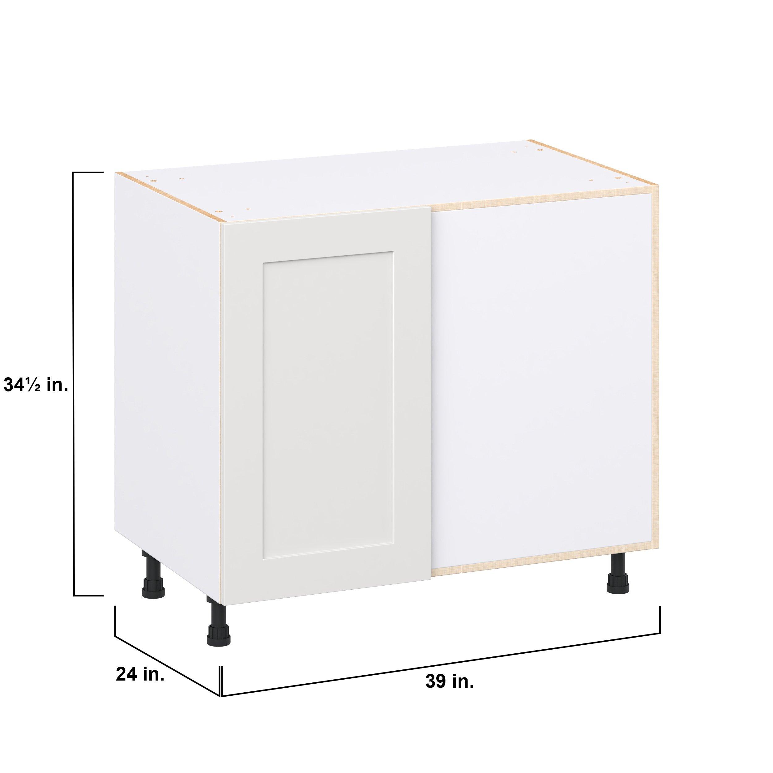 Transform your space with the elegance of Candler wide-rail shaker styles. Both the warm white and slate gray options create a rich transitional backdrop to complement any decor. Crafted from one-piece MDF Studio Design Collection Candler 39 in. Painted Warm White Lemans Swing Out Blind Corner Base Cabinet is designed to resist hairline cracks while the easy-to-clean finish stands up to stains and moisture. Featuring 5-piece doors and dovetail drawer joints, these cabinets offer durability and elegance. This collection combines style with everyday storage solutions.