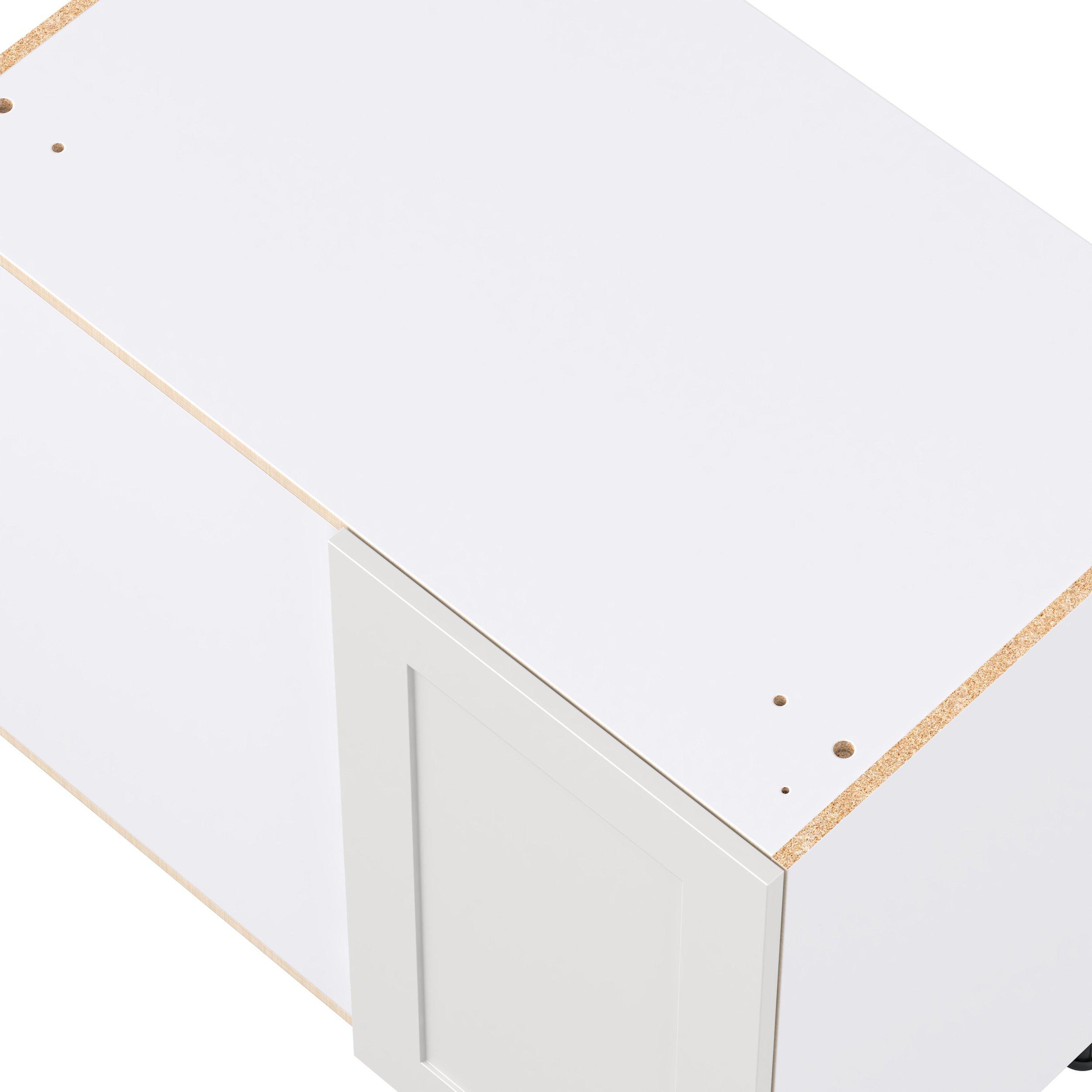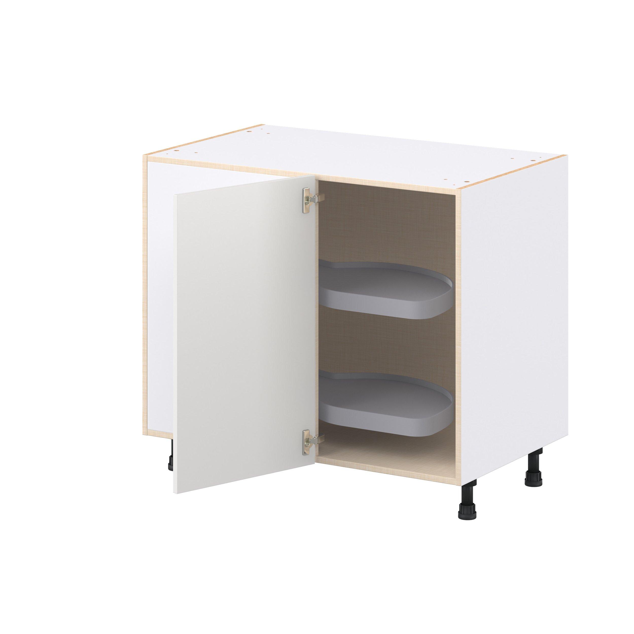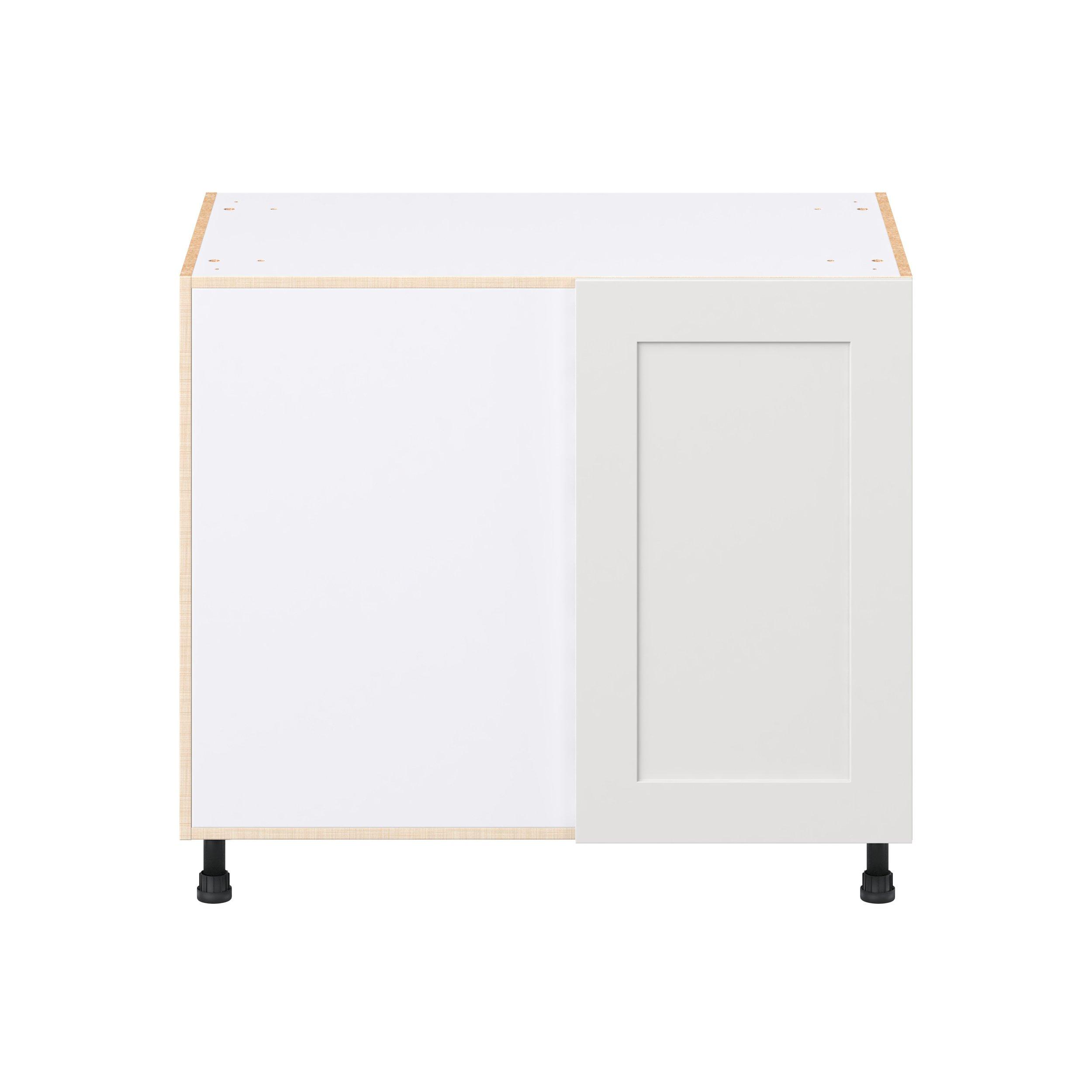 Transform your space with the elegance of Candler wide-rail shaker styles. Both the warm white and slate gray options create a rich transitional backdrop to complement any decor. Crafted from one-piece MDF Studio Design Collection Candler 39 in. Painted Warm White Lemans Swing Out Blind Corner Base Cabinet is designed to resist hairline cracks while the easy-to-clean finish stands up to stains and moisture. Featuring 5-piece doors and dovetail drawer joints, these cabinets offer durability and elegance. This collection combines style with everyday storage solutions.