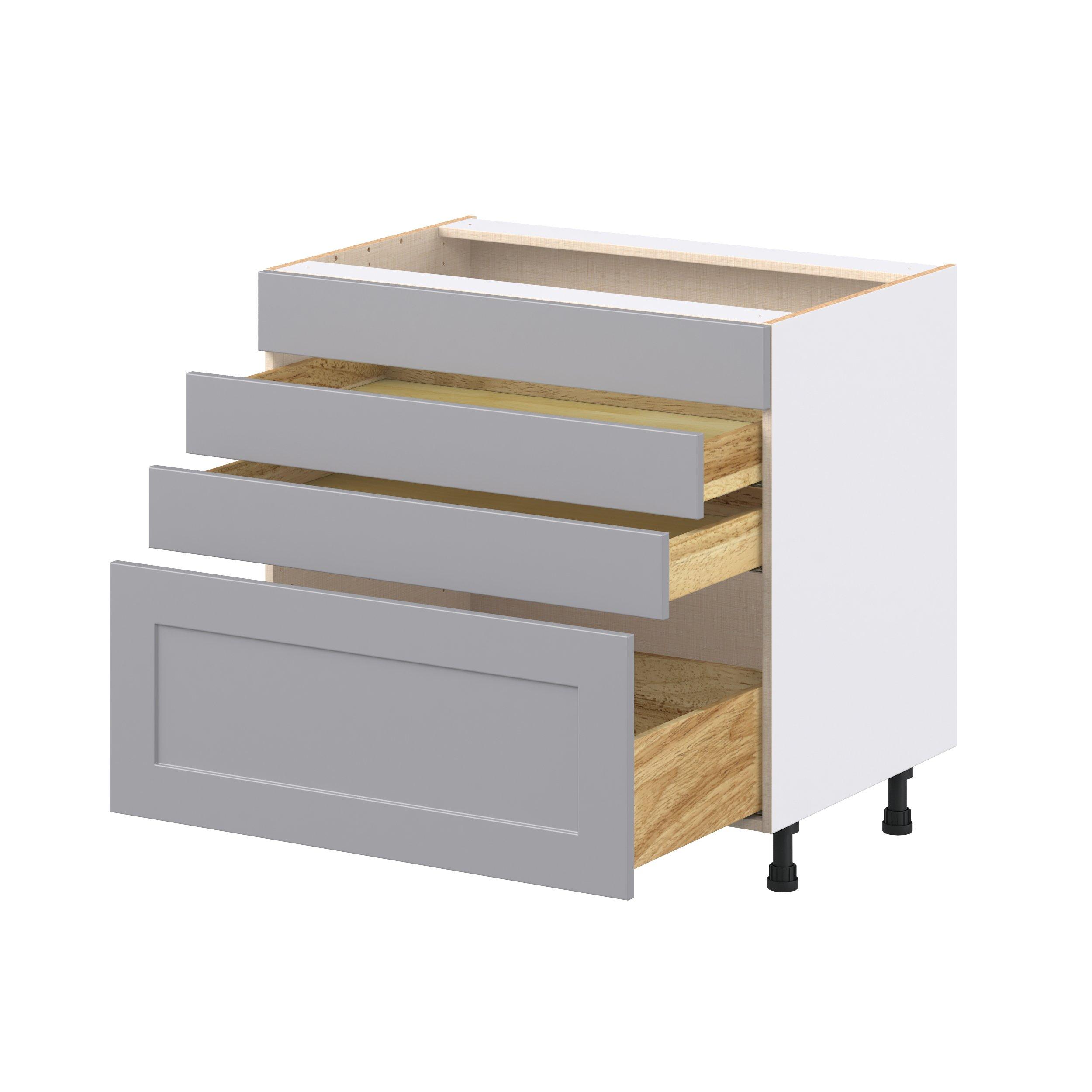 Transform your space with the elegance of Candler wide-rail shaker styles. Both the warm white and slate gray options create a rich transitional backdrop to complement any decor. Crafted from one-piece MDF Studio Design Collection Candler 36 in. Painted Slate Gray Cooktop Base Cabinet is designed to resist hairline cracks while the easy-to-clean finish stands up to stains and moisture. Featuring 5-piece doors and dovetail drawer joints, these cabinets offer durability and elegance. This collection combines style with everyday storage solutions.