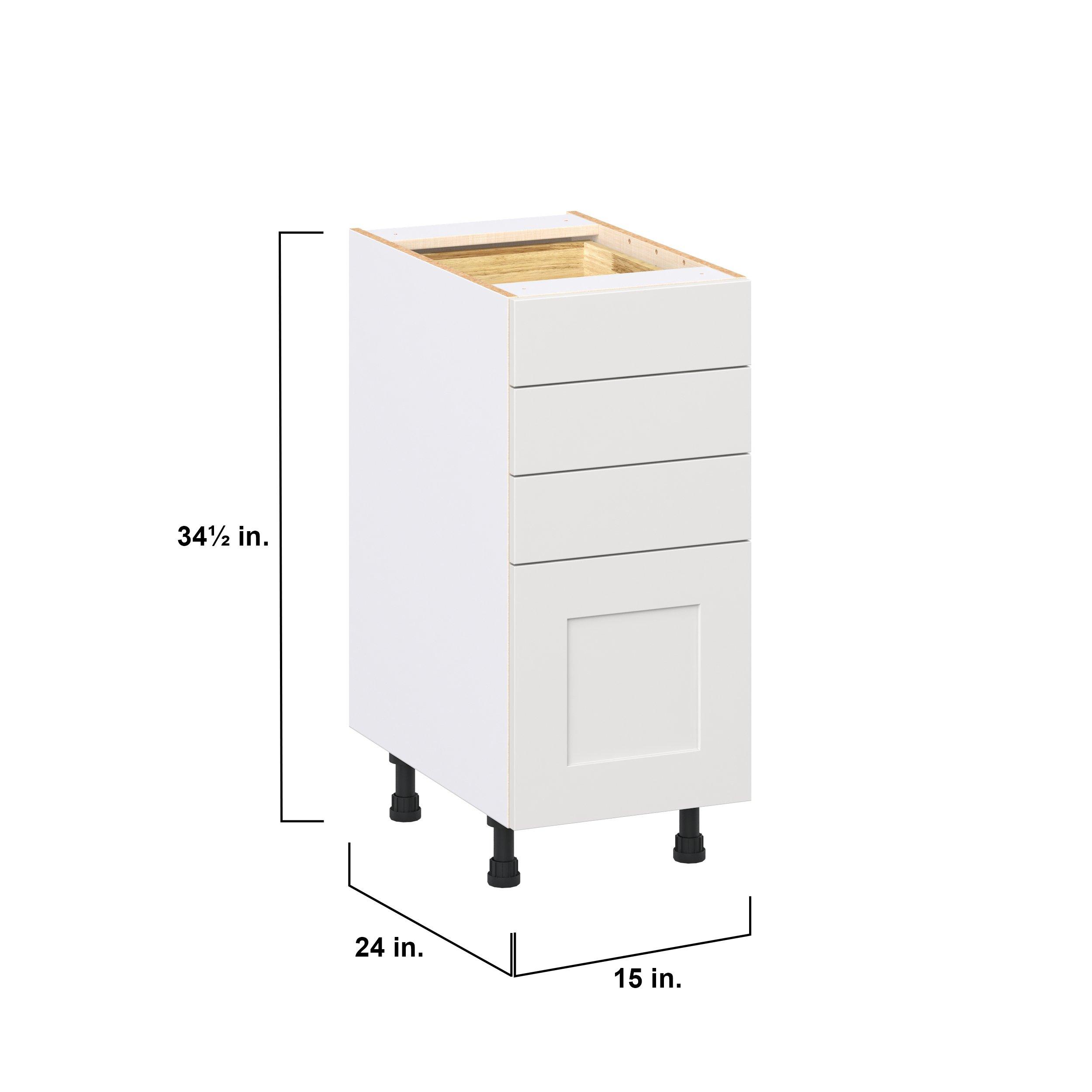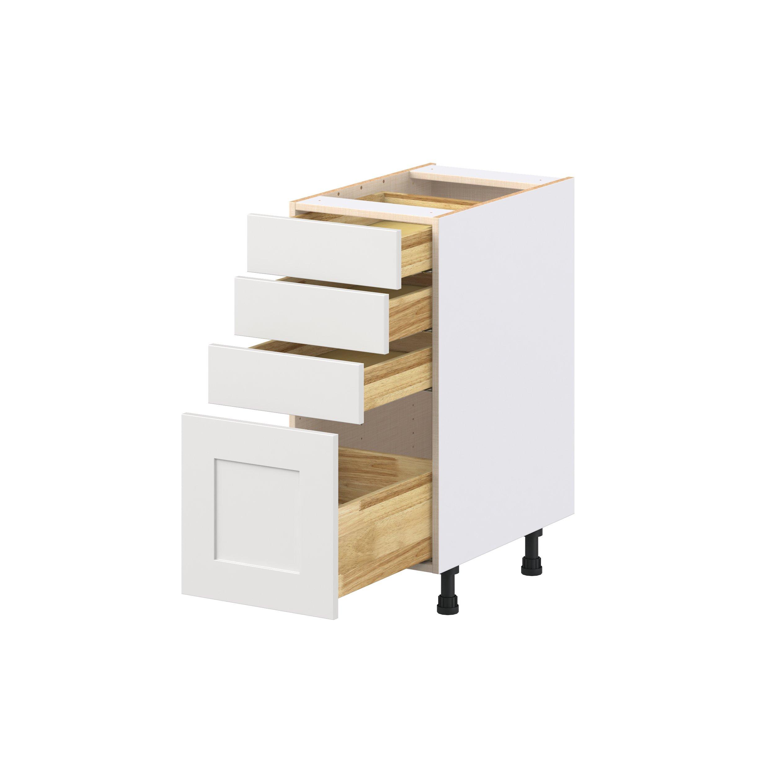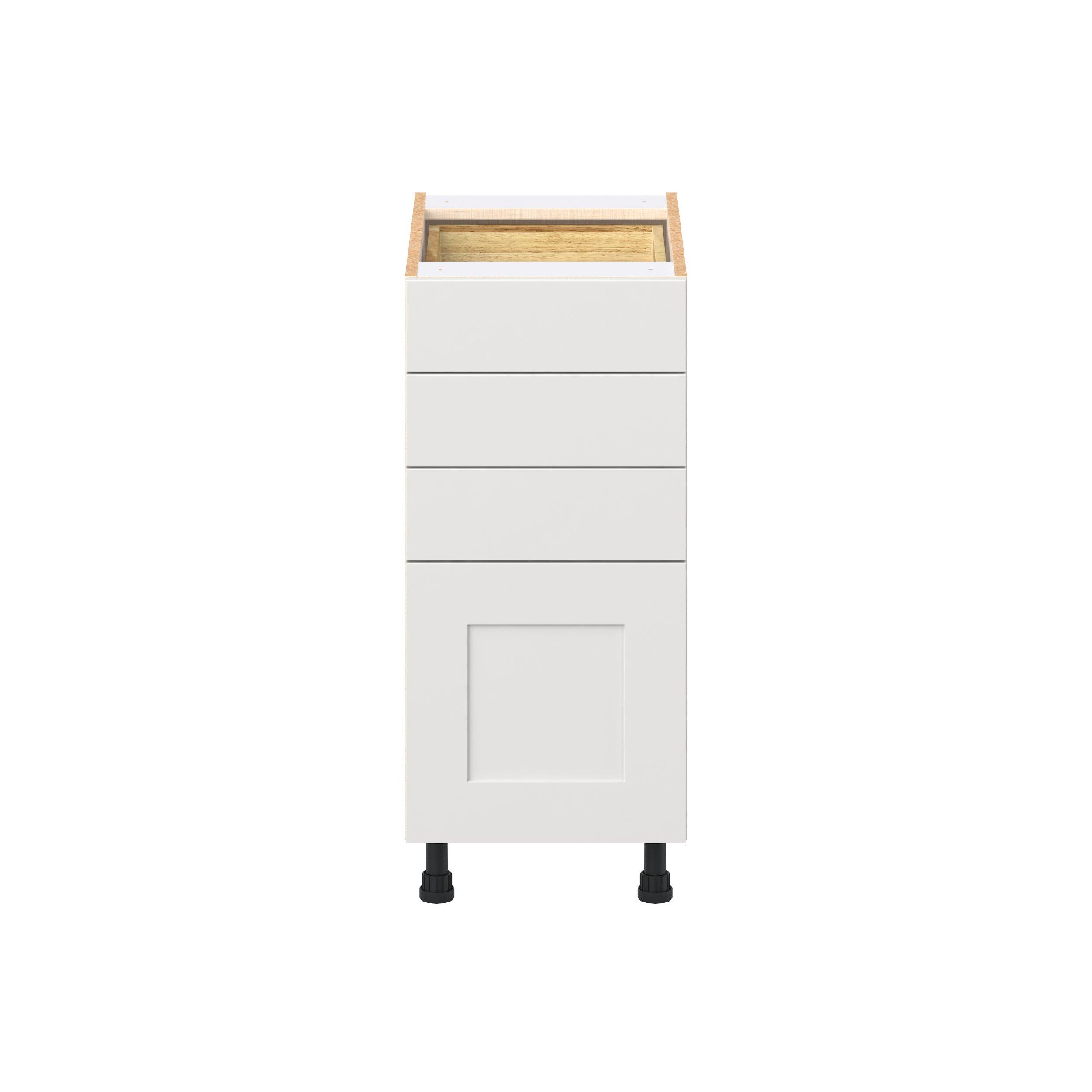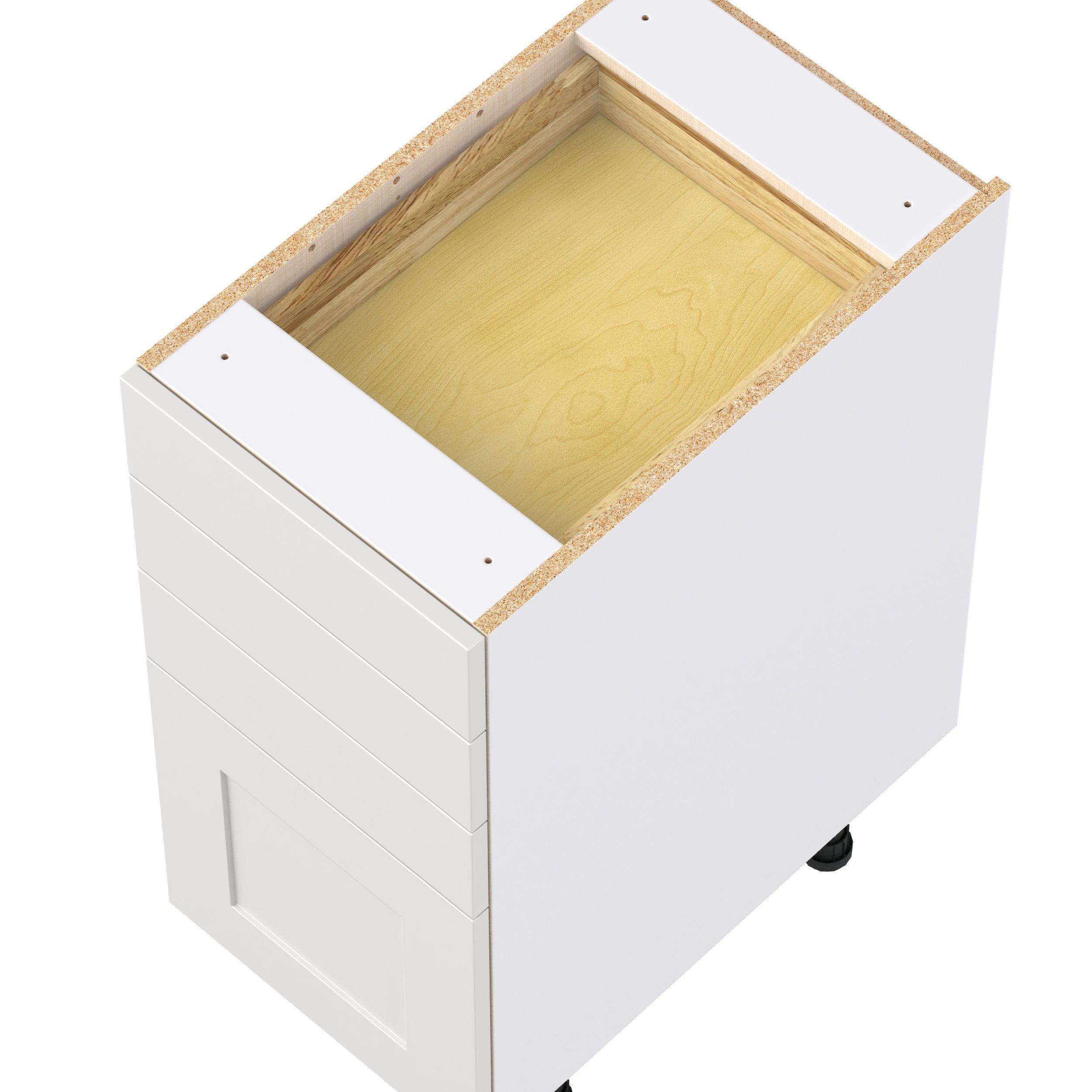 Transform your space with the elegance of Candler wide-rail shaker styles. Both the warm white and slate gray options create a rich transitional backdrop to complement any decor. Crafted from one-piece MDF Studio Design Collection Candler 15 in. Painted Warm White Drawer Base Cabinet is designed to resist hairline cracks while the easy-to-clean finish stands up to stains and moisture. Featuring 5-piece doors and dovetail drawer joints, these cabinets offer durability and elegance. This collection combines style with everyday storage solutions.