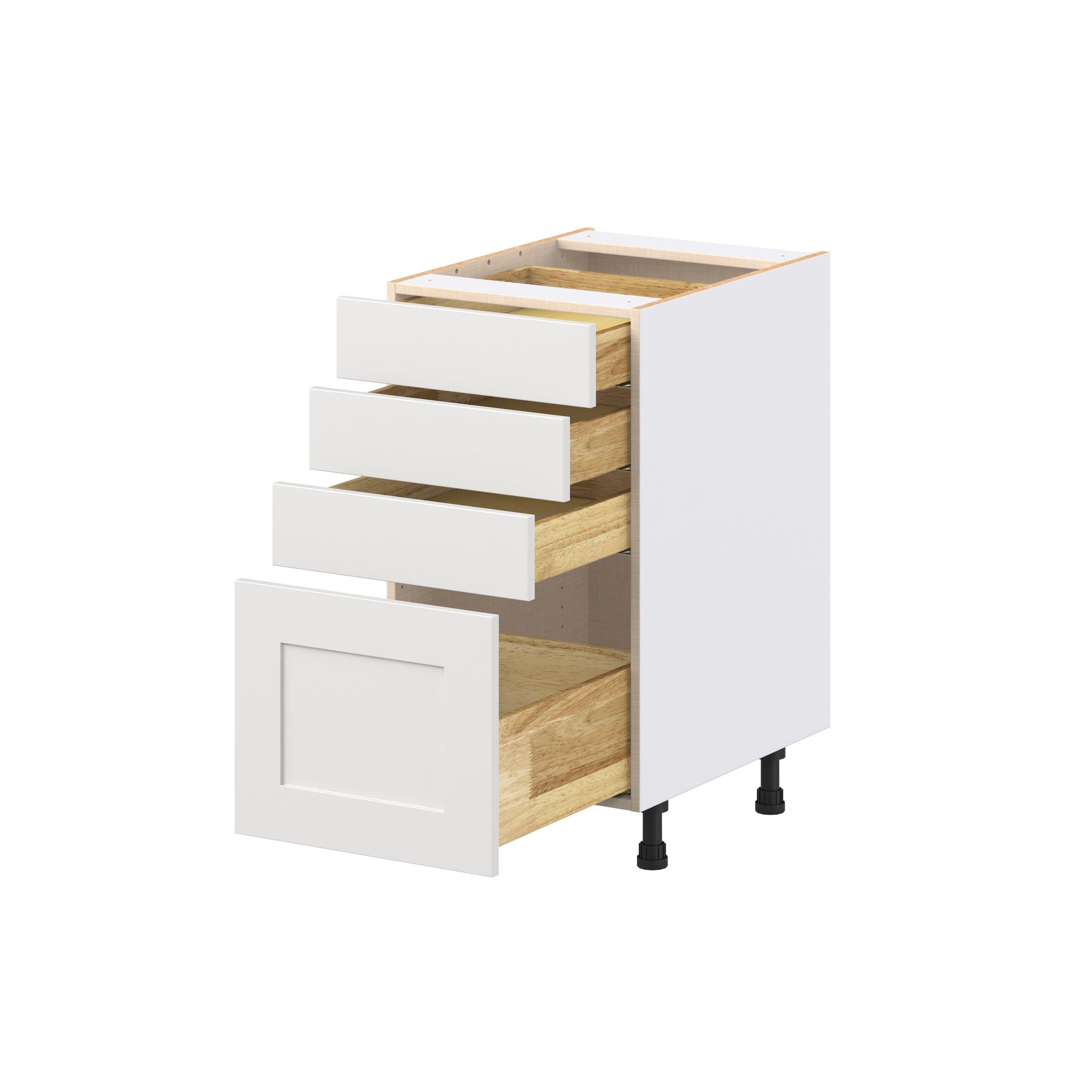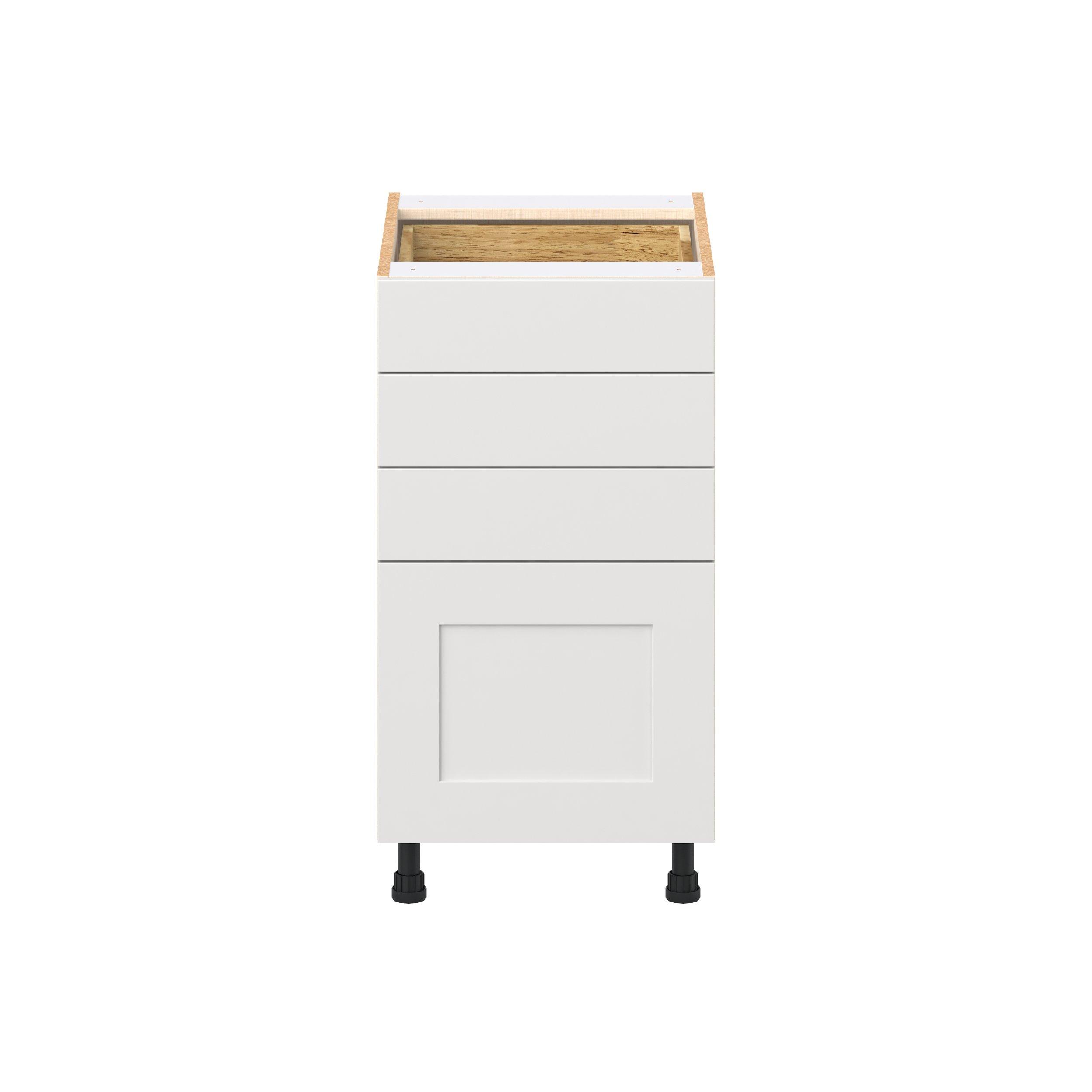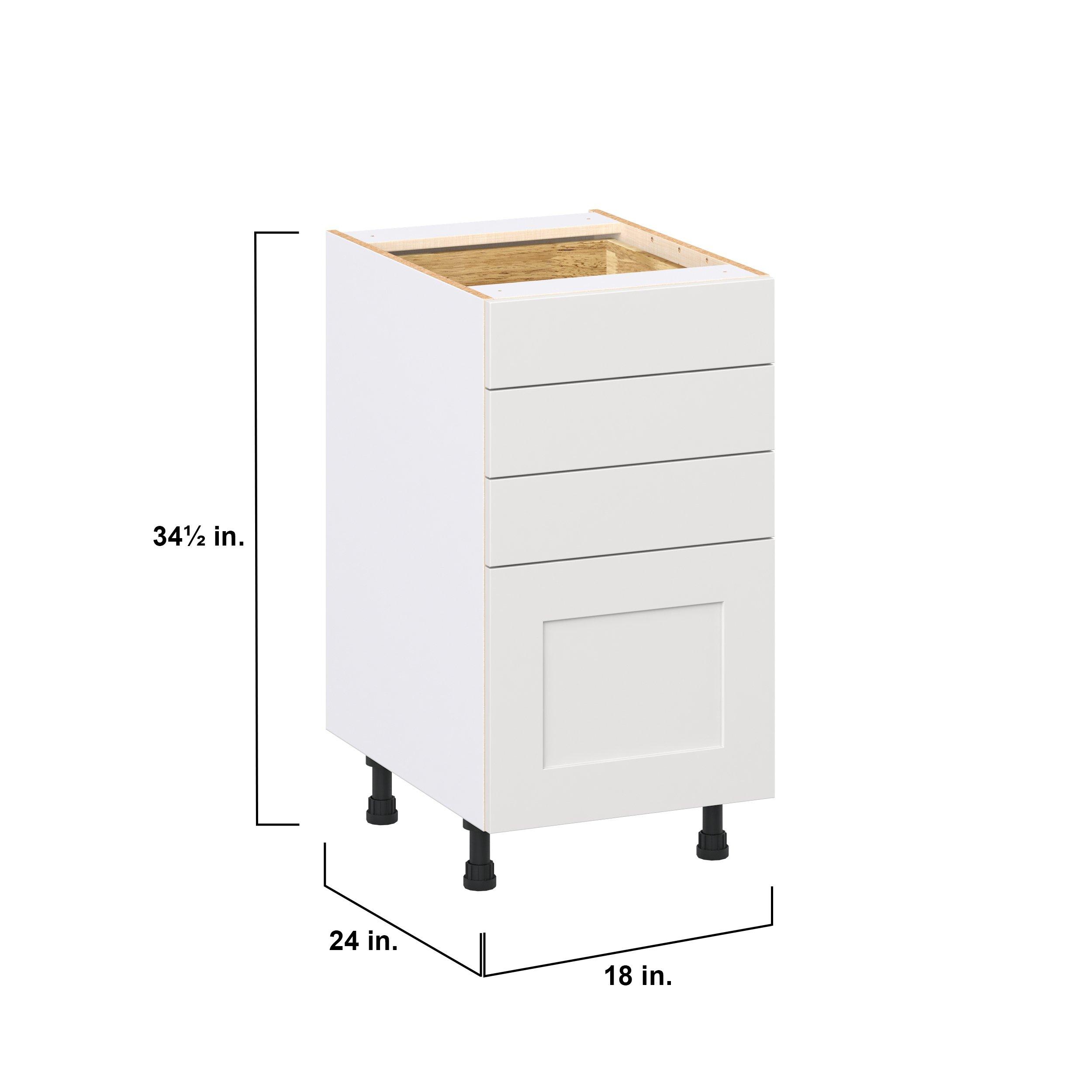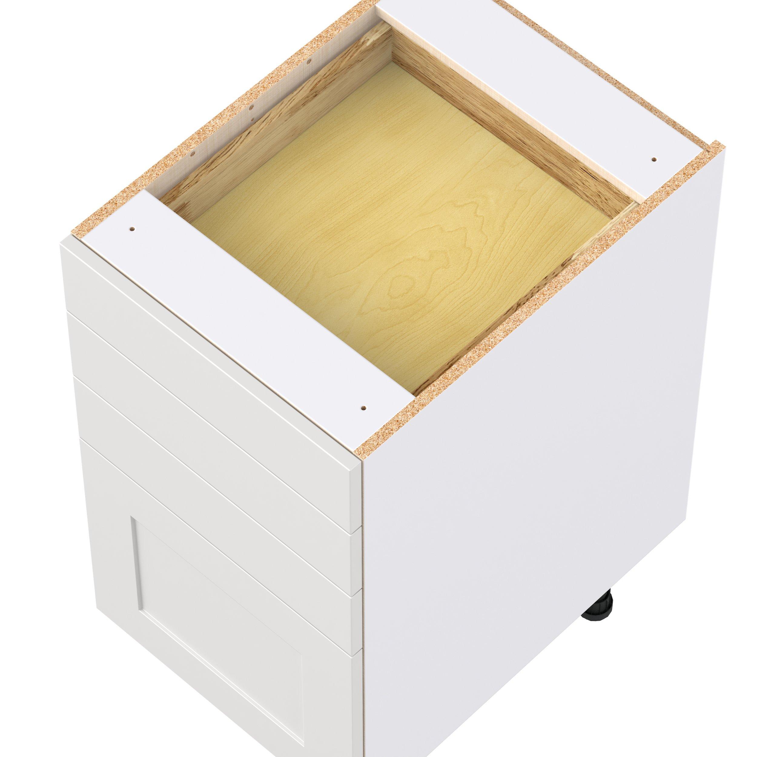 Transform your space with the elegance of Candler wide-rail shaker styles. Both the warm white and slate gray options create a rich transitional backdrop to complement any decor. Crafted from one-piece MDF Studio Design Collection Candler 18 in. Painted Warm White Drawer Base Cabinet is designed to resist hairline cracks while the easy-to-clean finish stands up to stains and moisture. Featuring 5-piece doors and dovetail drawer joints, these cabinets offer durability and elegance. This collection combines style with everyday storage solutions.