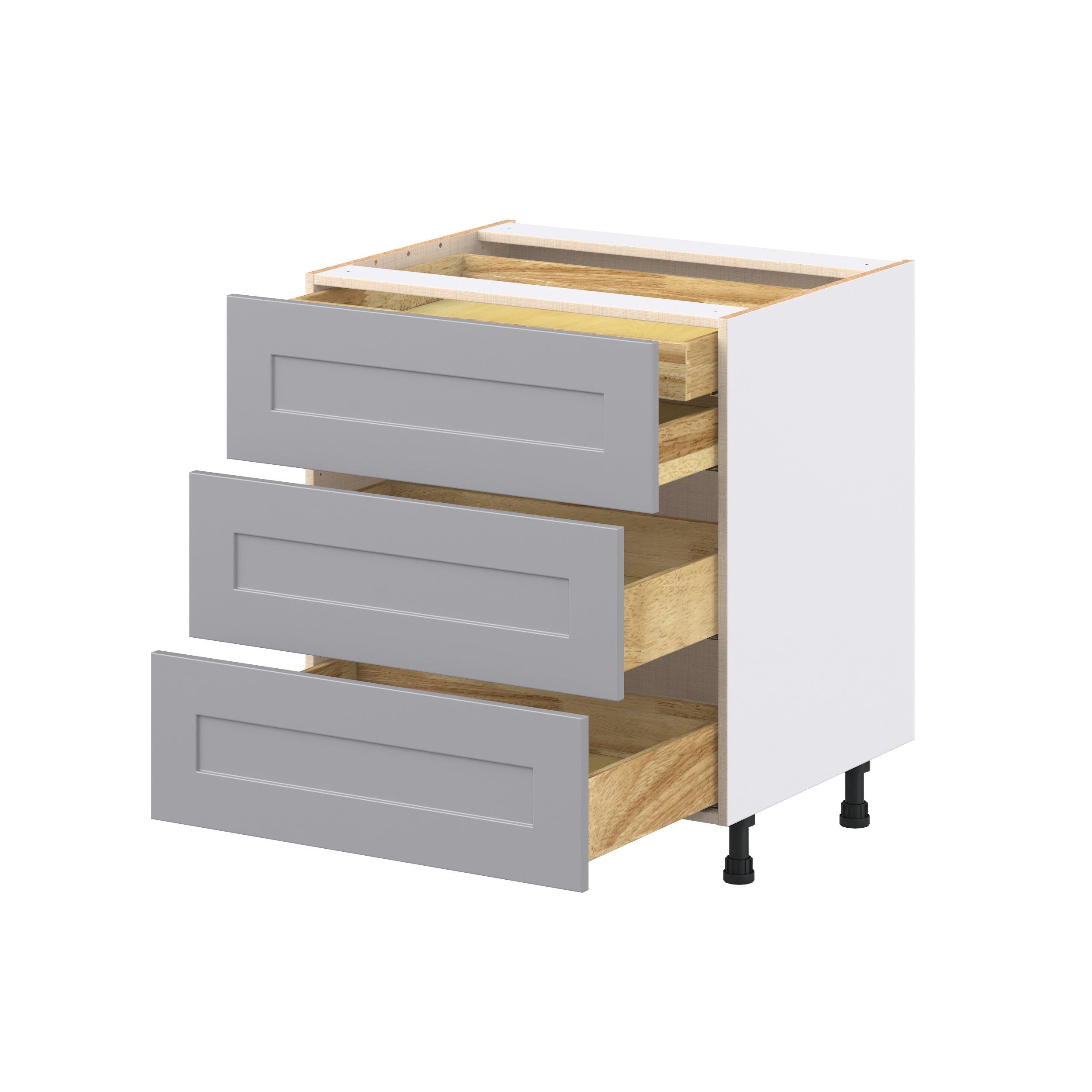 Transform your space with the elegance of Candler wide-rail shaker styles. Both the warm white and slate gray options create a rich transitional backdrop to complement any decor. Crafted from one-piece MDF Studio Design Collection Candler 30 in. Painted Slate Gray Base Cabinet with Inner Pull-Out Drawer is designed to resist hairline cracks while the easy-to-clean finish stands up to stains and moisture. Featuring 5-piece doors and dovetail drawer joints, these cabinets offer durability and elegance. This collection combines style with everyday storage solutions.