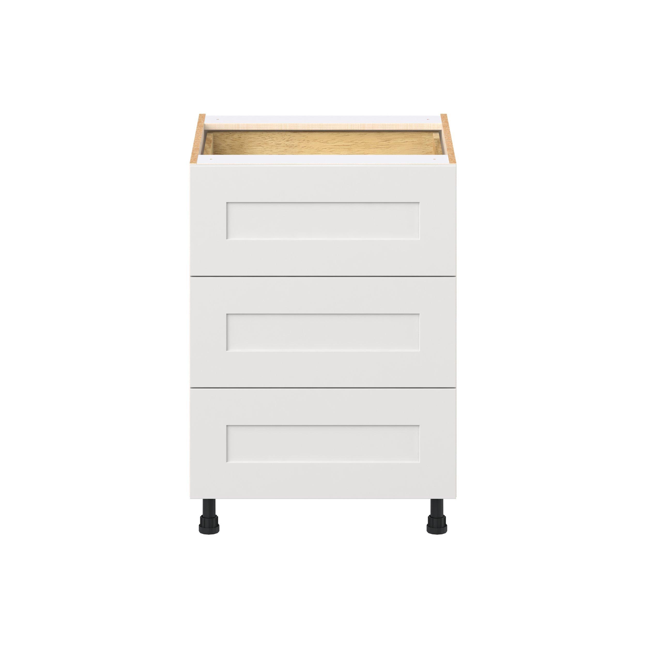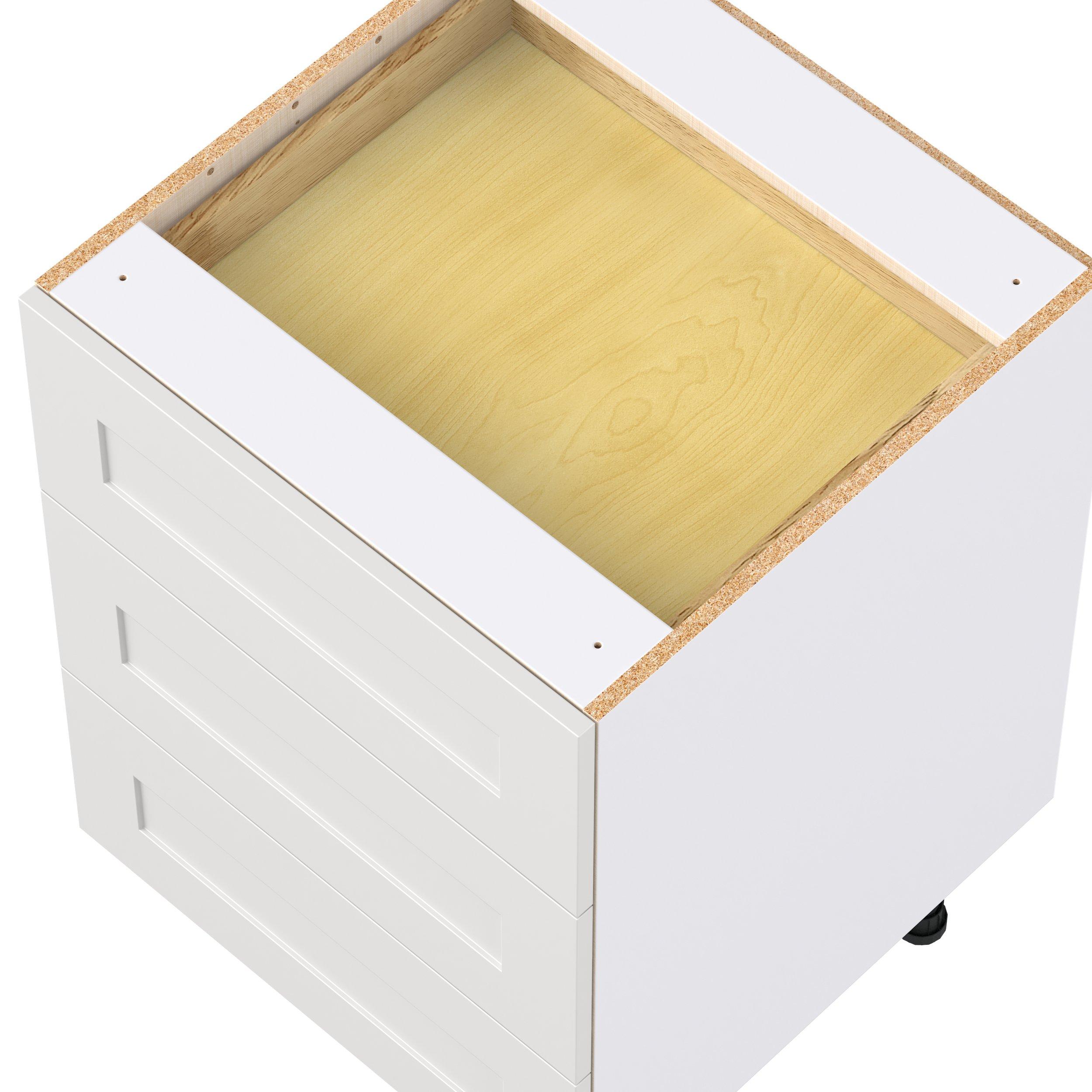 Transform your space with the elegance of Candler wide-rail shaker styles. Both the warm white and slate gray options create a rich transitional backdrop to complement any decor. Crafted from one-piece MDF Studio Design Collection Candler 24 in. Painted Warm White Base Cabinet with Inner Pull-Out Drawer is designed to resist hairline cracks while the easy-to-clean finish stands up to stains and moisture. Featuring 5-piece doors and dovetail drawer joints, these cabinets offer durability and elegance. This collection combines style with everyday storage solutions.