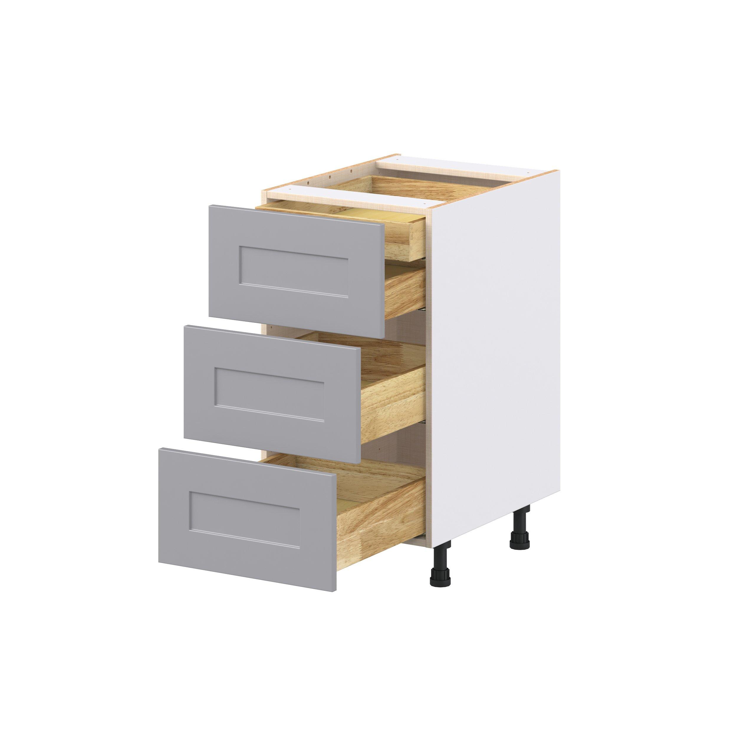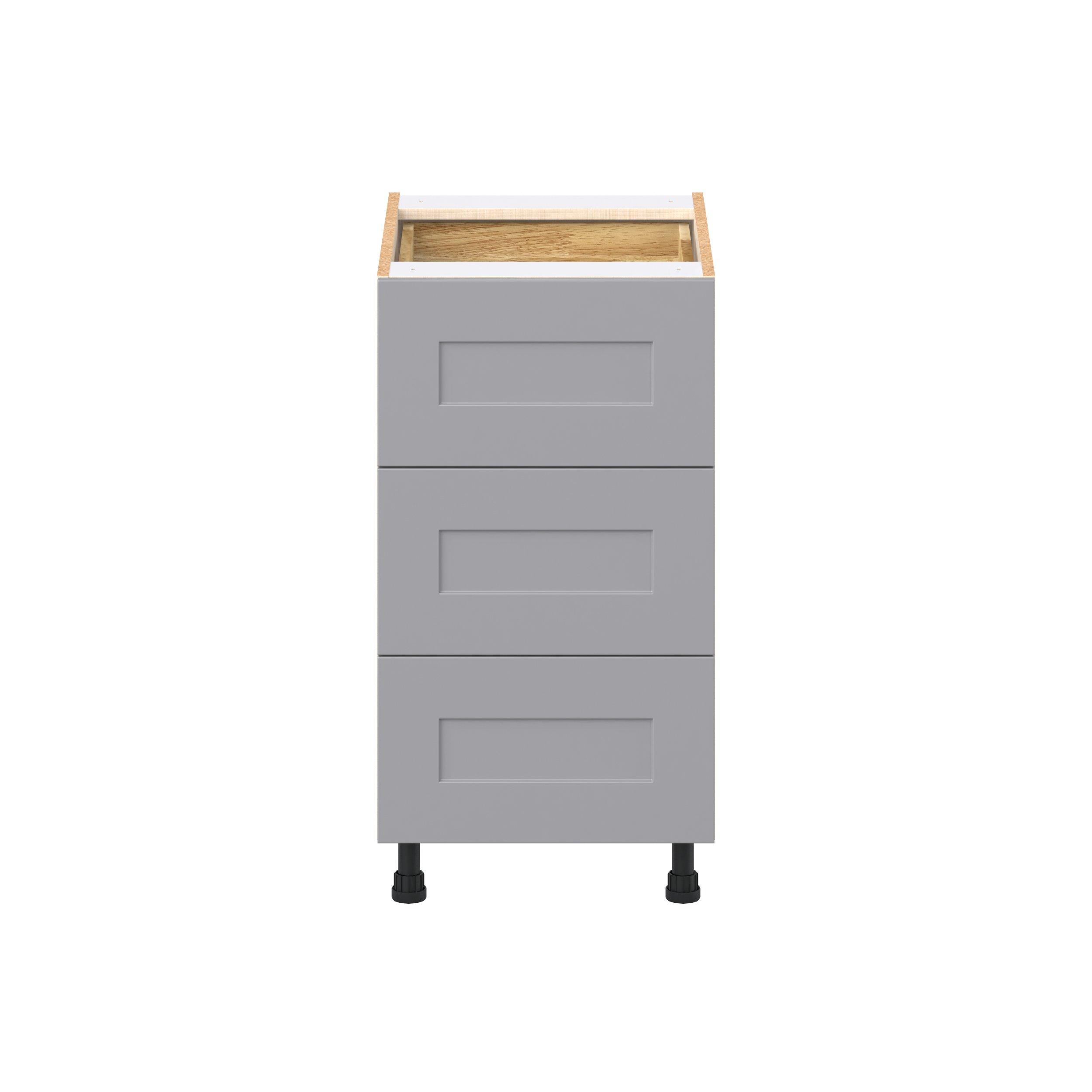 Transform your space with the elegance of Candler wide-rail shaker styles. Both the warm white and slate gray options create a rich transitional backdrop to complement any decor. Crafted from one-piece MDF Studio Design Collection Candler 18 in. Painted Slate Gray Base Cabinet with Inner Pull-Out Drawer is designed to resist hairline cracks while the easy-to-clean finish stands up to stains and moisture. Featuring 5-piece doors and dovetail drawer joints, these cabinets offer durability and elegance. This collection combines style with everyday storage solutions.