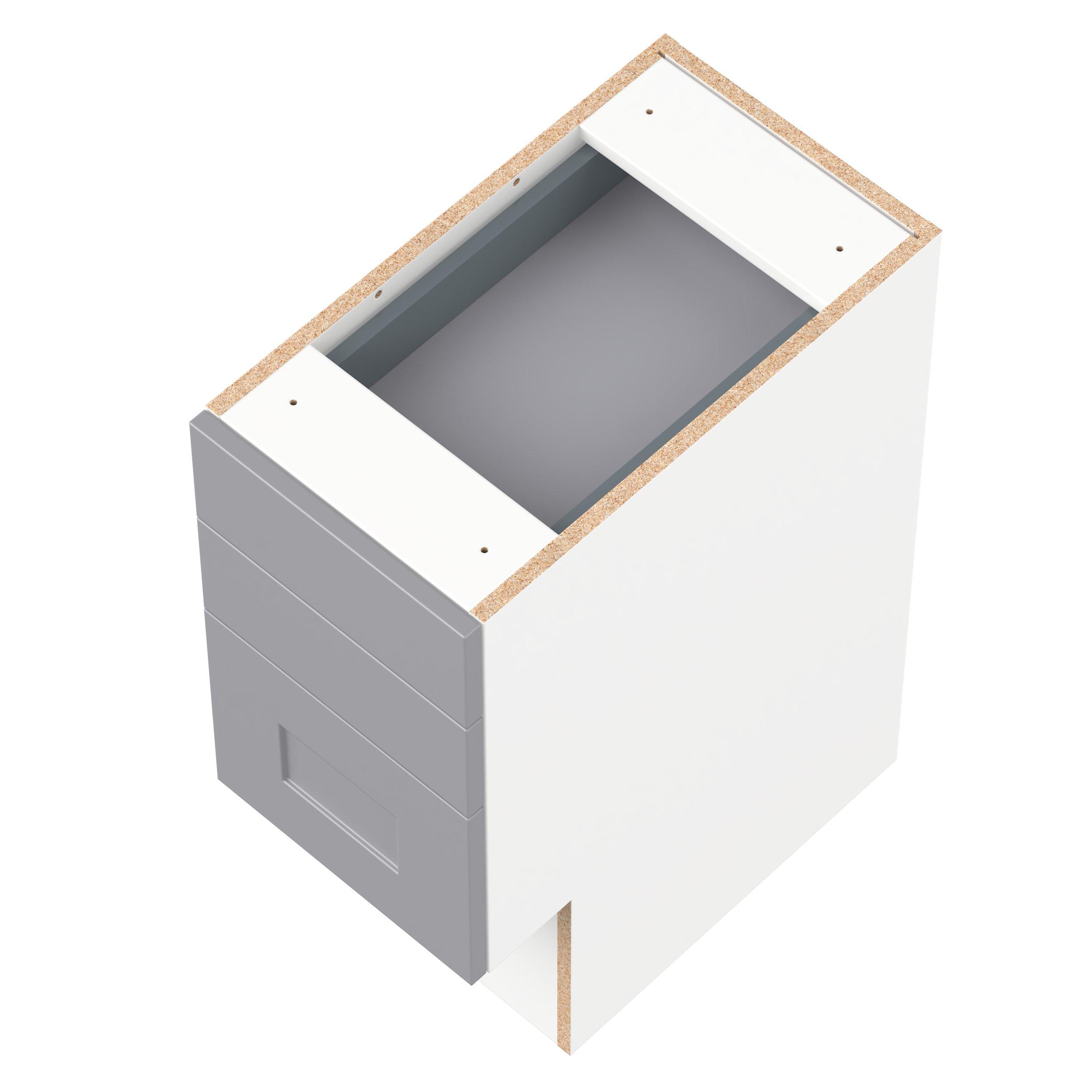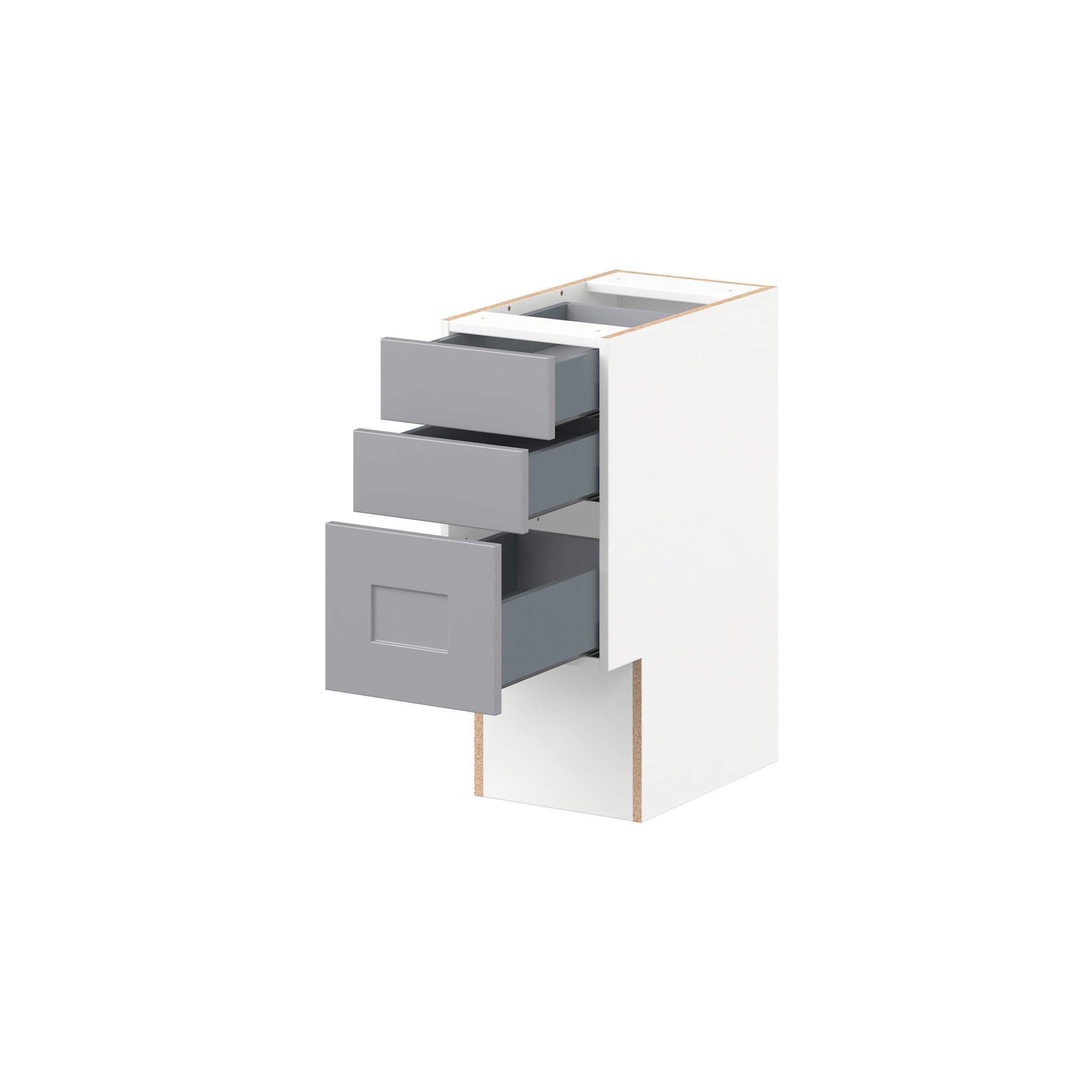 Transform your space with the elegance of Candler wide-rail shaker styles. Both the warm white and slate gray options create a rich transitional backdrop to complement any decor. Crafted from one-piece MDF Studio Design Collection Candler 12 in. Painted Slate Gray Vanity Drawer Base Cabinet - ADA is designed to resist hairline cracks while the easy-to-clean finish stands up to stains and moisture. Featuring 5-piece doors and dovetail drawer joints, these cabinets offer durability and elegance. This collection combines style with everyday storage solutions.
