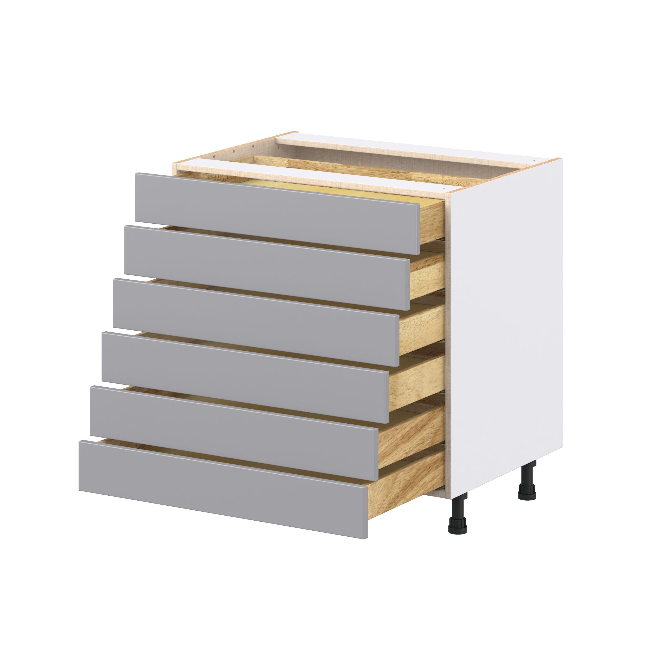 Transform your space with the elegance of Candler wide-rail shaker styles. Both the warm white and slate gray options create a rich transitional backdrop to complement any decor. Crafted from one-piece MDF Studio Design Collection Candler 33 in. Painted Slate Gray Drawer Base Cabinet is designed to resist hairline cracks while the easy-to-clean finish stands up to stains and moisture. Featuring 5-piece doors and dovetail drawer joints, these cabinets offer durability and elegance. This collection combines style with everyday storage solutions.